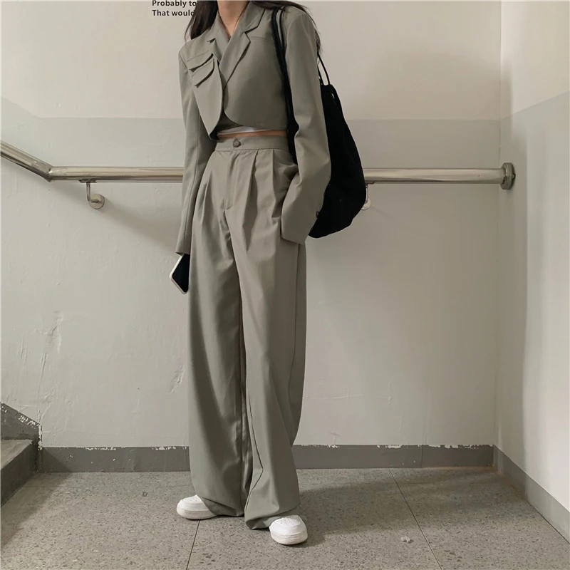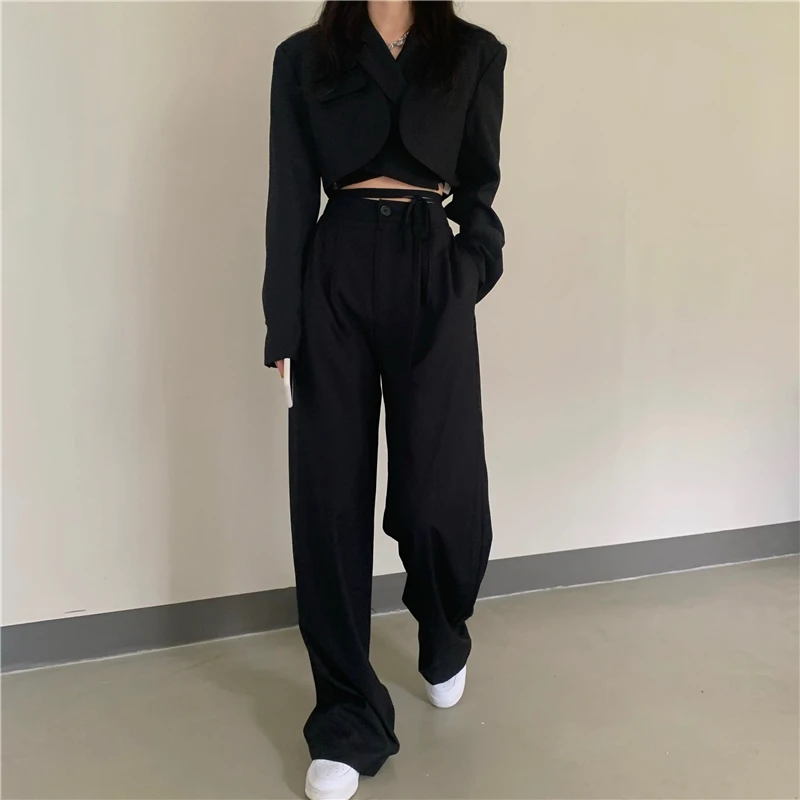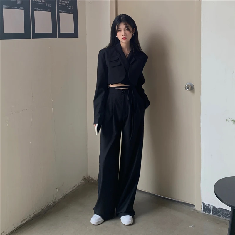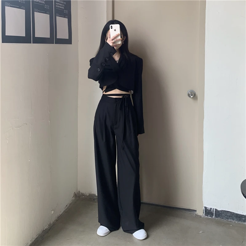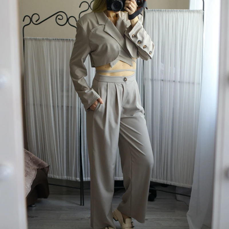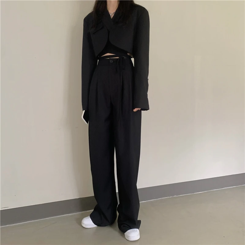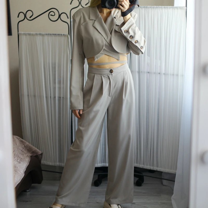 Sixsr Spring Outfits Trends Korean Summer Two Piece Set Women Crop Top Sexy Lace-up Blazer Coat + High Waist Pants Suit Sets Autumn Streetwear 2 Piece Sets
