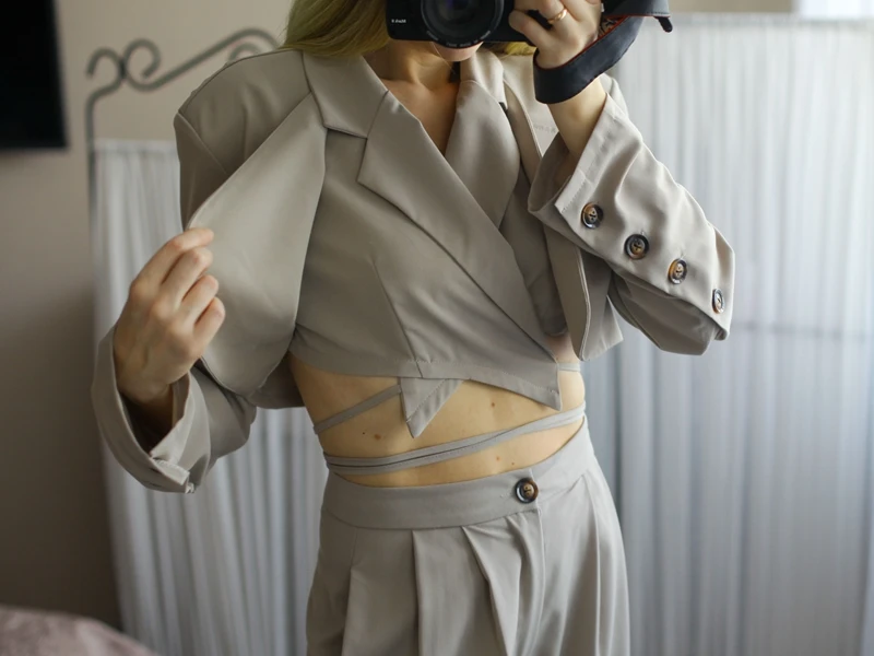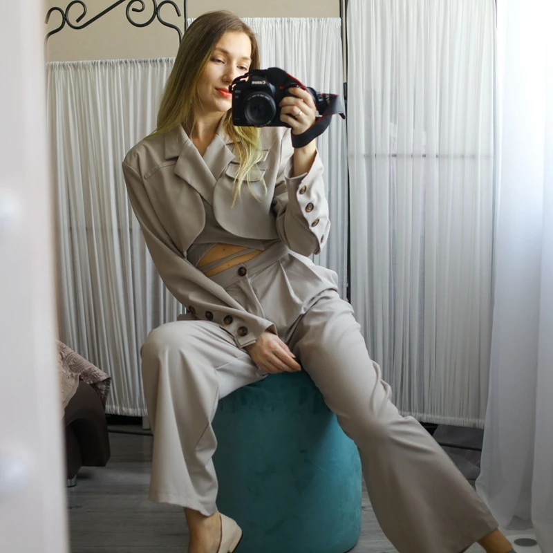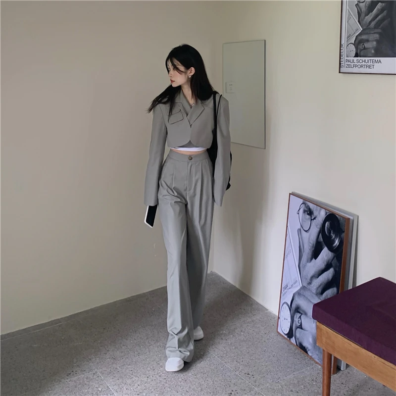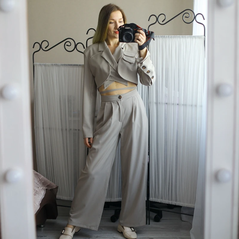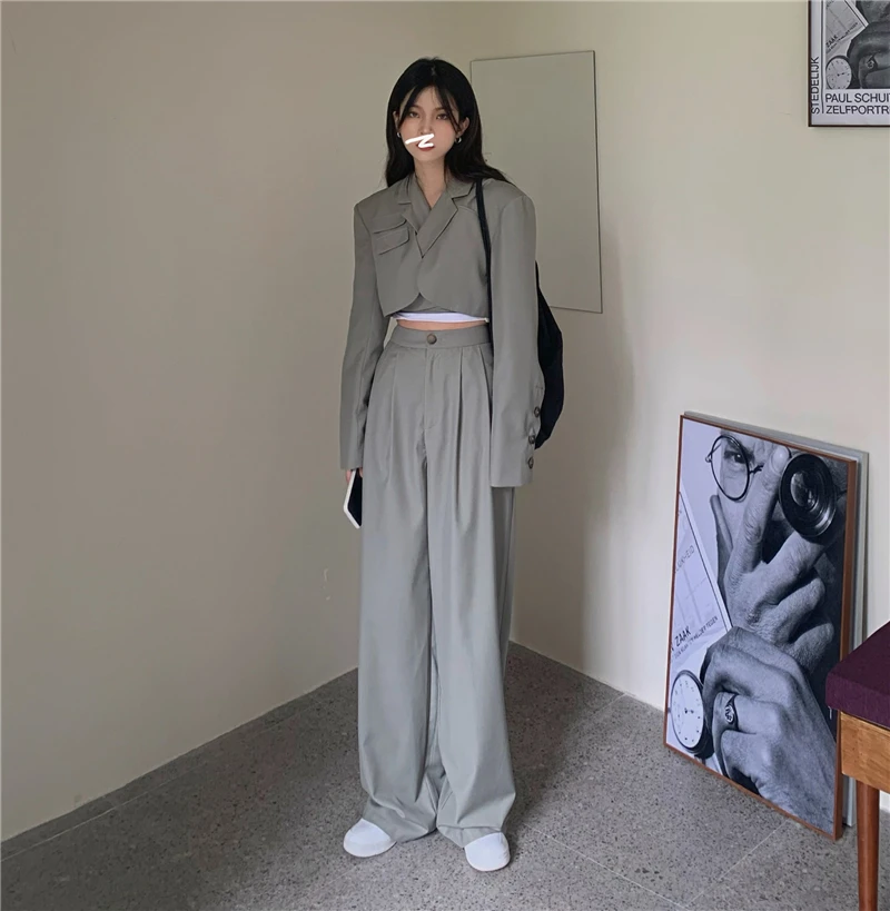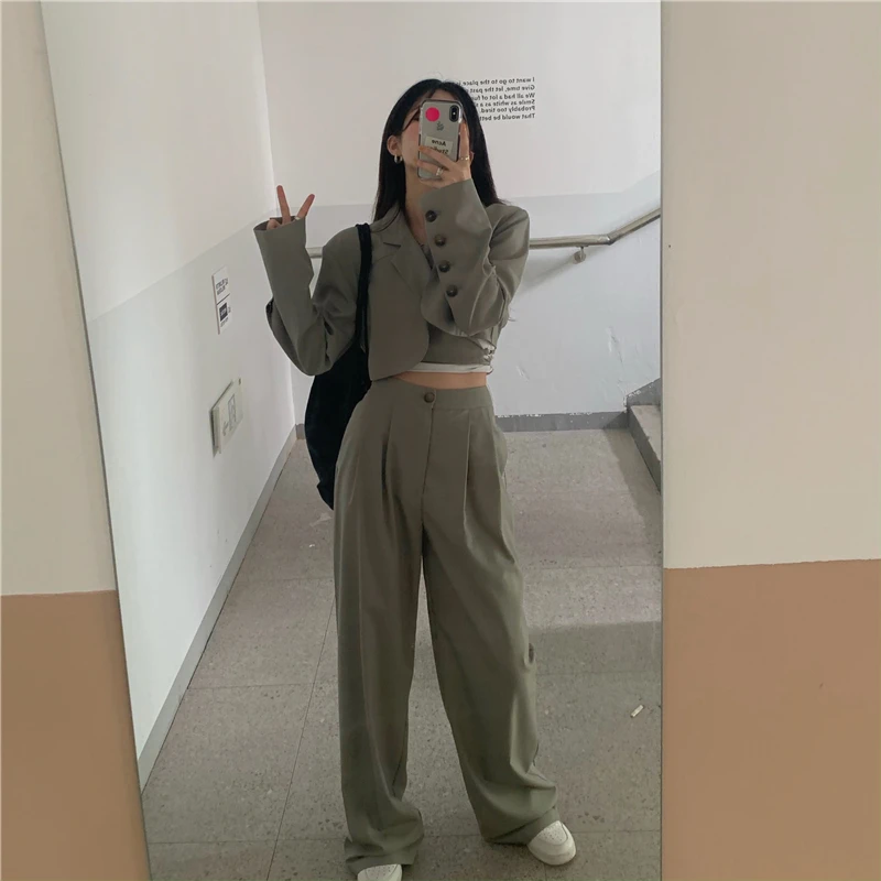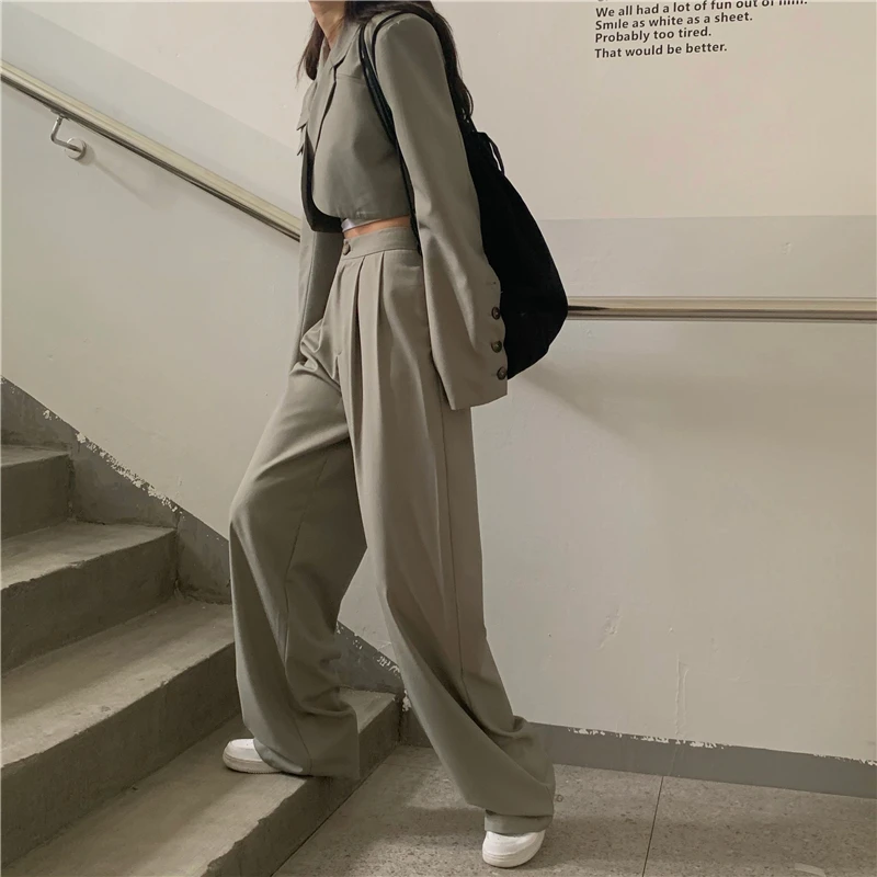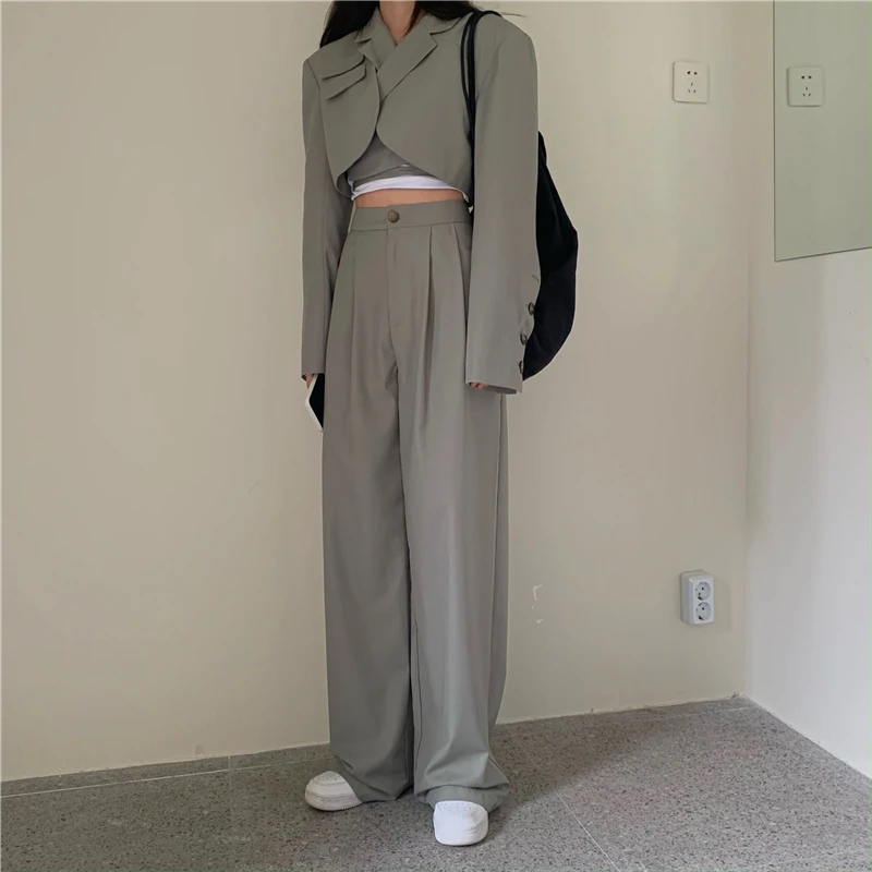 Sixsr Spring Outfits Trends Korean Summer Two Piece Set Women Crop Top Sexy Lace-up Blazer Coat + High Waist Pants Suit Sets Autumn Streetwear 2 Piece Sets