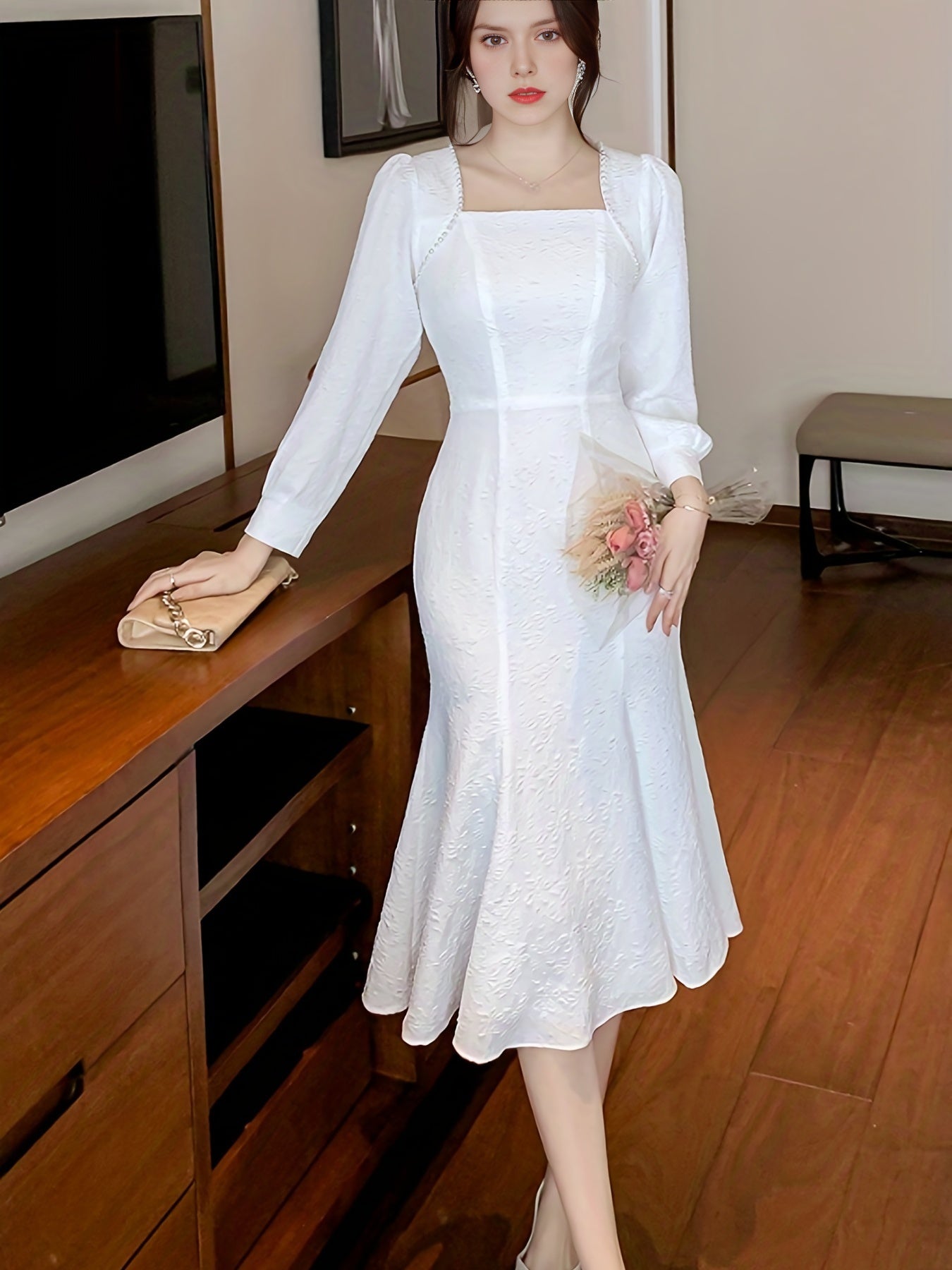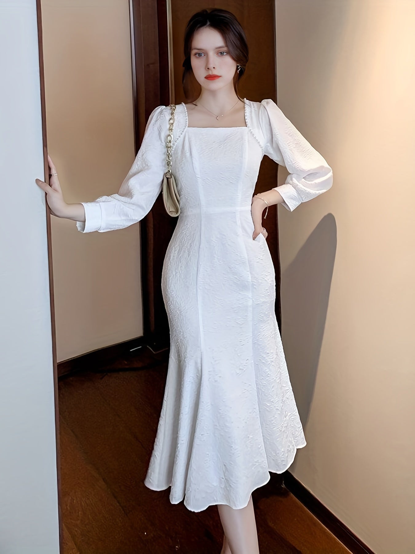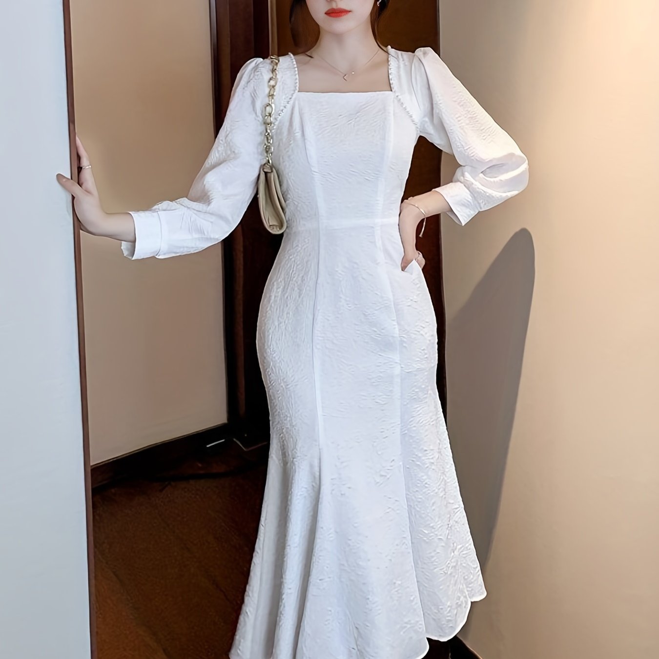 Sixsr Squared Neck Solid Dress, Elegant Long Sleeve Mermaid Hem Evening Dress, Women's Clothing