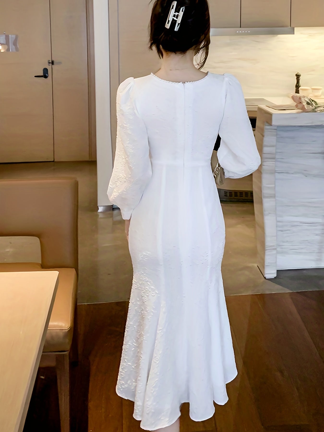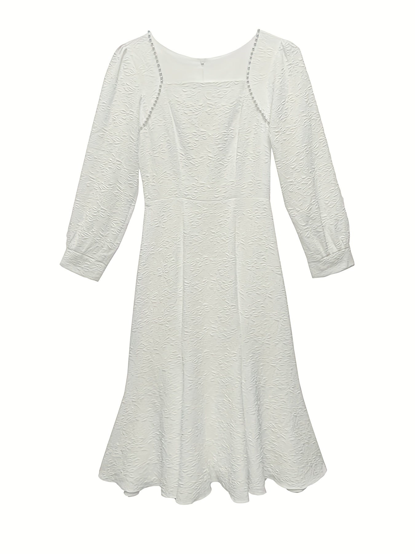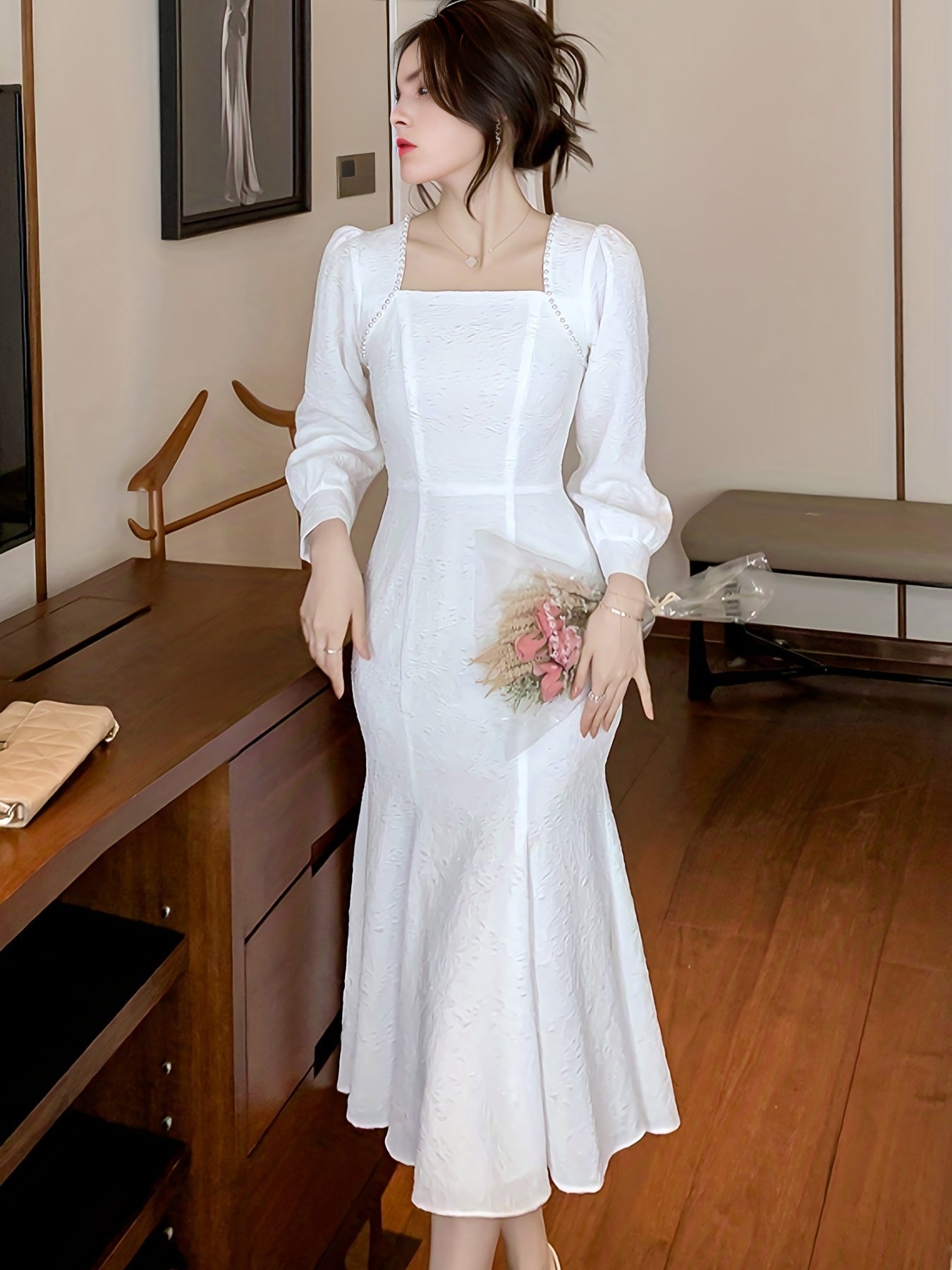 Sixsr Squared Neck Solid Dress, Elegant Long Sleeve Mermaid Hem Evening Dress, Women's Clothing