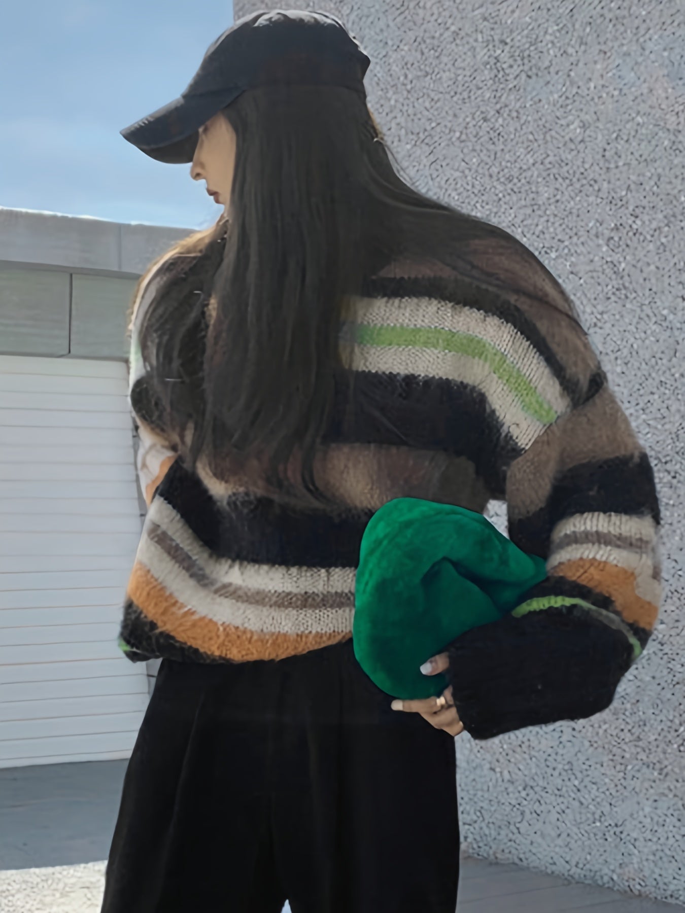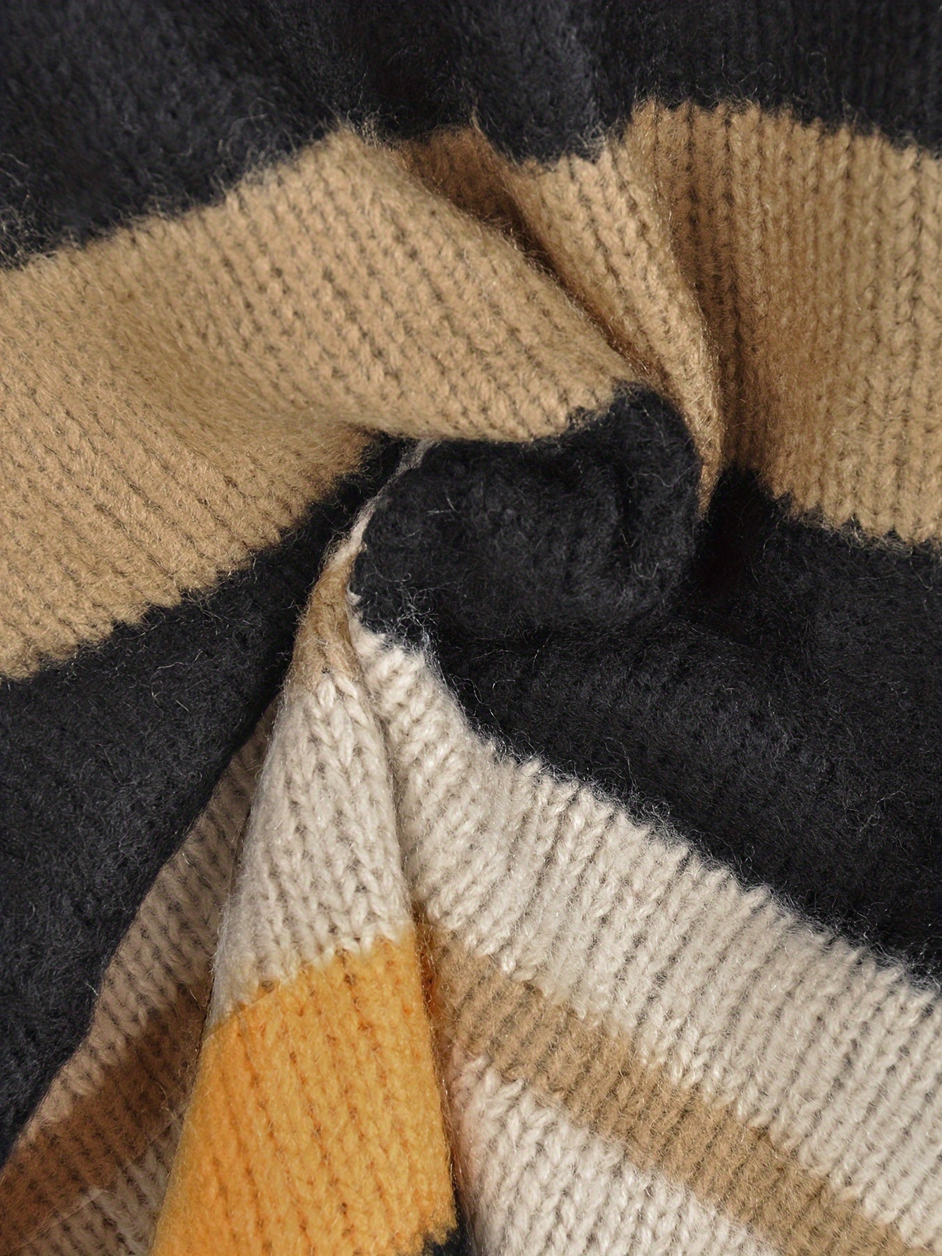 Sixsr Striped Crew Neck Knit Sweater, Casual Long Sleeve Pullover Sweater, Women's Clothing