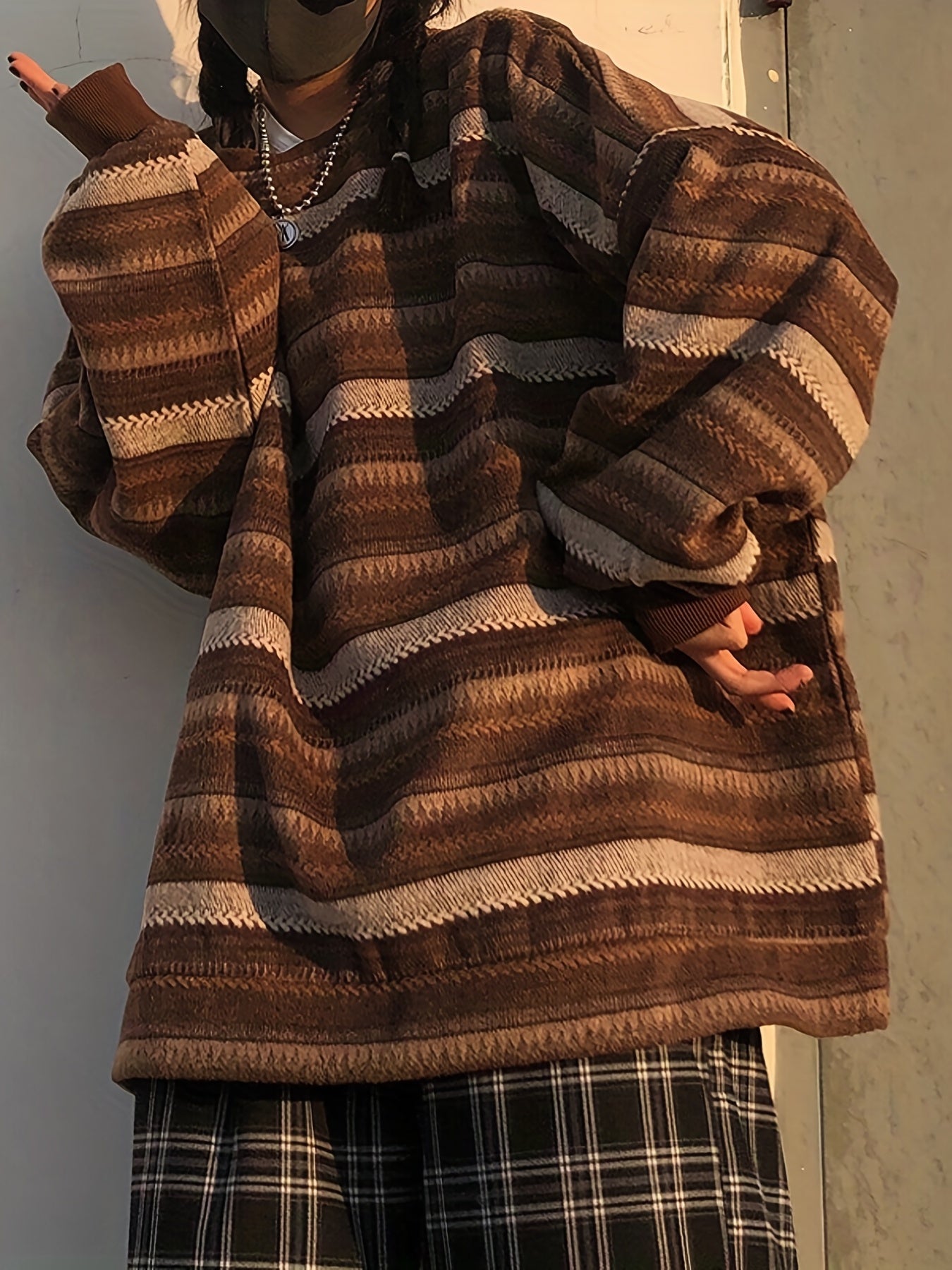 Sixsr Striped Drop Shoulder Sweatshirt, Casual Crew Neck Long Sleeve Pullover, Women's Clothing