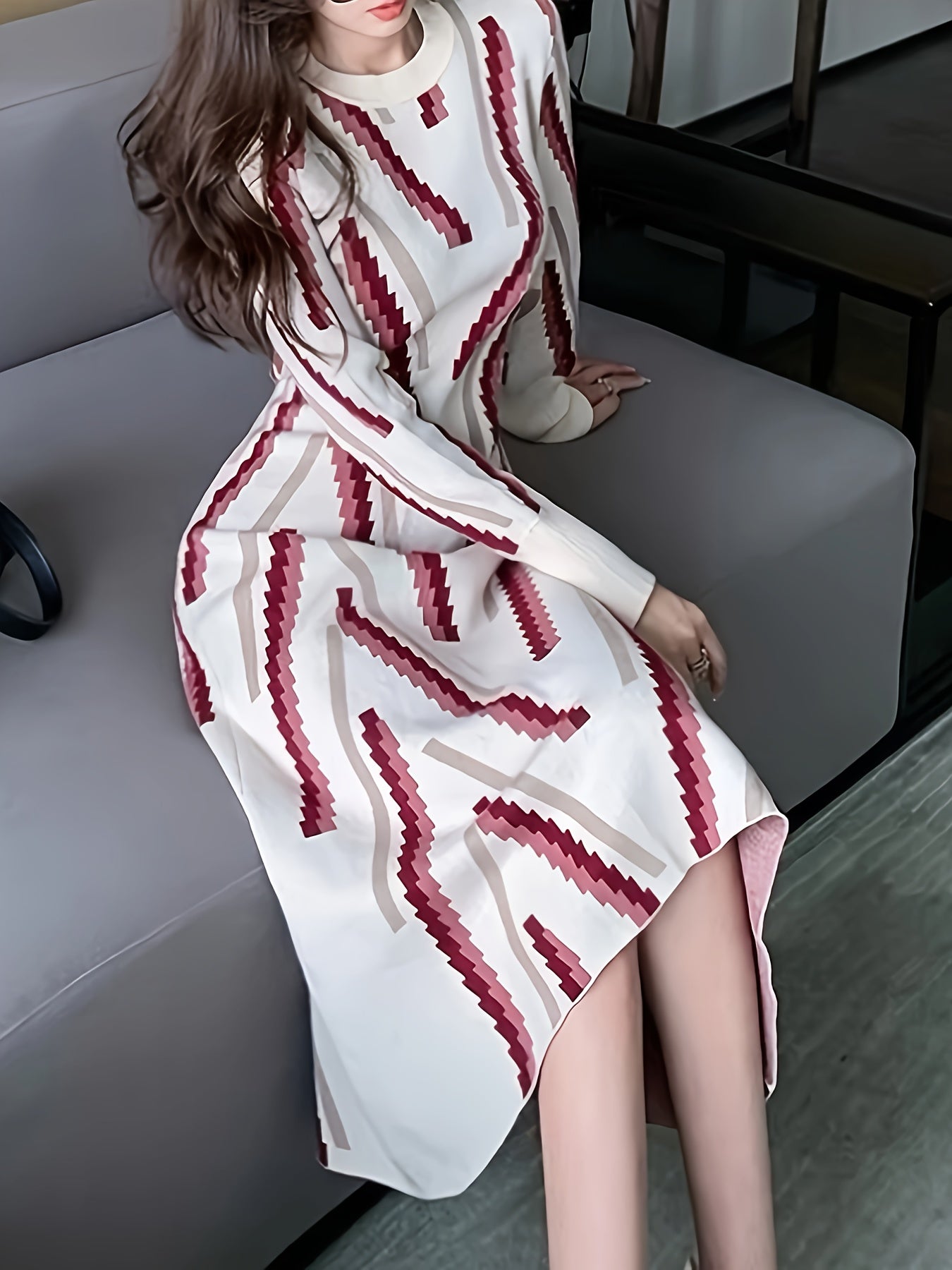 Sixsr Striped Pattern Sweater Dress, Crew Neck Long Sleeve Slim Elegant Dress, Women's Clothing
