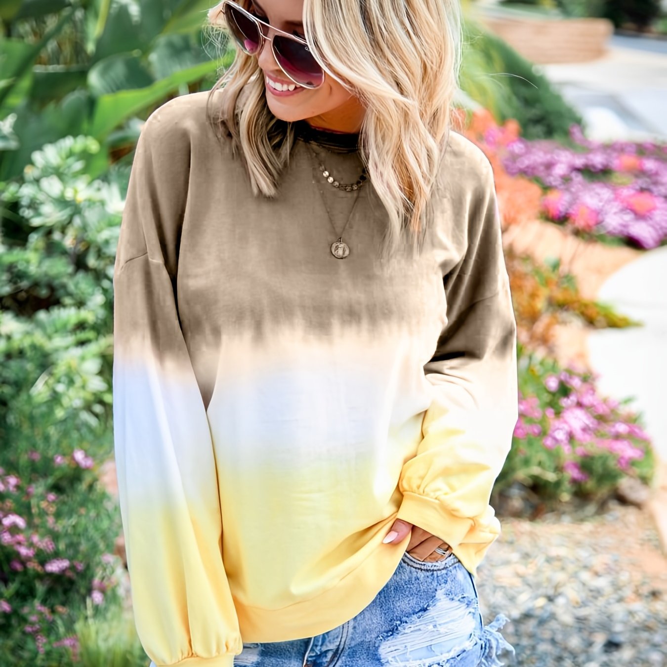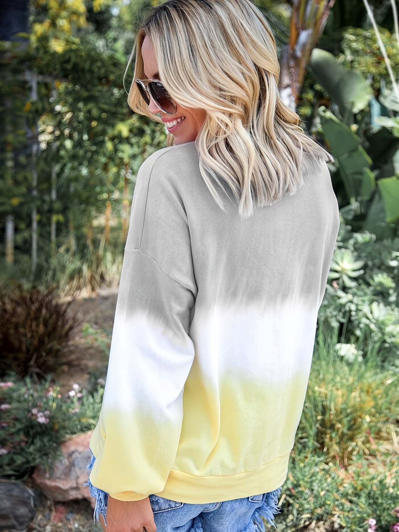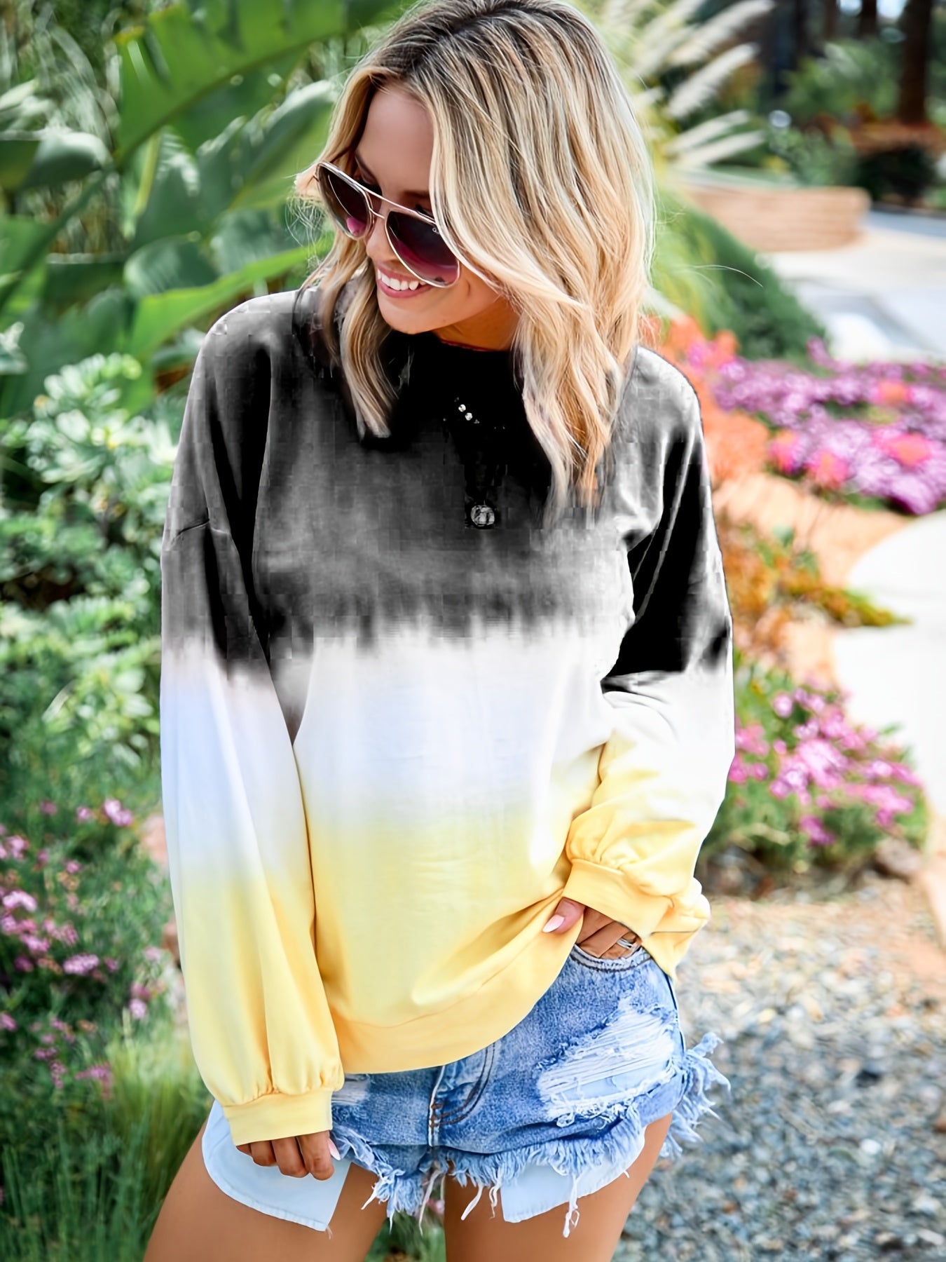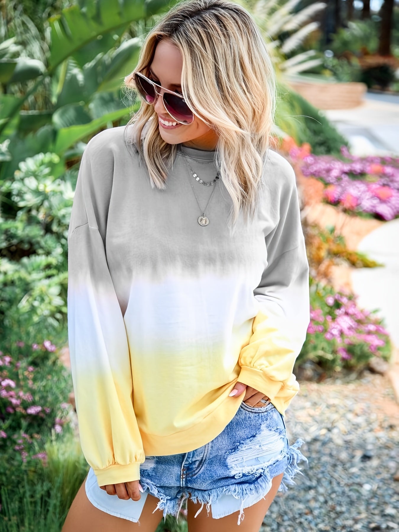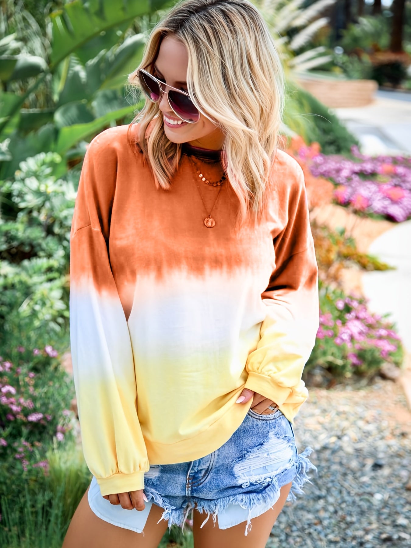 Sixsr Striped Tie Dye Pullover Sweatshirt, Casual Crew Neck Long Sleeve Sweaters, Women's Clothing