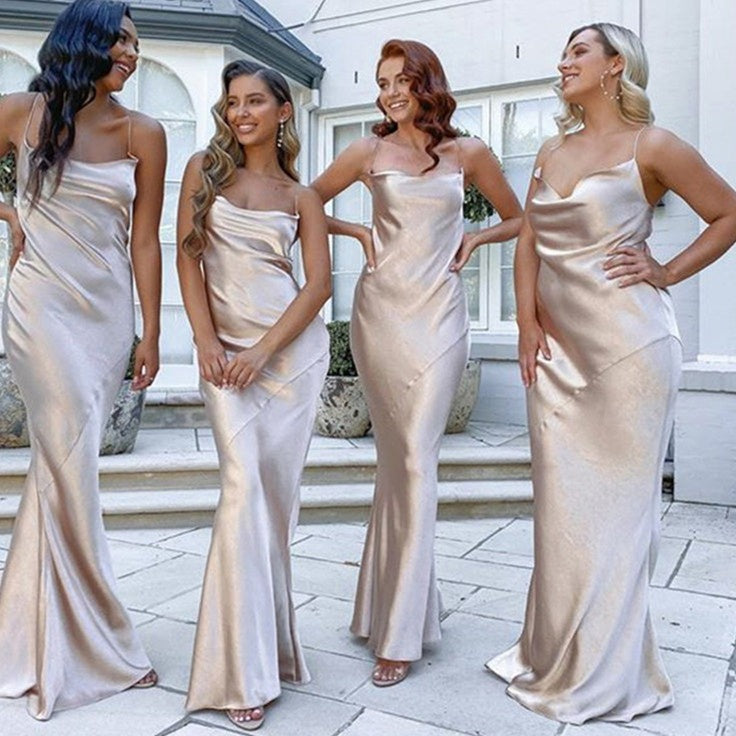 Sixsr Summer Dresses For Women Sexy Spaghetti Strap Backless Summer Dress Women Satin Lace Up Trumpet Long Dress Elegant Bodycon Party Dresses