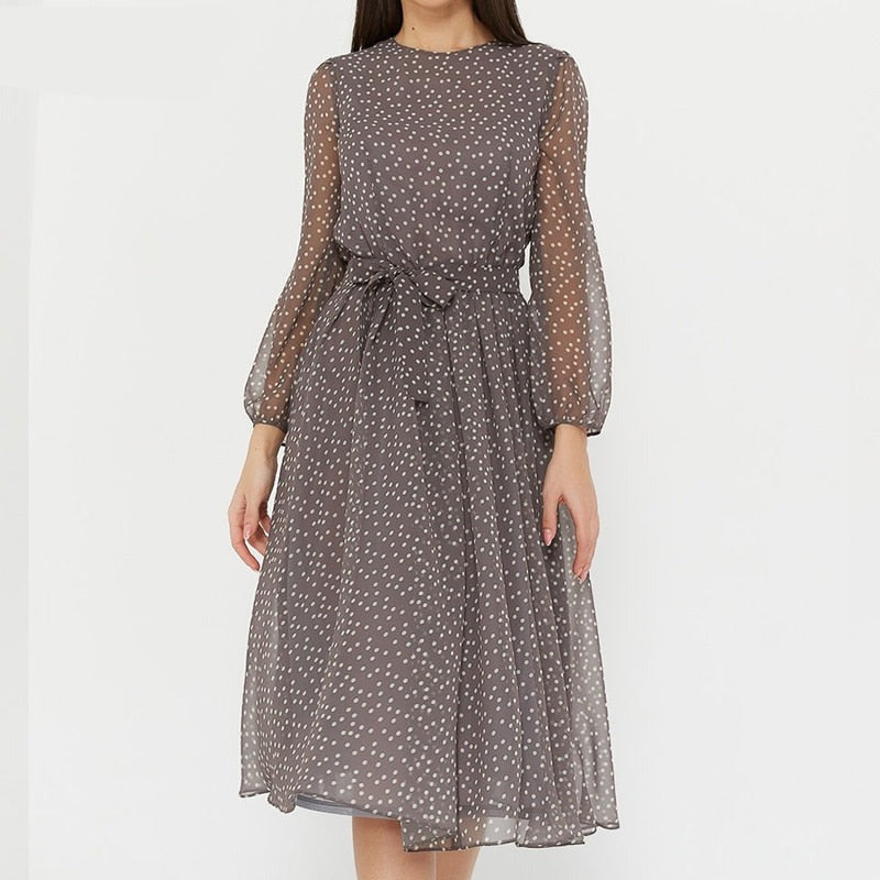 sixsr Summer Outfits Fashion Trends Elegant Dot Print Long Sleeve Polka Dress O Neck Chiffon A Line Women Casual Dress Vintage Midi Vestidos