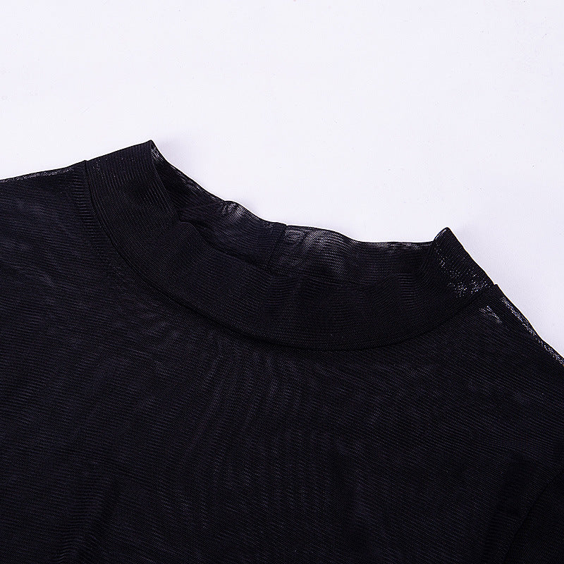 sixsr Summer Outfits Fashion Trends Sexy Women Dress Mesh See-through Long Sleeves Dress Slim Tight Backless Dress Party Clubwear Female Mini Dresses Black