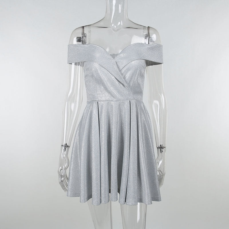 Sixsr Summer Outfits Women Bling Glitter Women Off Shoulder A Line Mini Dress Pleated Party Elegant Festival Evening Autumn Winter Clothes