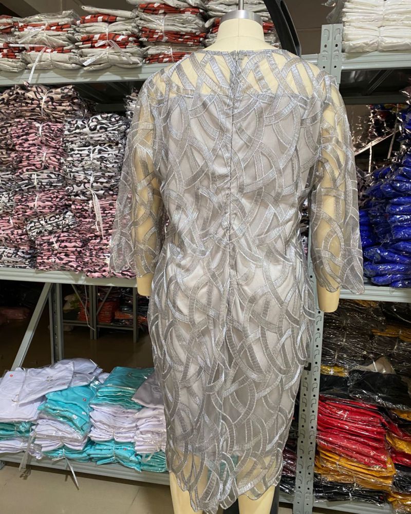 sixsr Summer Women Lace Slim Patchwork Party Dress Office Ladies Round Neck Flare Sleeve Stretch Bodycon Plus Size Dresses