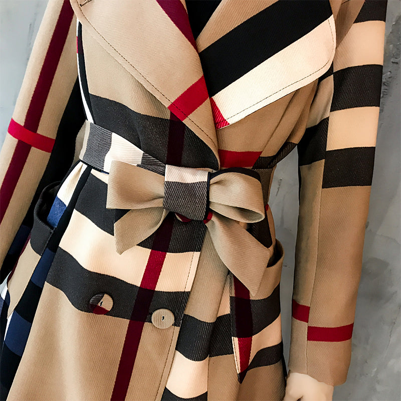 Sixsr Thickened autumn and winter new women's lapels in the long simple color matching retro plaid coat temperament windbreaker