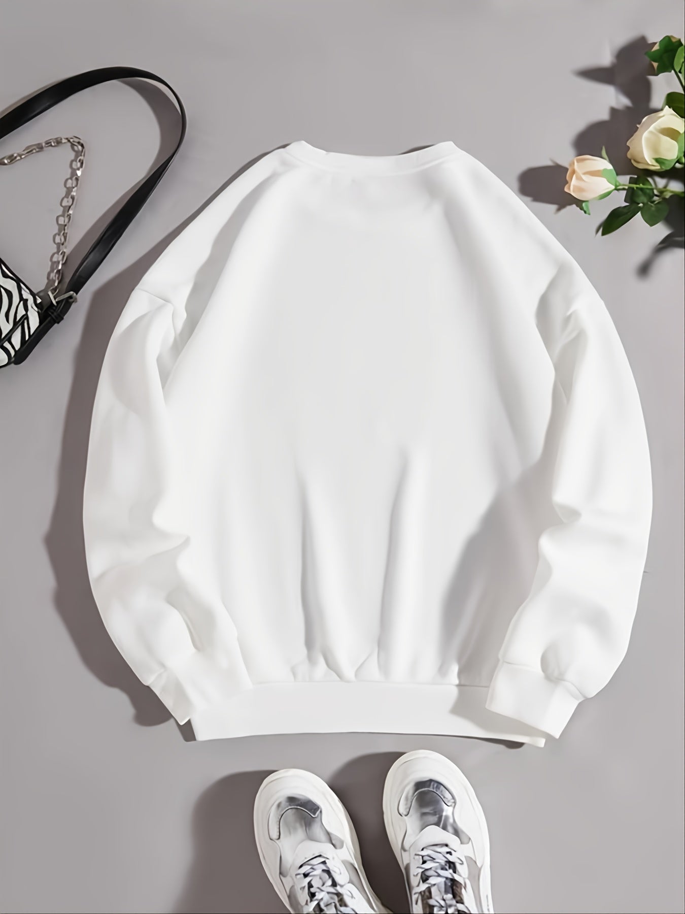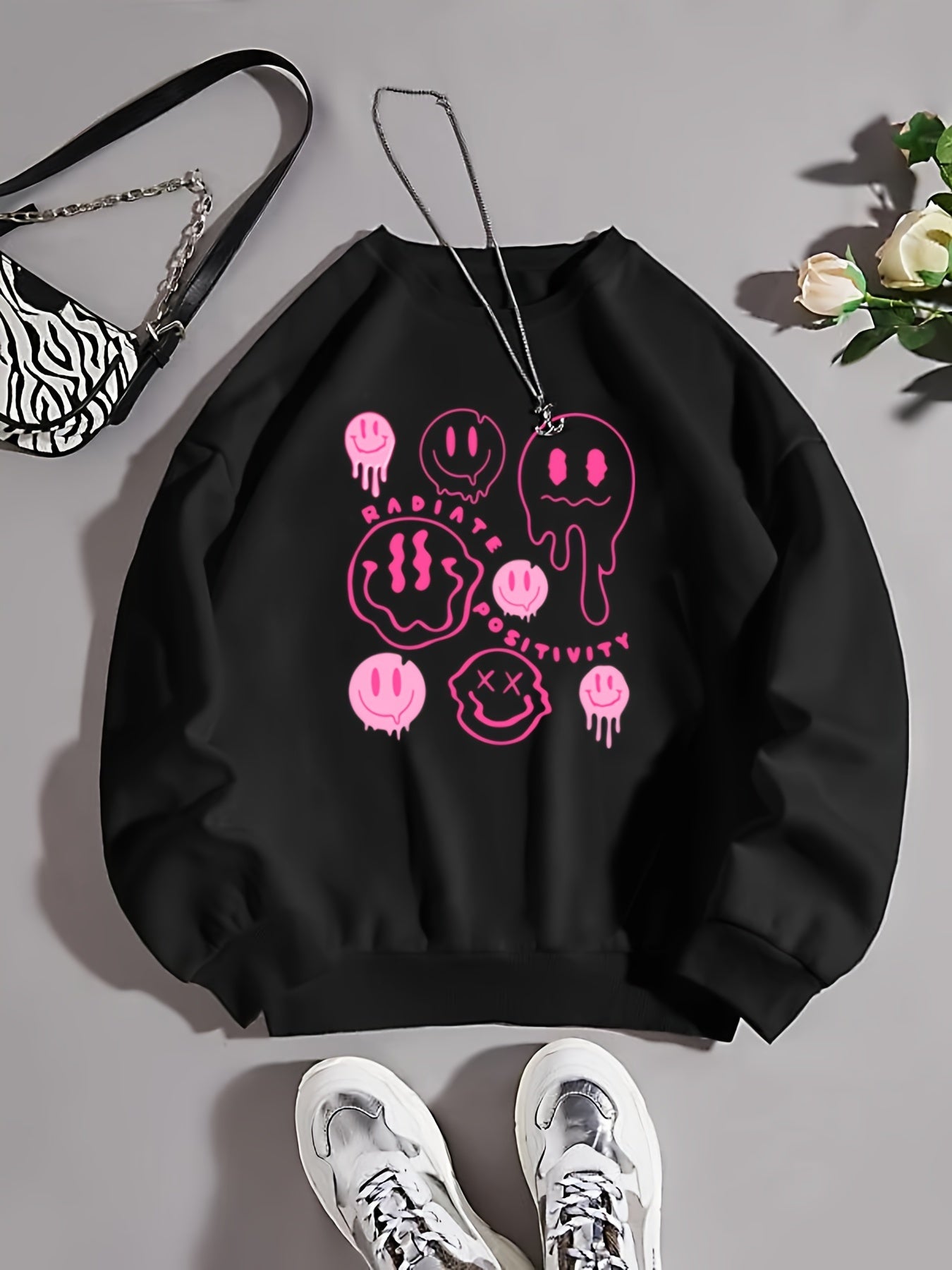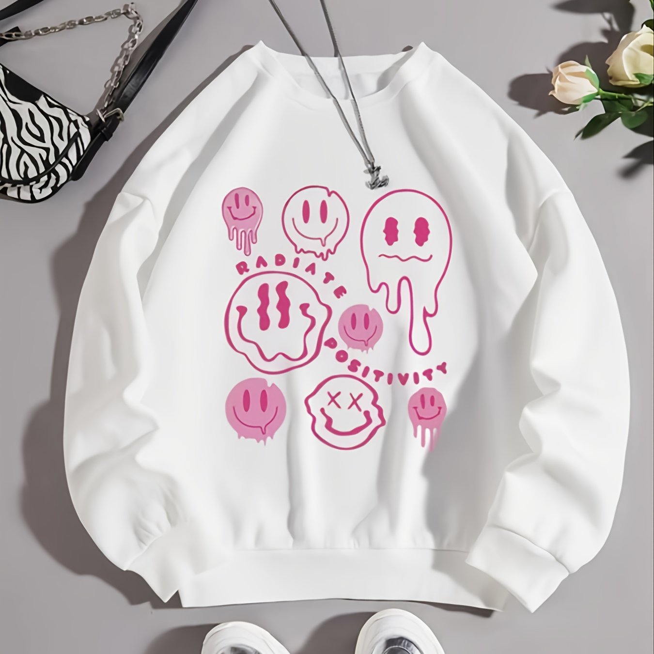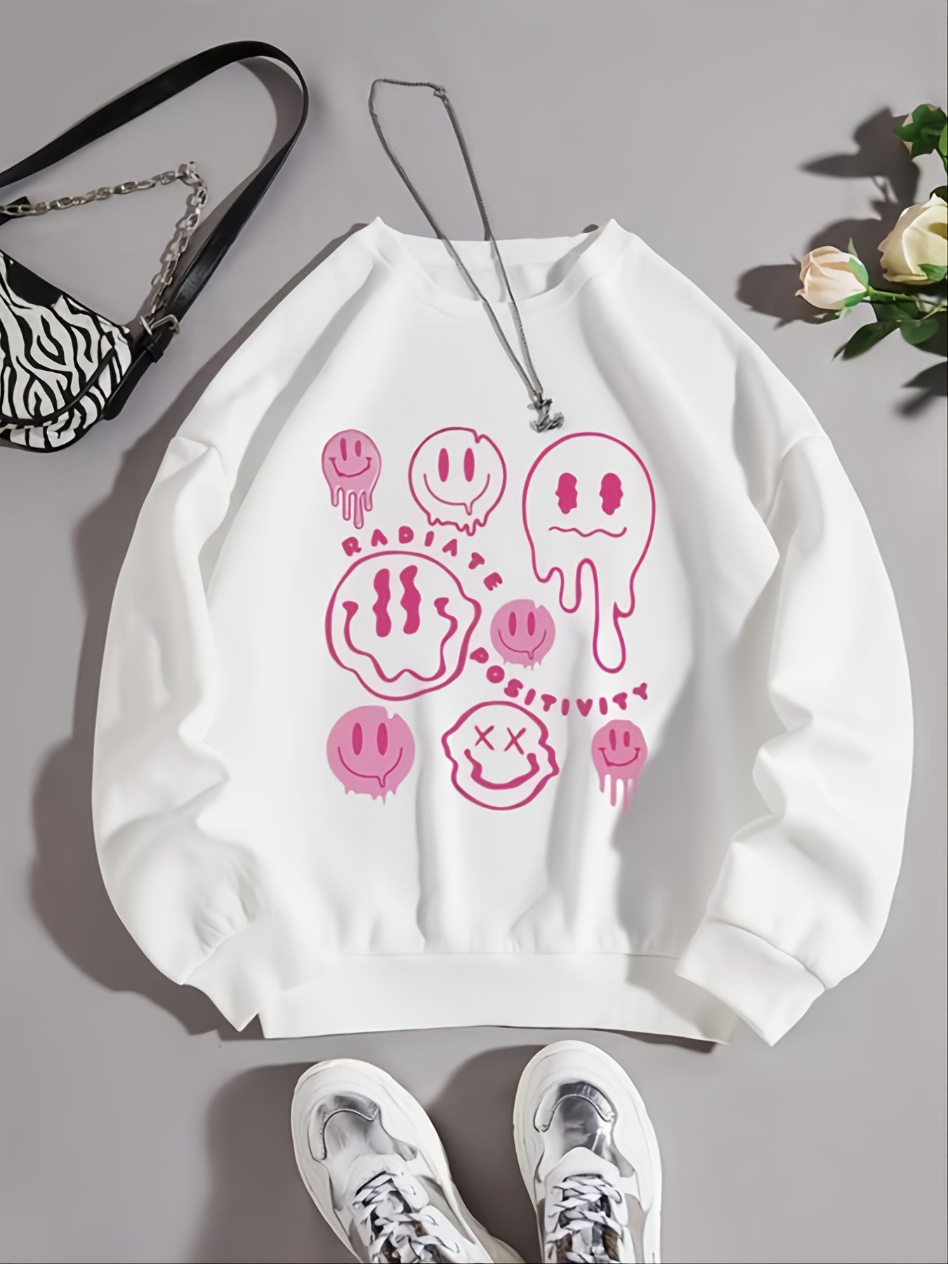 Sixsr Valentine's Day Smile Print Crew Neck Pullover, Casual Fashion Loose Long Sleeve Sweatshirt, Women's Clothing