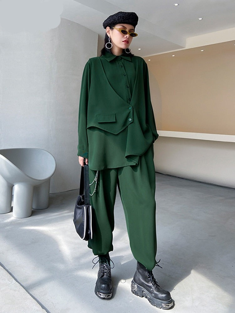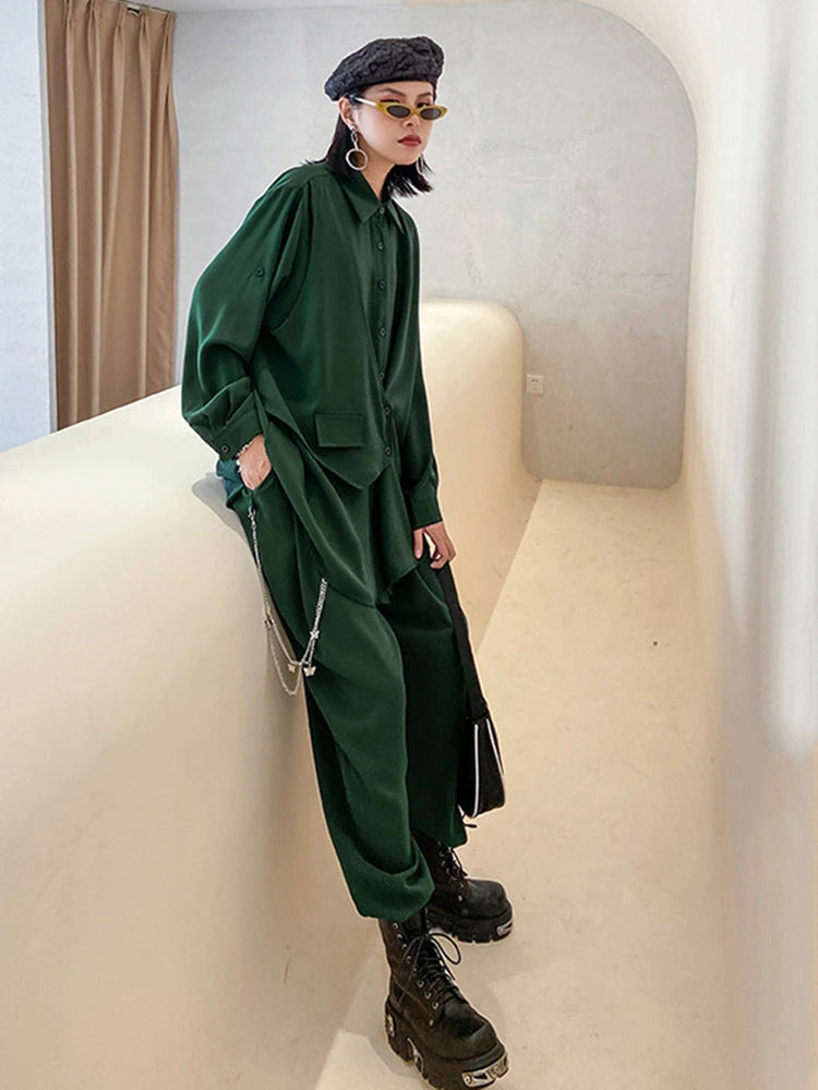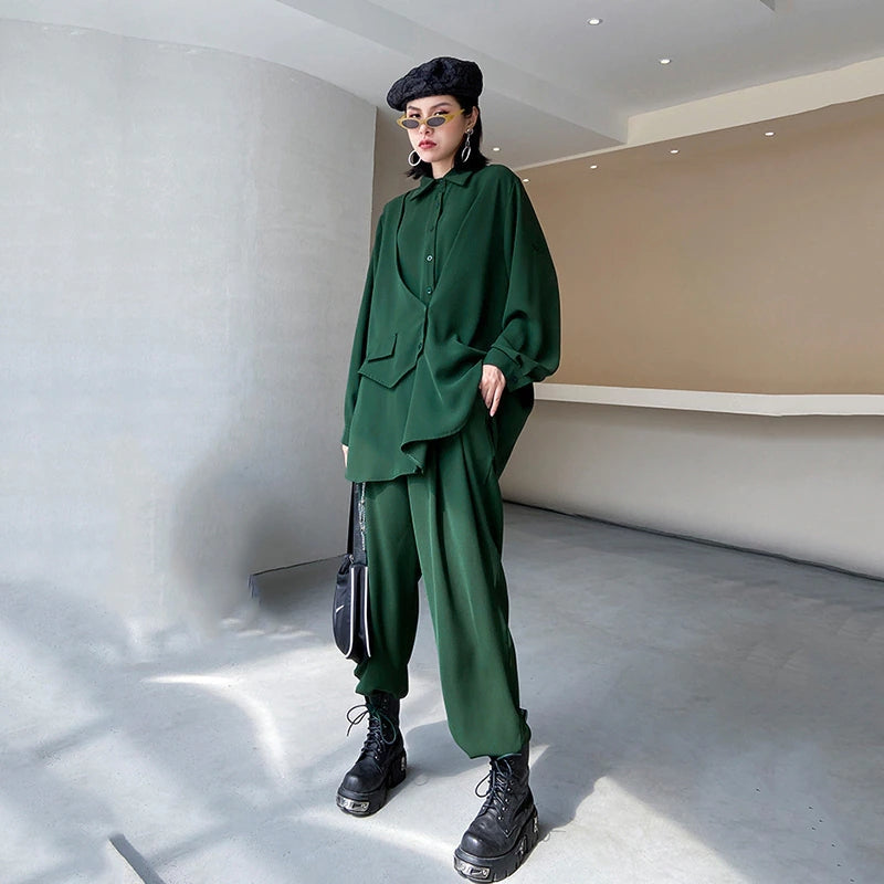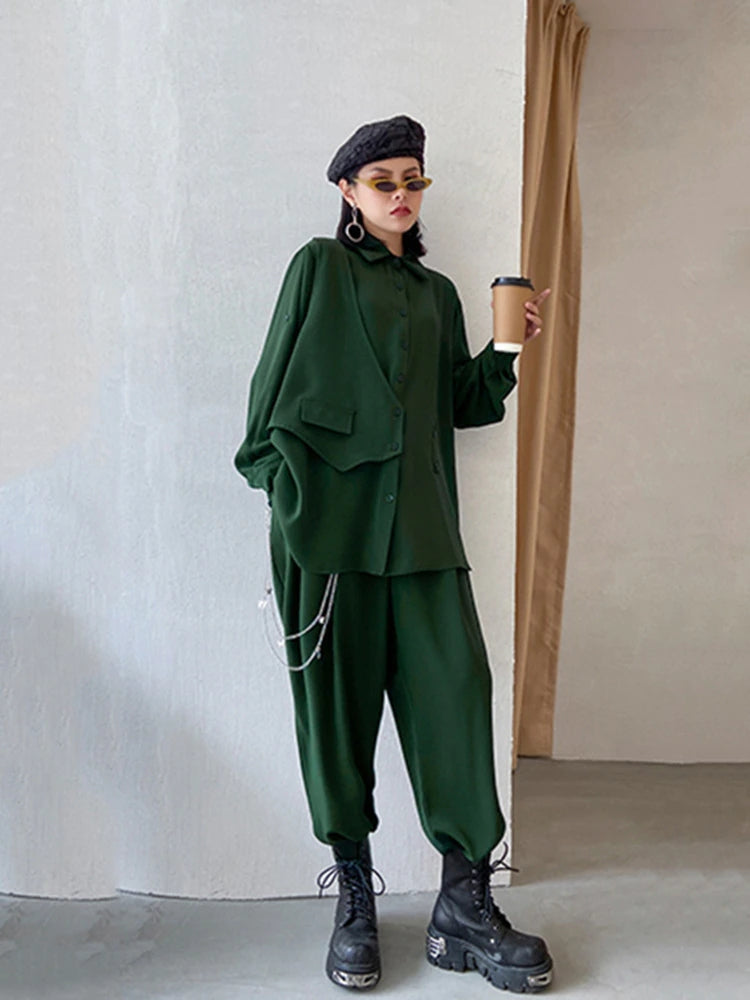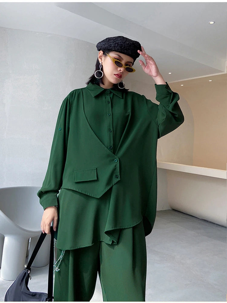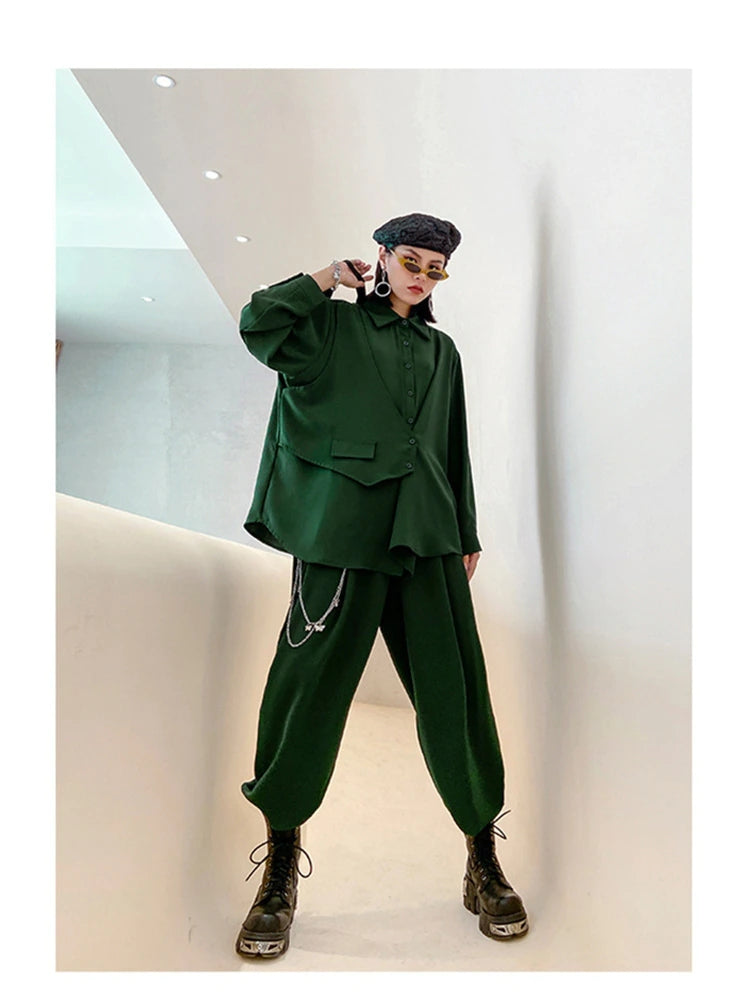 sixsr Wide Leg Pants Irregular Big Size Two Piece Suit New Lapel Long Sleeve Loose Fit Women Fashion Spring Autumn