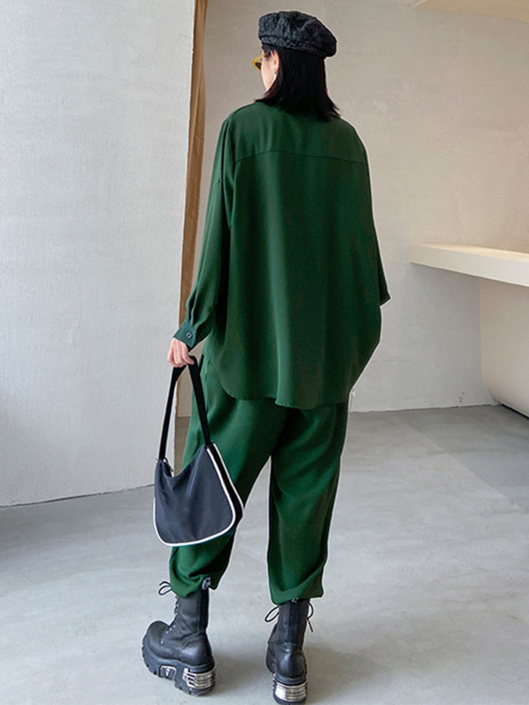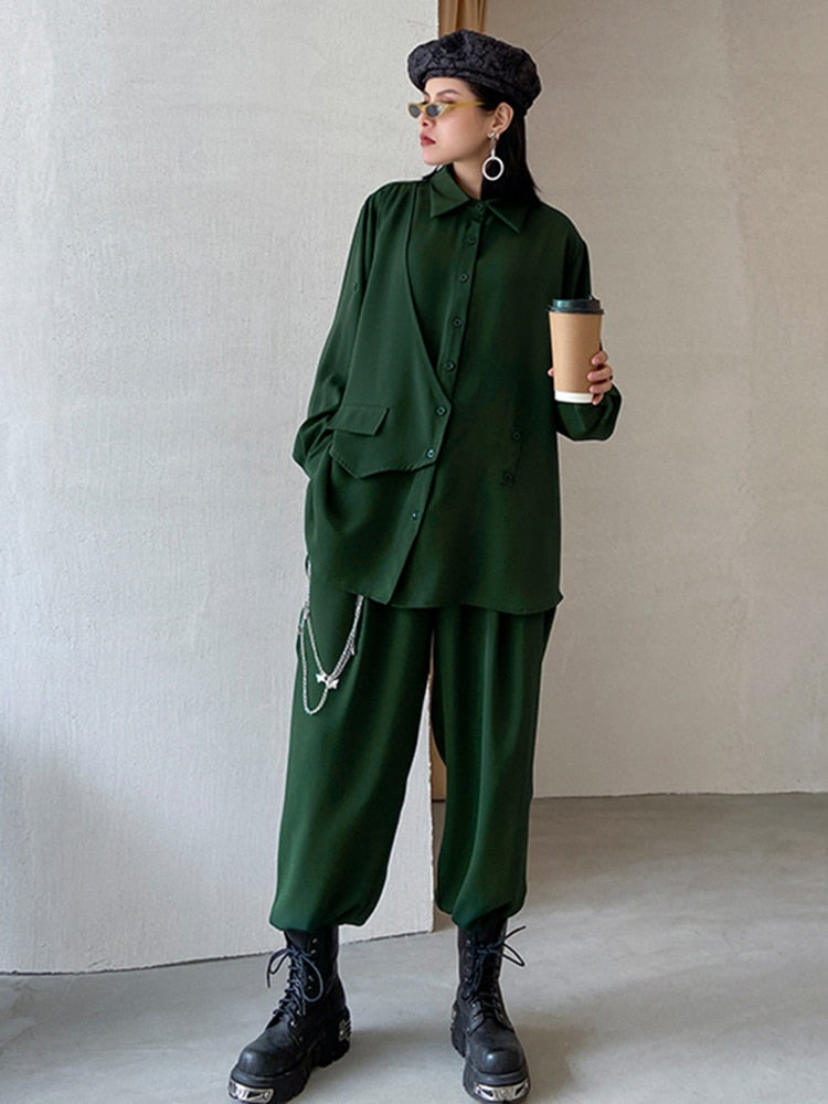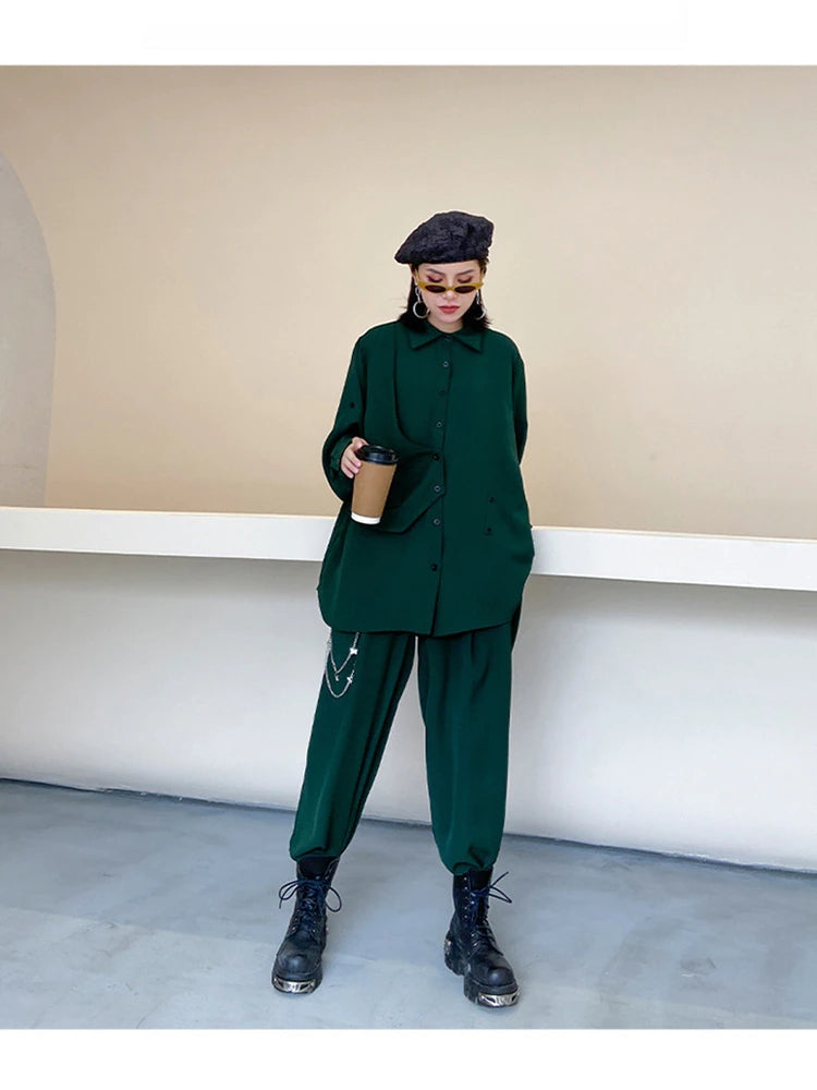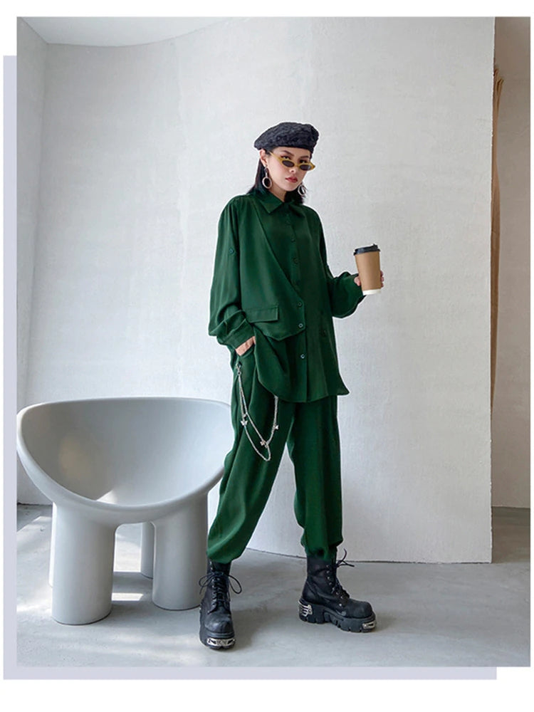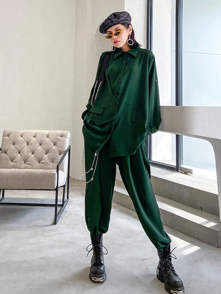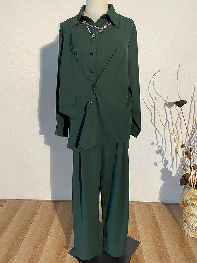 sixsr Wide Leg Pants Irregular Big Size Two Piece Suit New Lapel Long Sleeve Loose Fit Women Fashion Spring Autumn