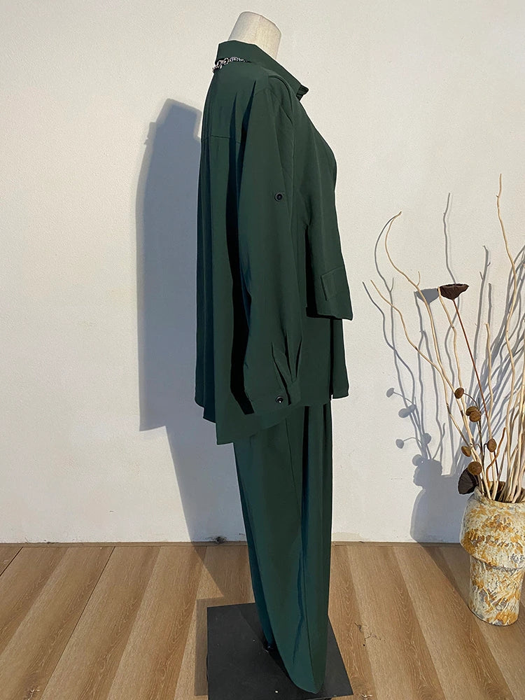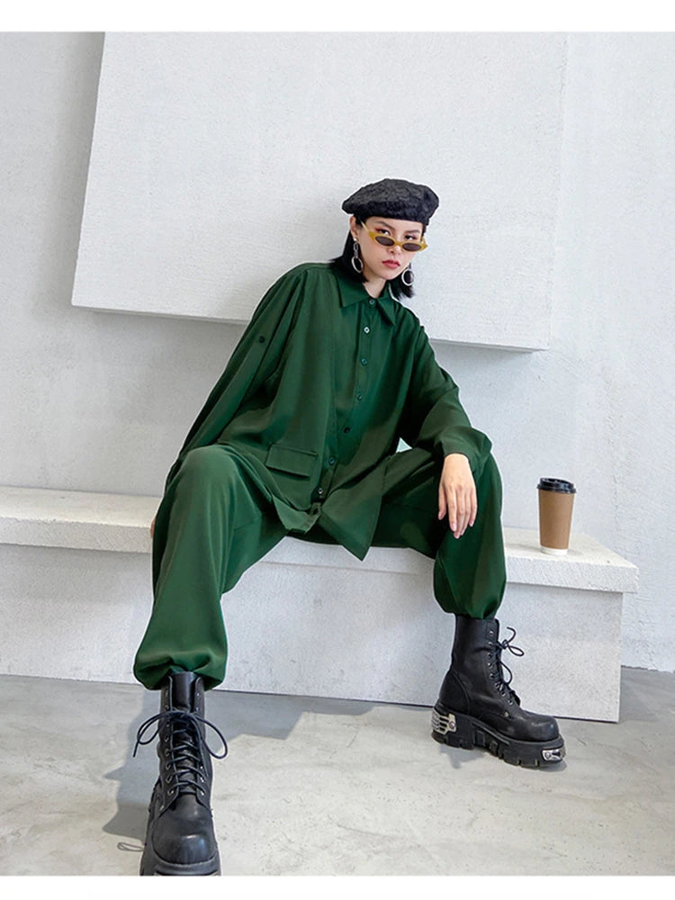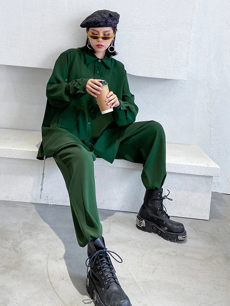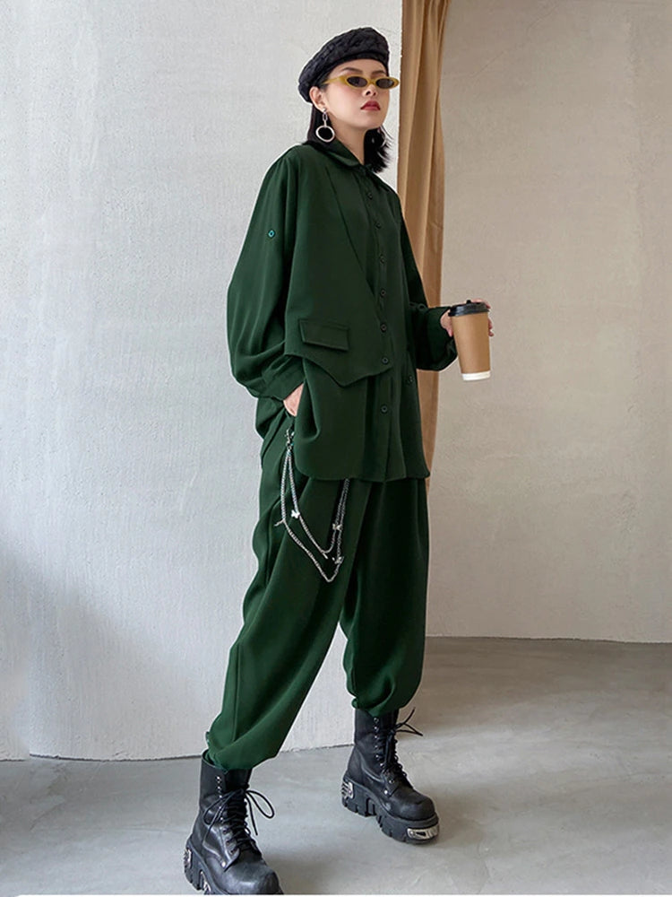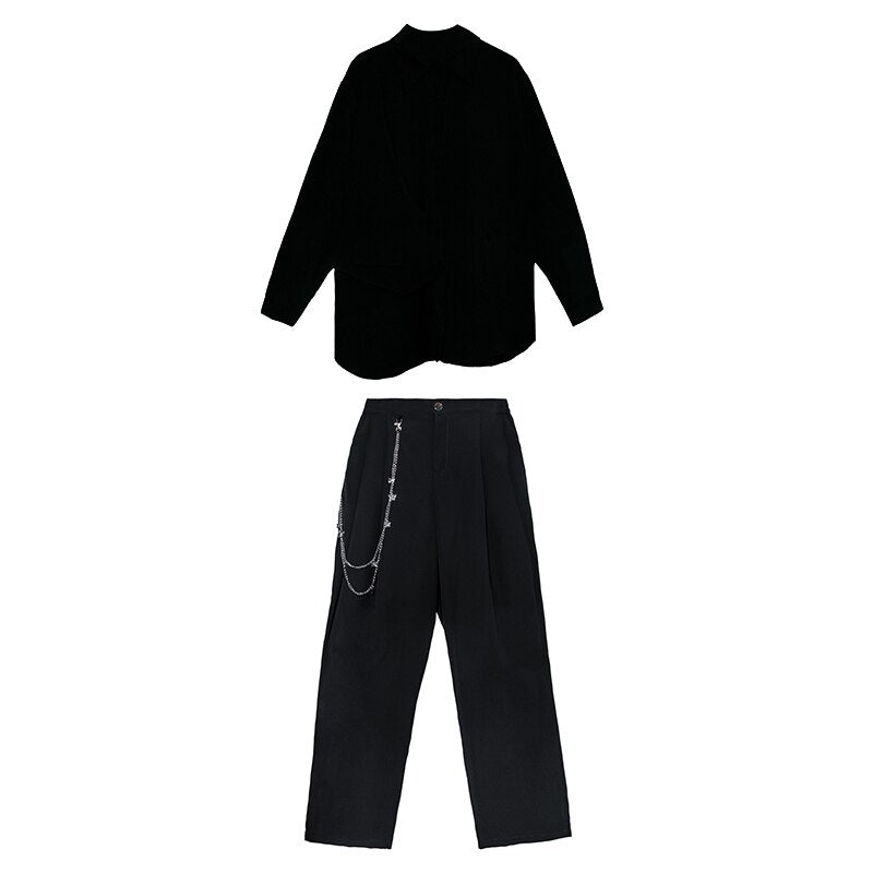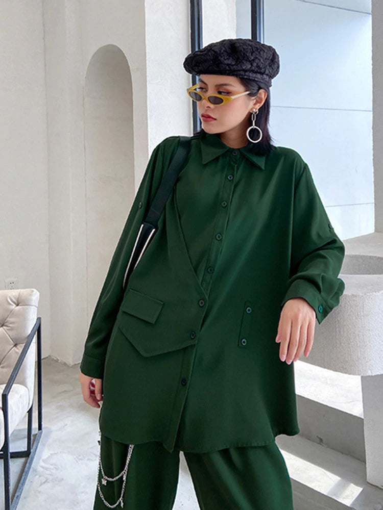 sixsr Wide Leg Pants Irregular Big Size Two Piece Suit New Lapel Long Sleeve Loose Fit Women Fashion Spring Autumn