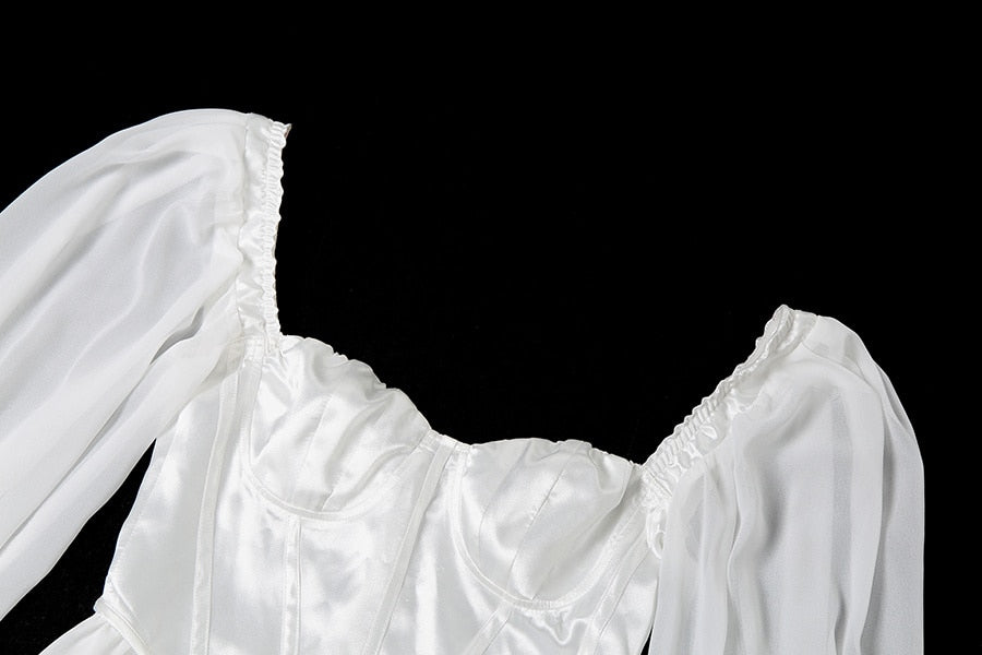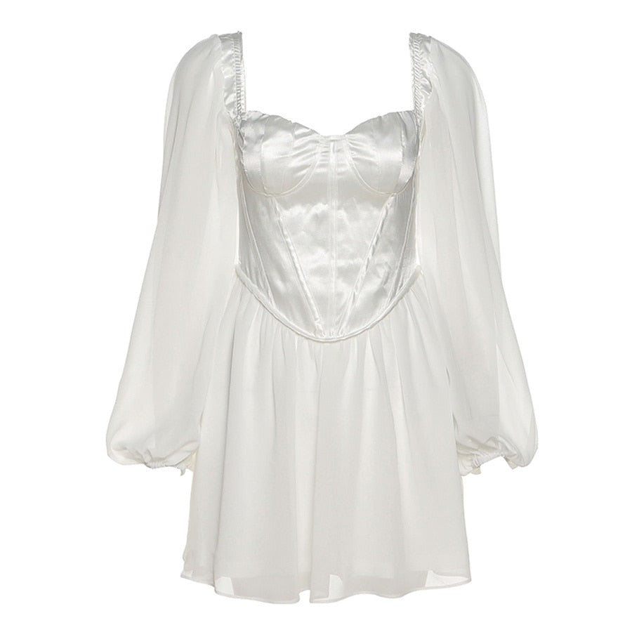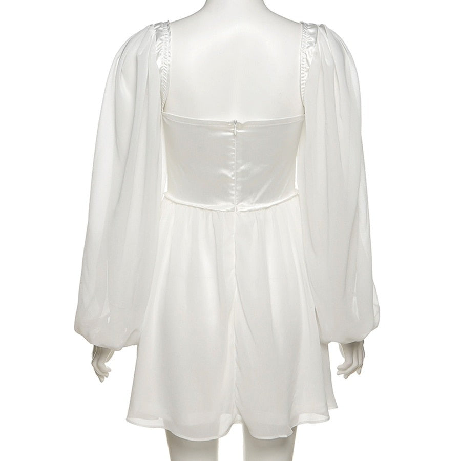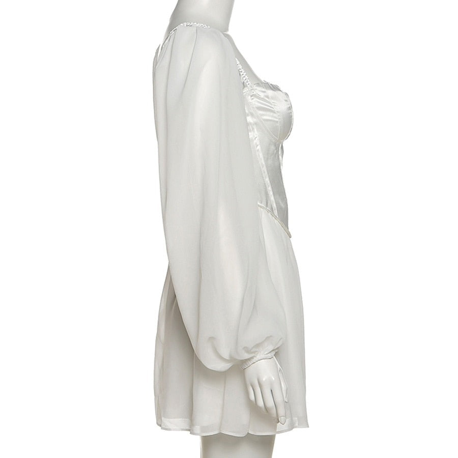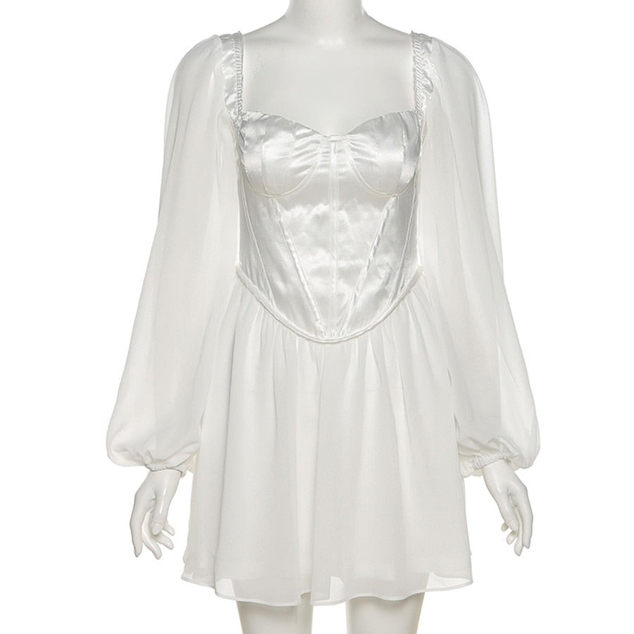 Sixsr Women Fashion Elegant High Waist Slim Solid White Office Lady A-Line Mini Dress Spring Autumn New Women Party Dress