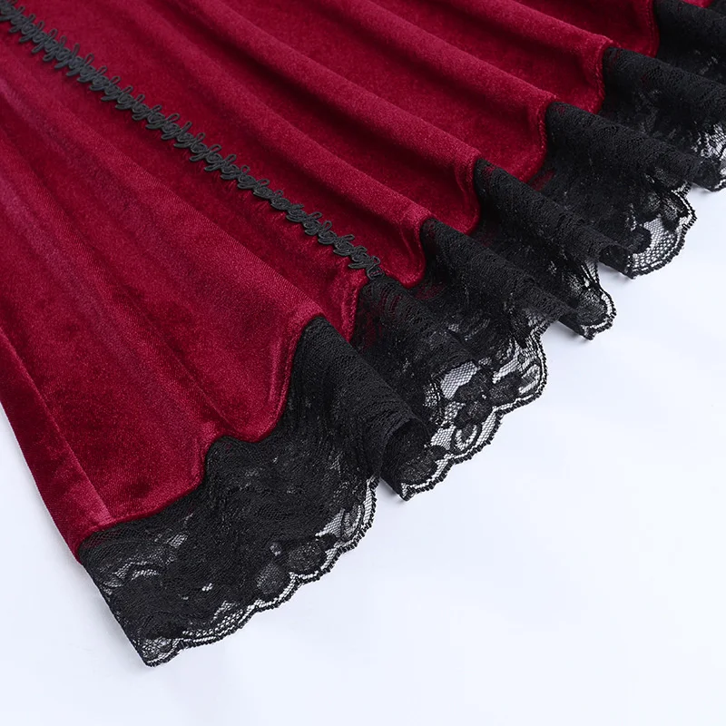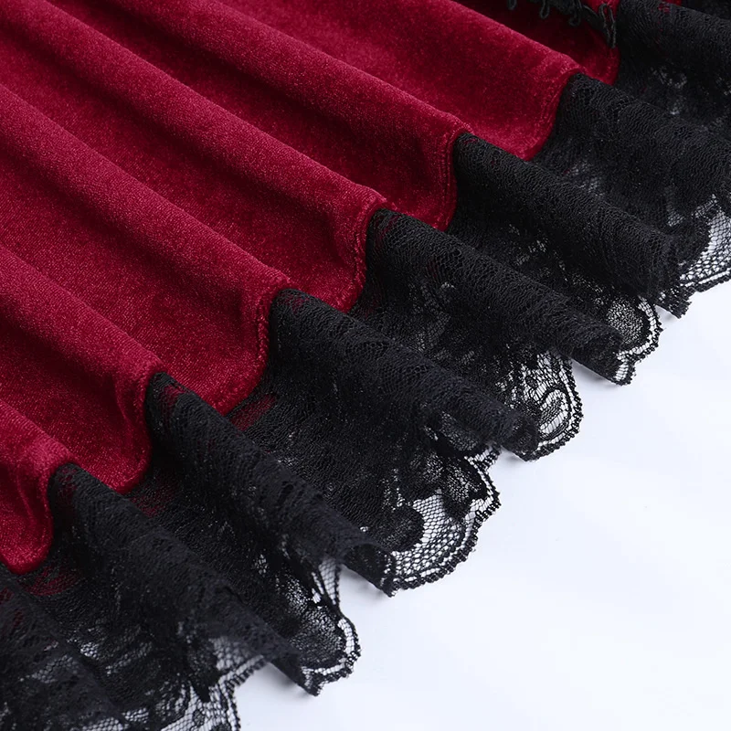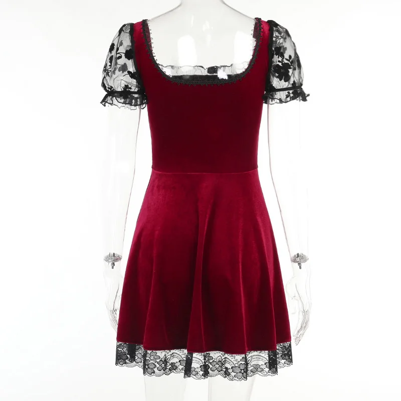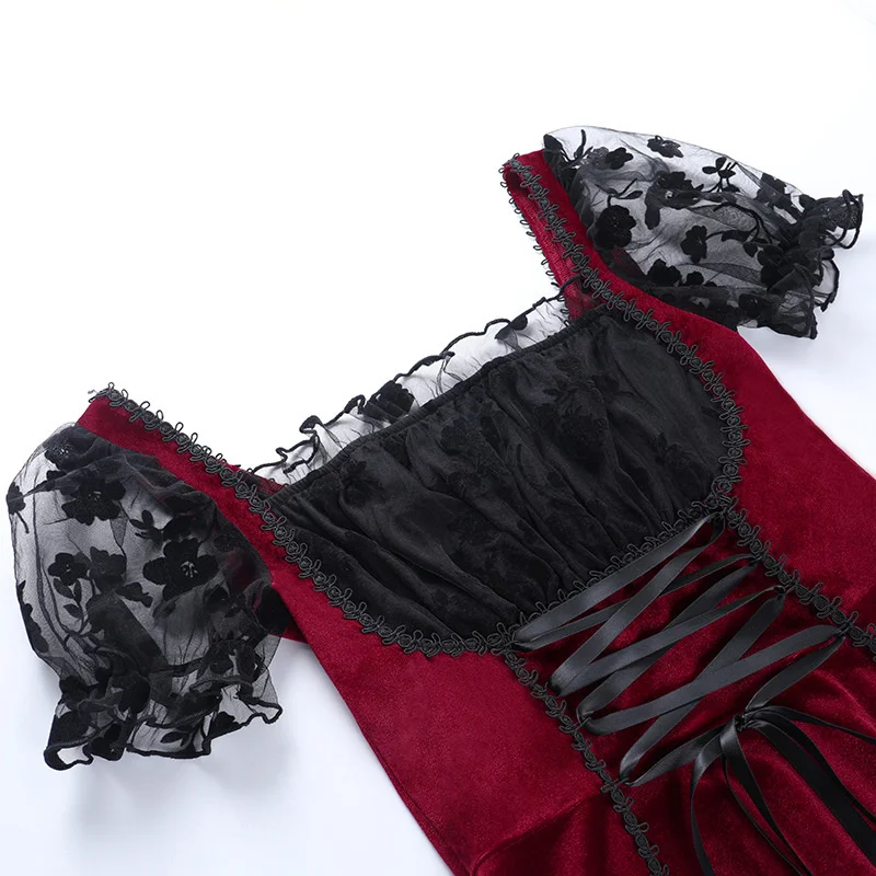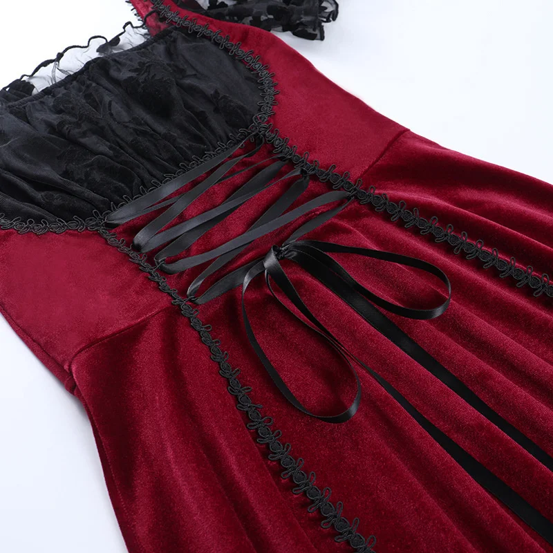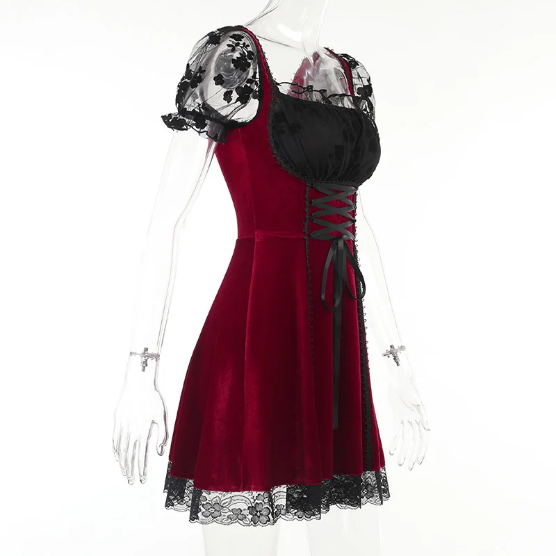 Sixsr Women Fashion Gothic Vintage Velvet Croset Dress Aesthetic Punk Hight Waist Lace Trim Mesh Mini Dresses Fairy Grunge Partyclub Dress