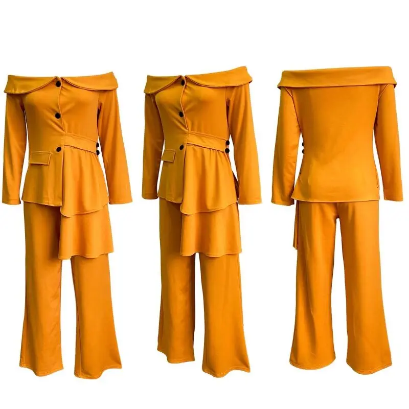 Sixsr Women Fashion Trends Women's Suit Pantsuit African Long-sleeved Coat + Trousers Two-piece Spring/fall New Solid Color Business Suit