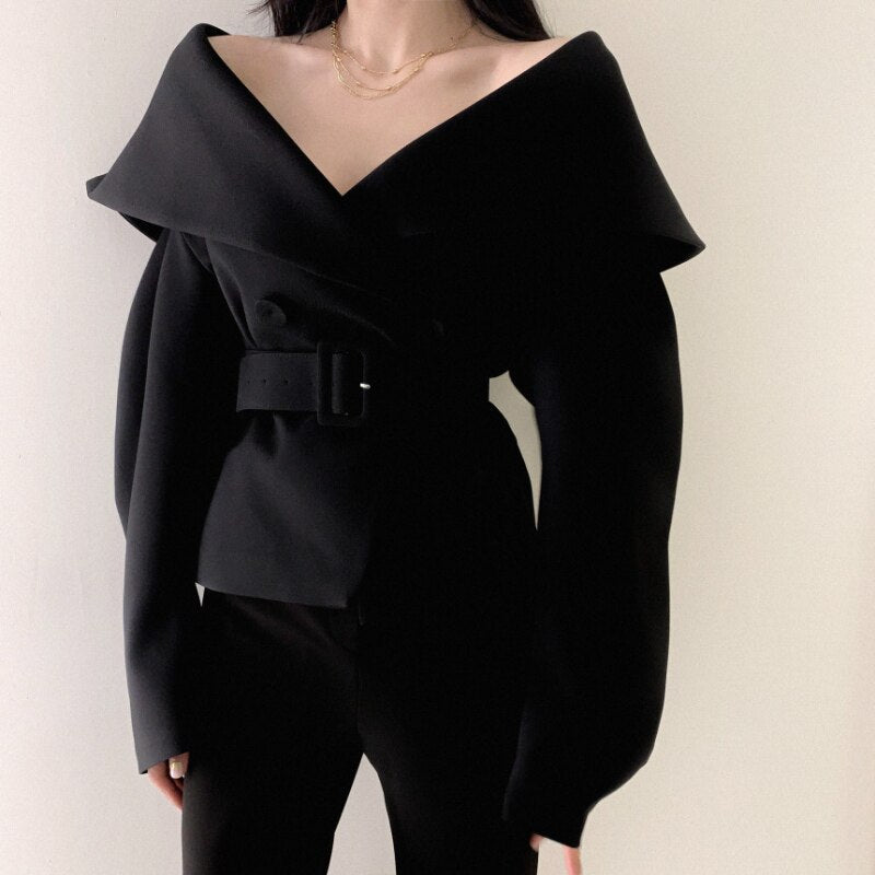 Item: Women spring autumn short blazer coat big lapel collar