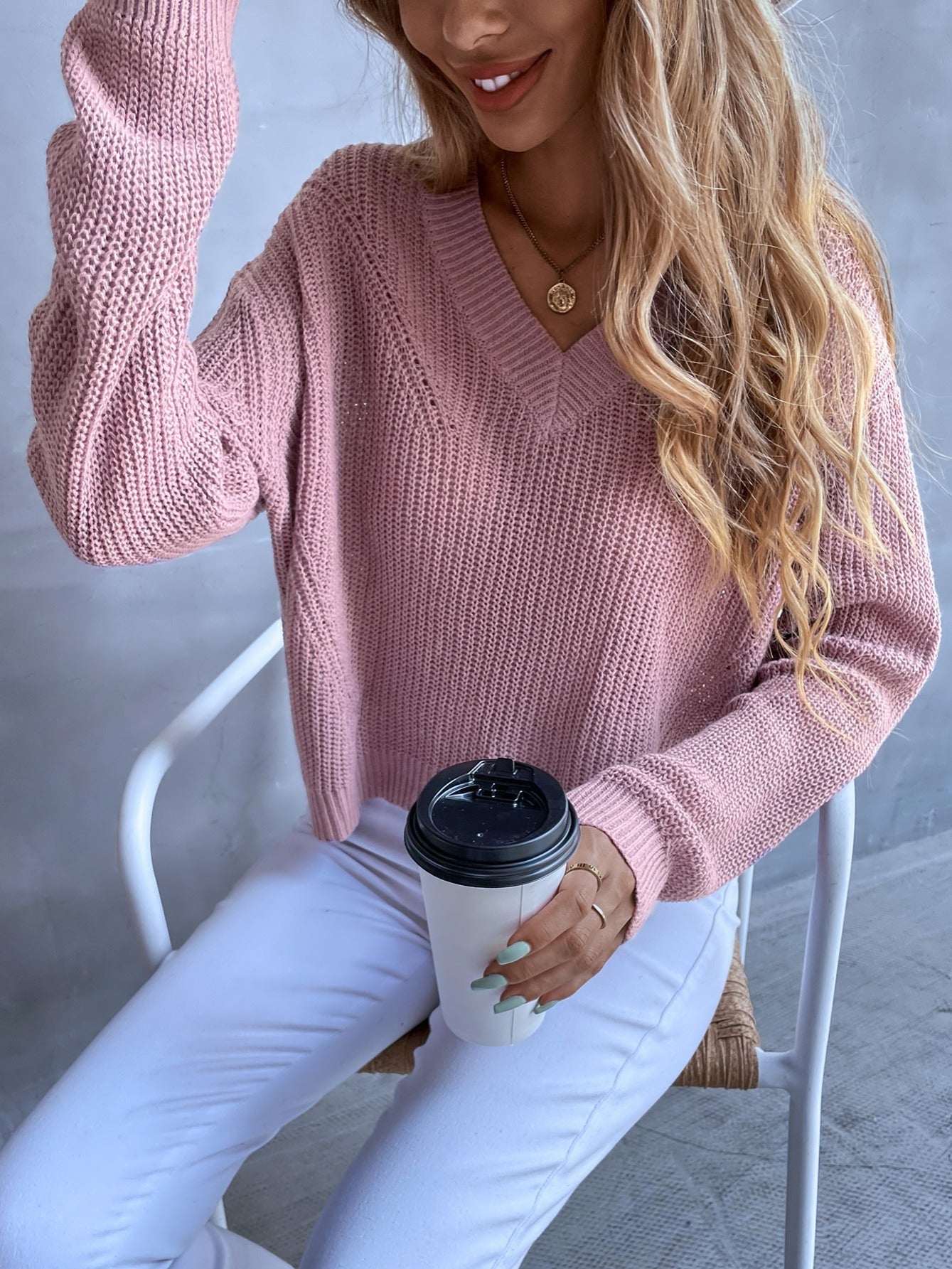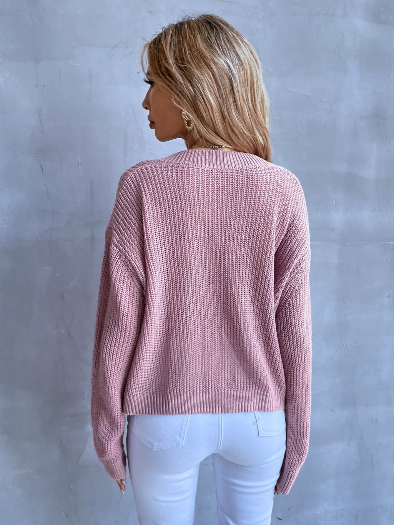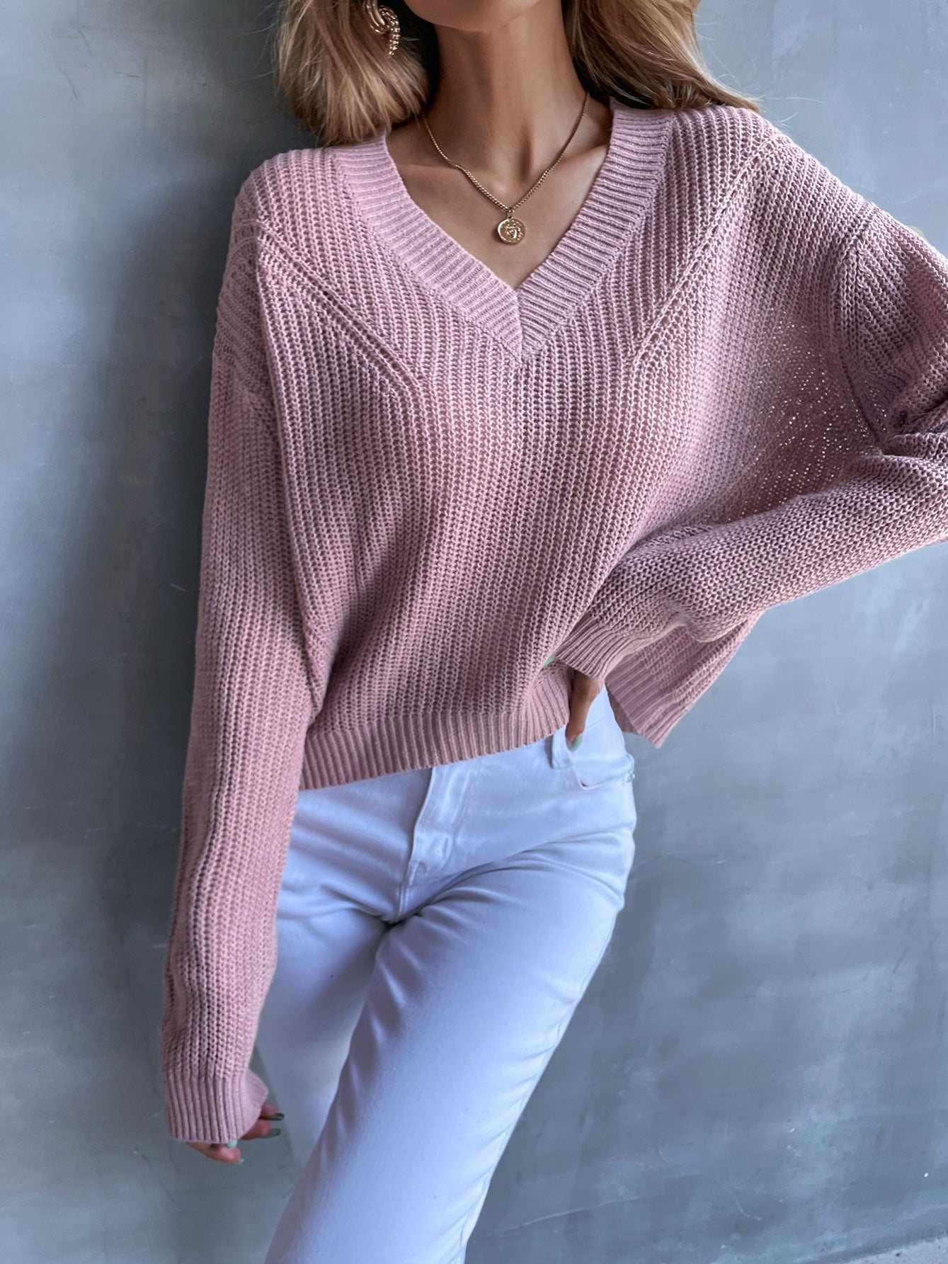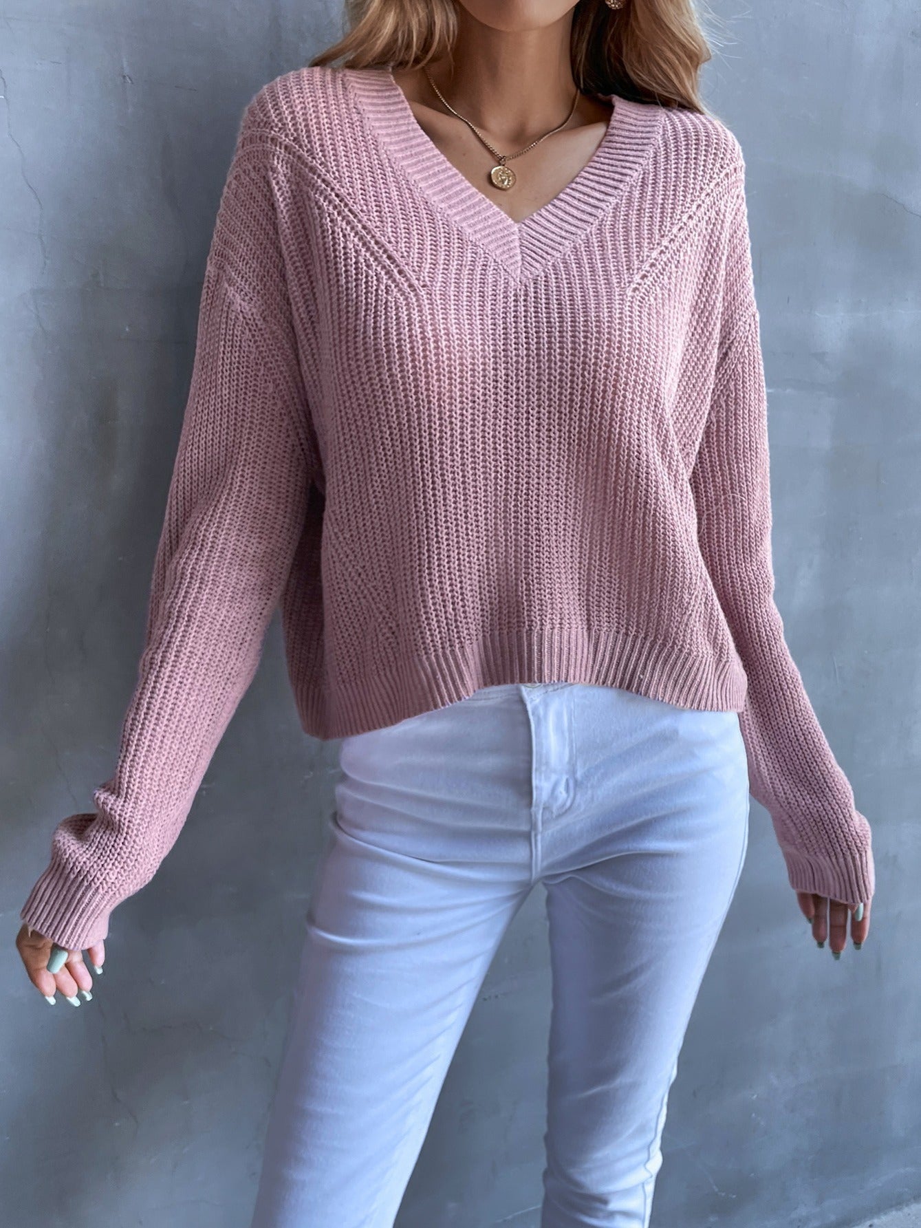Sixsr Women's Sweater Casual Solid V-neck Long Sleeve Loose Fall Winter Sweater