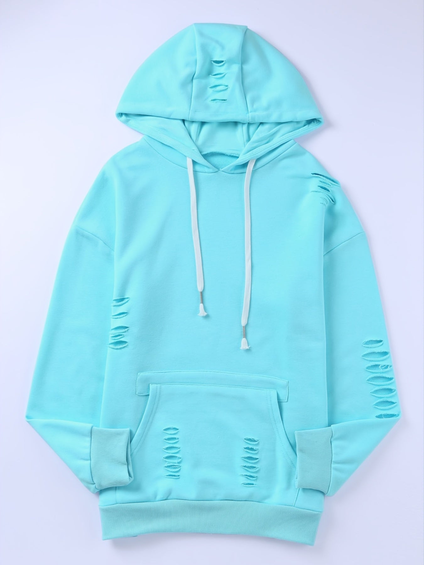 Sixsr Women's Sweatshirt Shabby Distressed Drawstring Hoodie