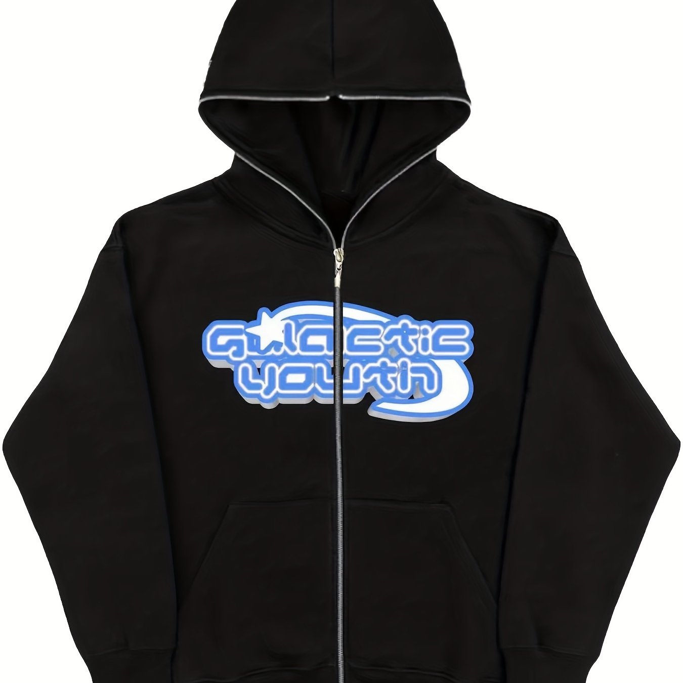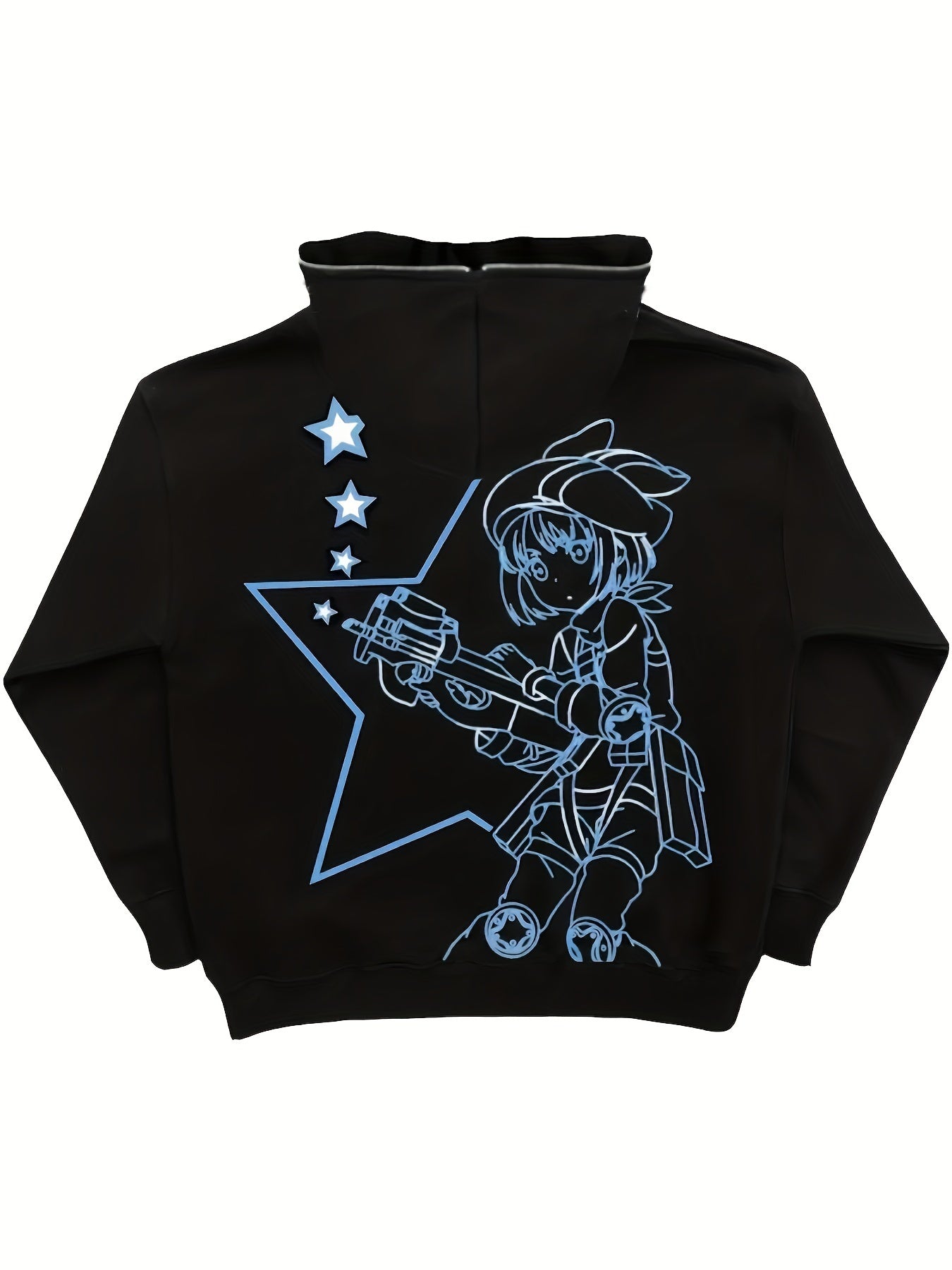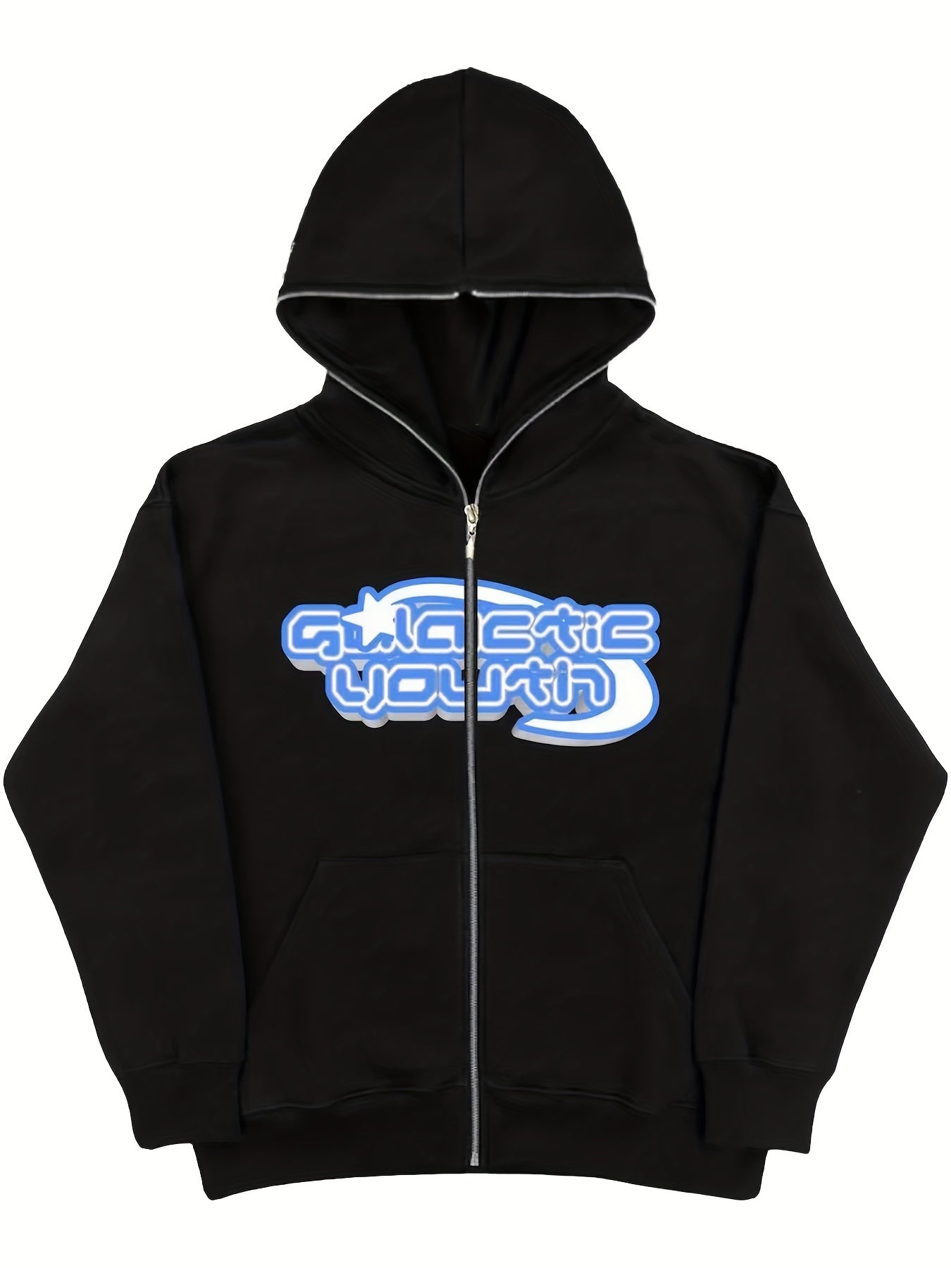Sixsr Y2K Cartoon Figure & Letter Print Hoodie, Slant Pockets Long Sleeve Zipper Outwear, Women's Clothing