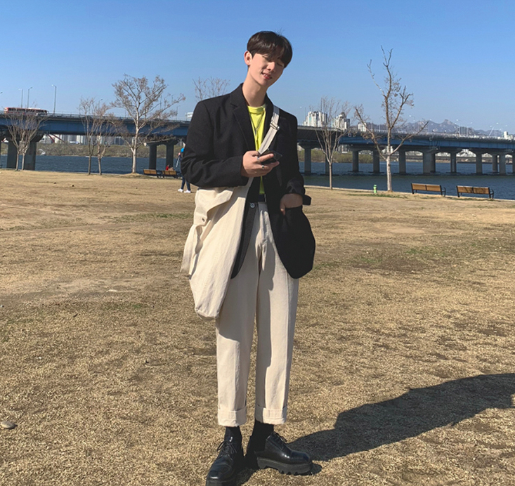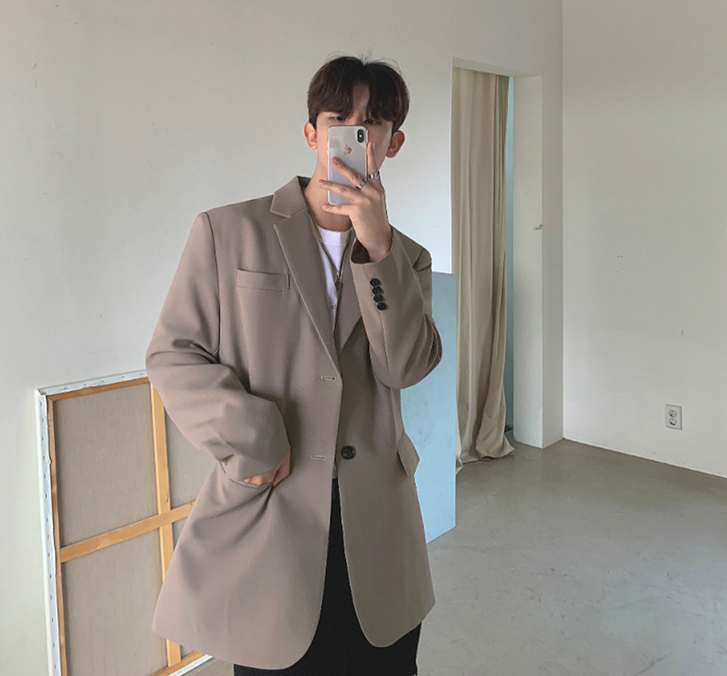 Solid Long Sleeve Blazer Men Korean Loose Single Breasted Boy Suit Simple Slim Pocket Blazer Men's
