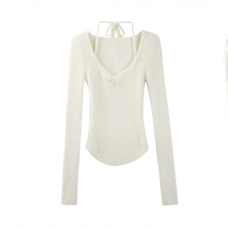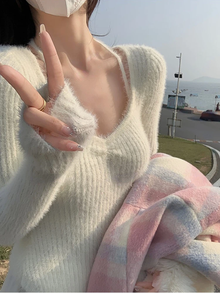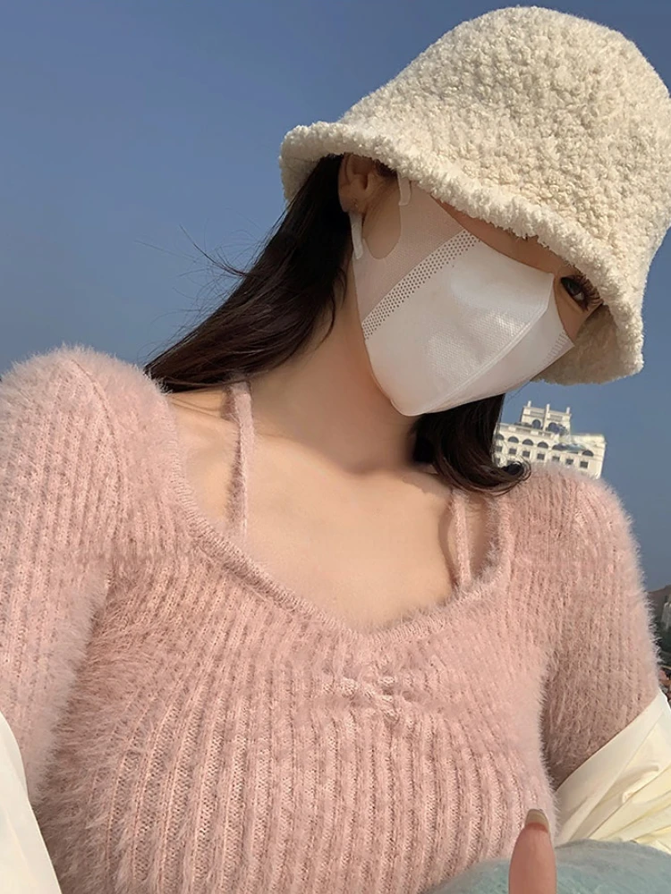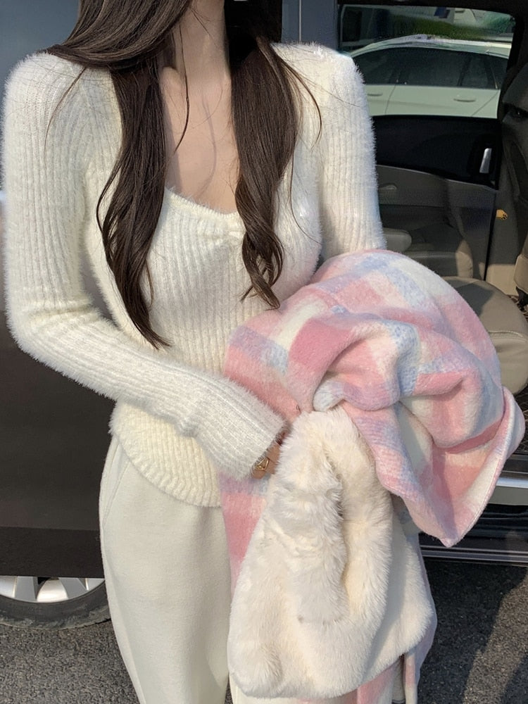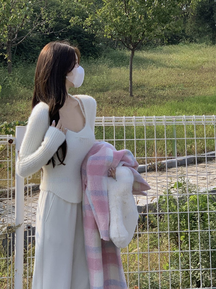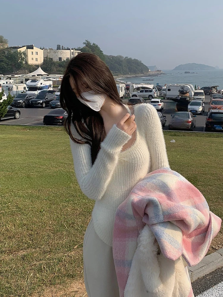 Spring Slim Knitted Y2k Tops Woman Pure Color Korea Fashion Pullover Clothing Chic Casual Long Sleeve Sweater Female Design