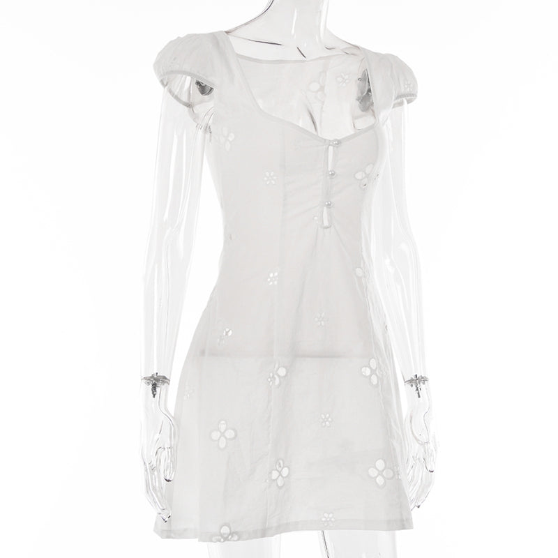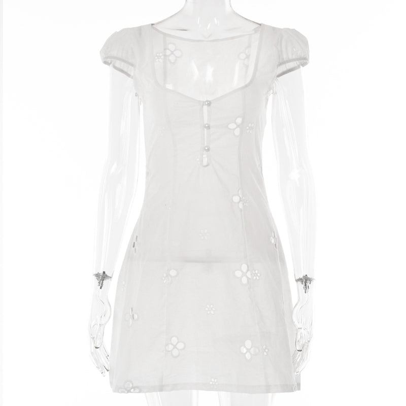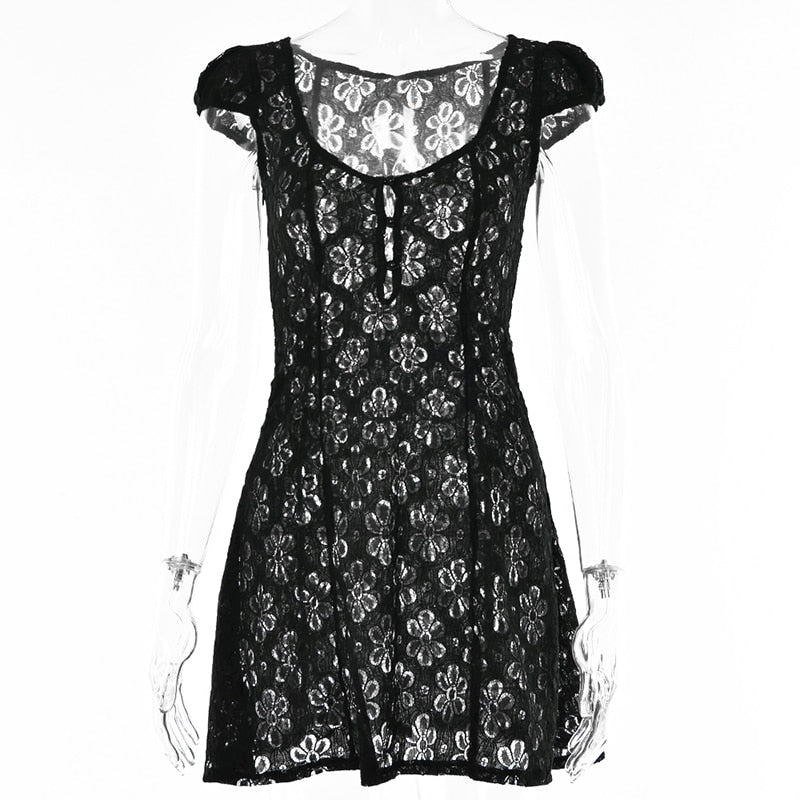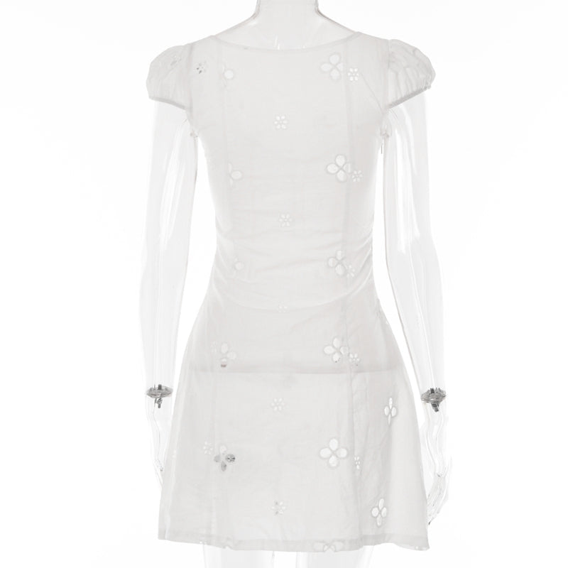Square Collar Black Mini Dresses Summer Sexy High Waist Short Sleeve Beachwear Bodycon Hollow Out Sundress Female sixsr