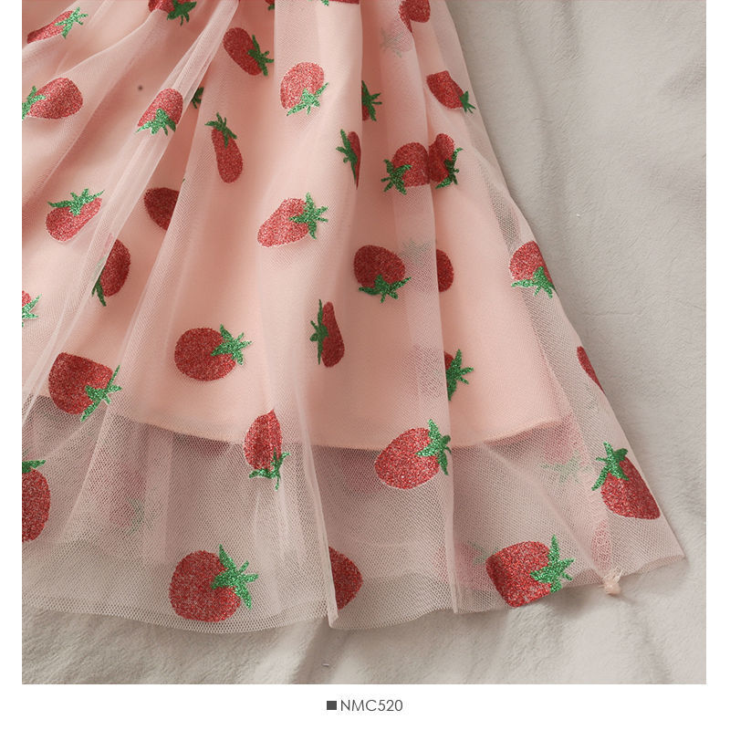 Sixsr Strawberry Dress Women French Style Lace Chiffon Sweet Dress Casual Puff Sleeve Elegant Printed Kawaii Dress Women New