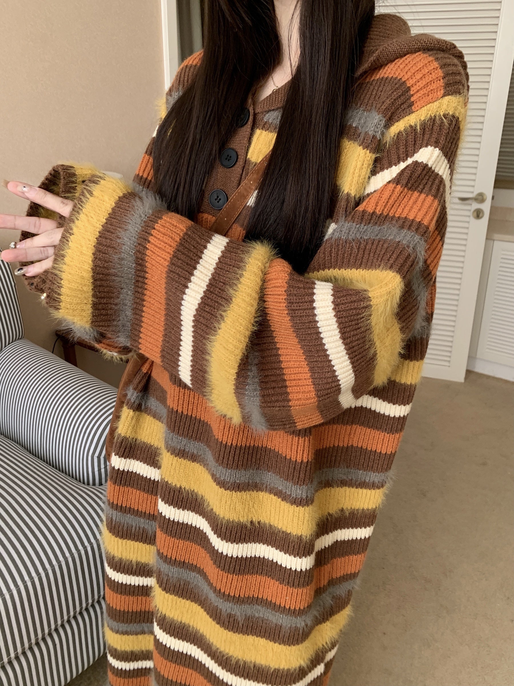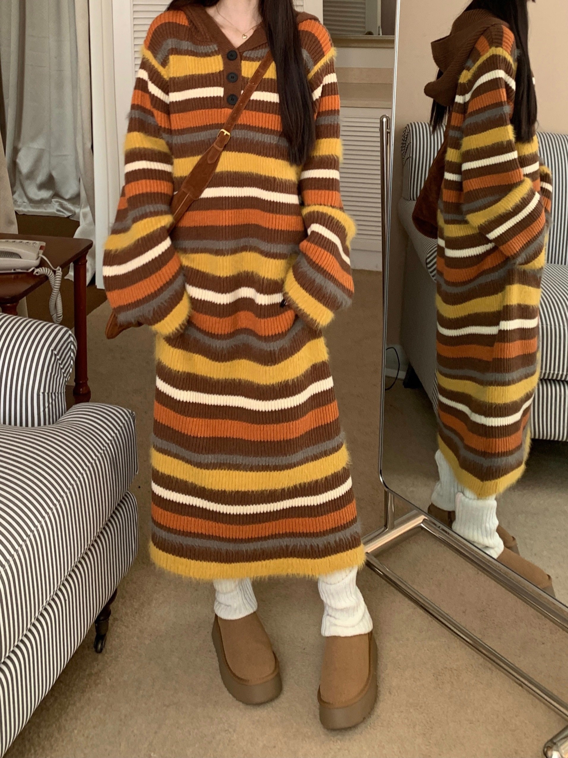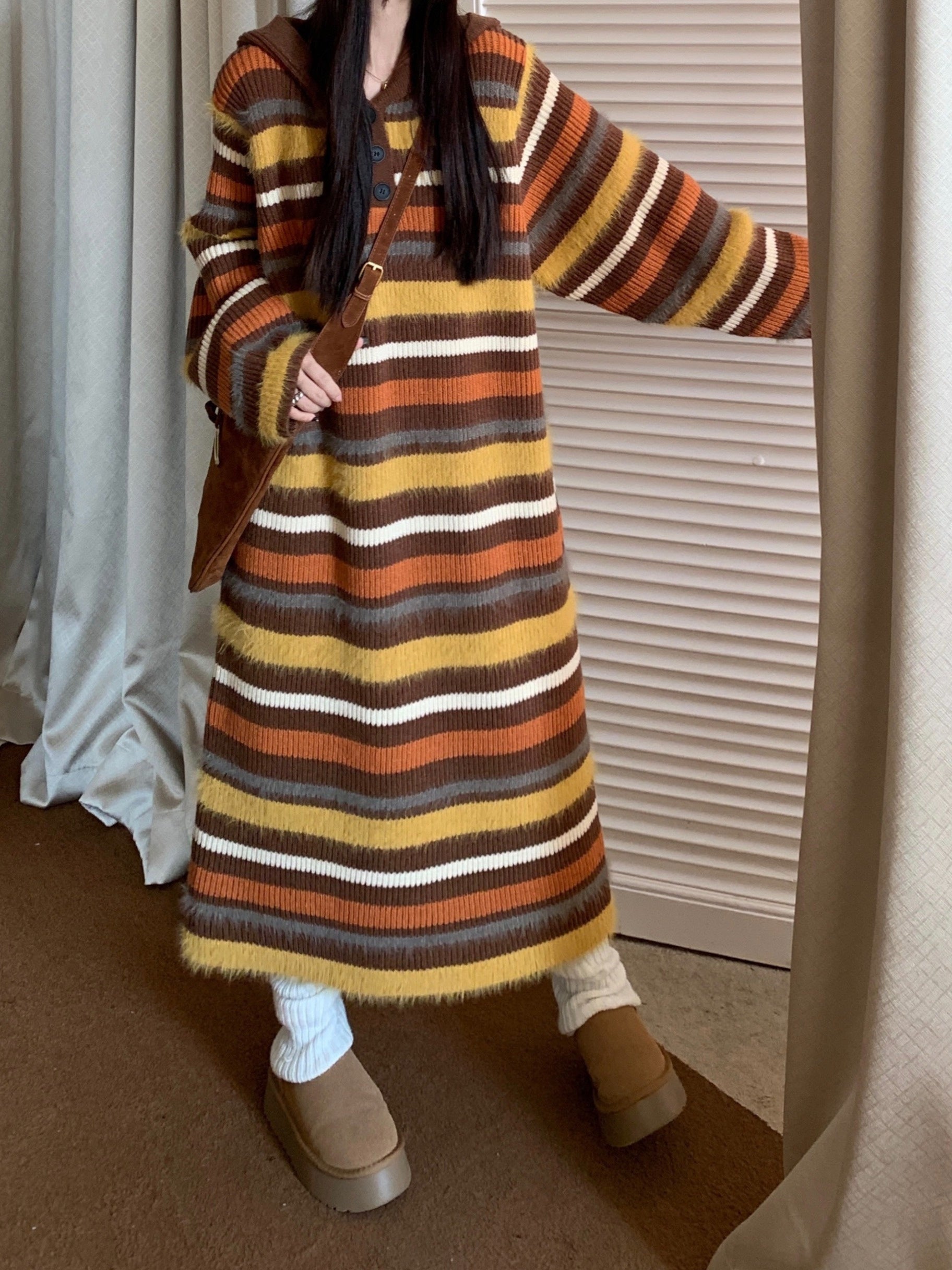 Striped Print Loose Sweater Dress, Casual Long Sleeve Dress For Fall & Winter, Women's Clothing