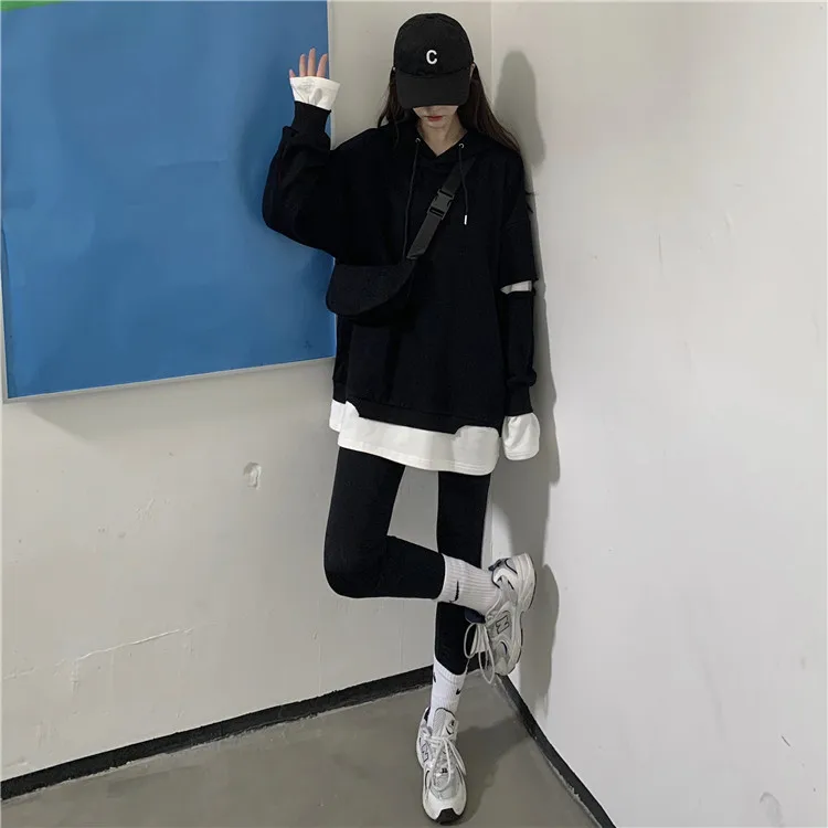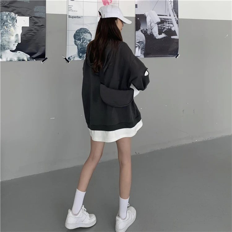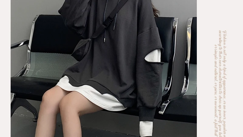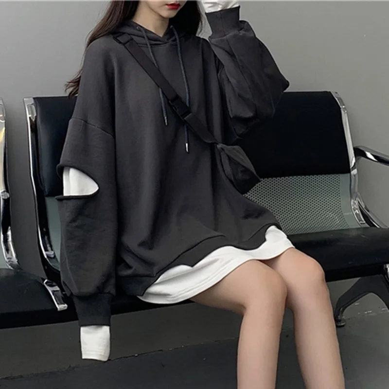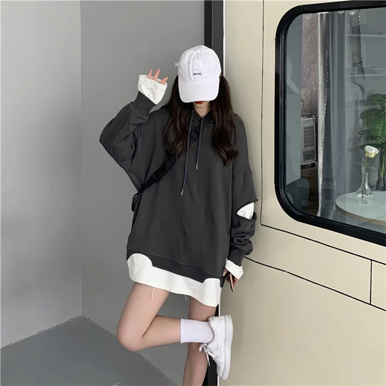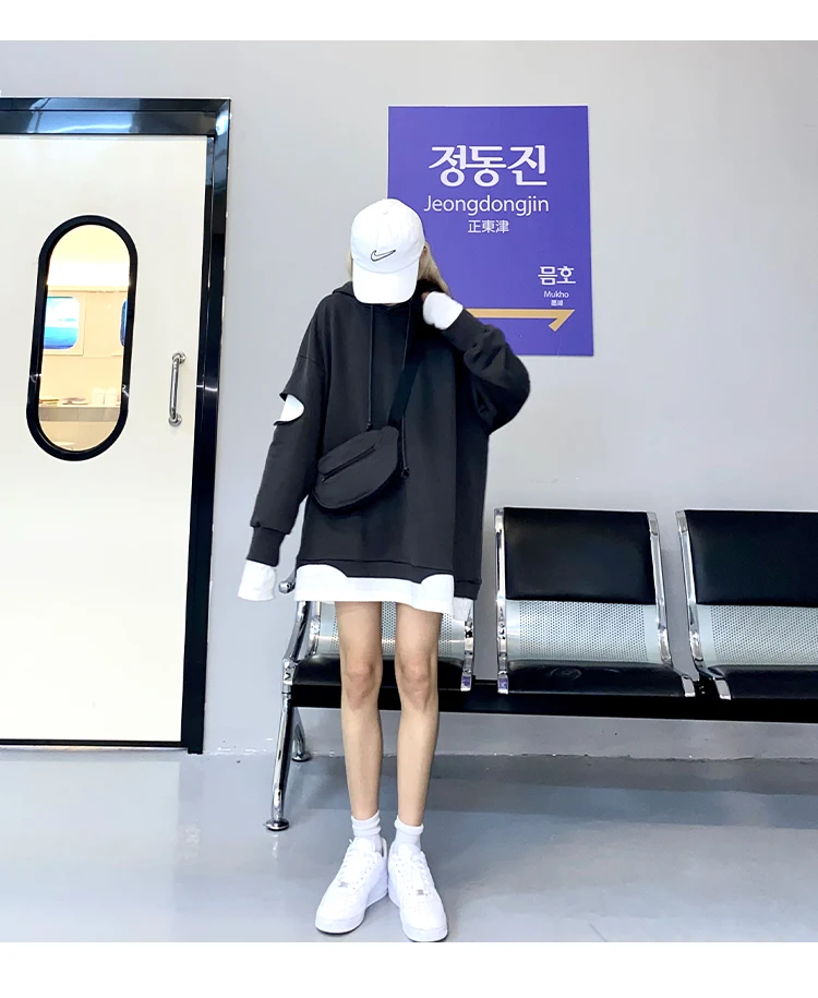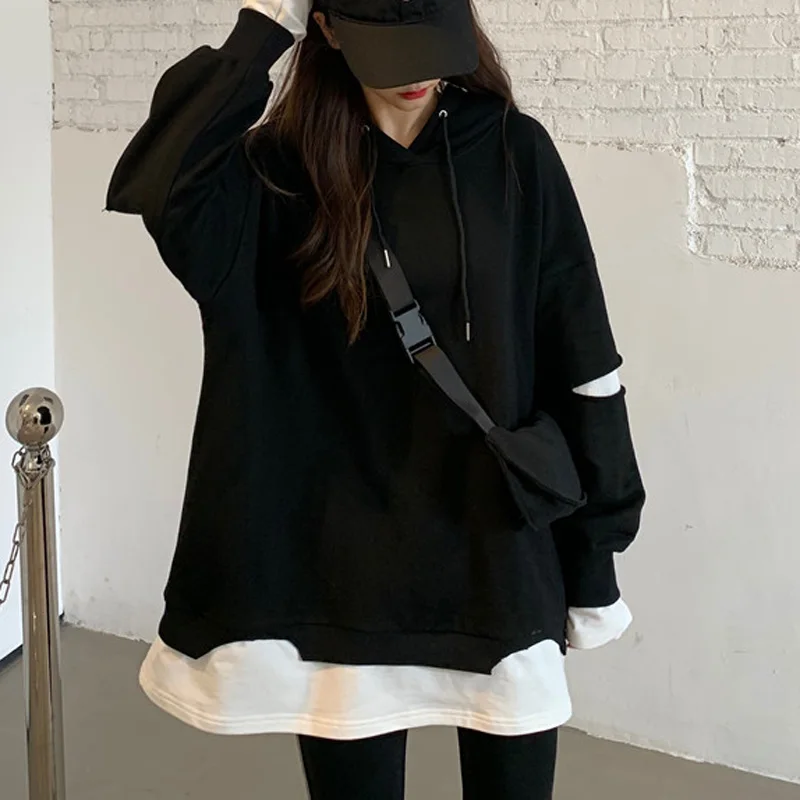 Stylish Fake Two Pieces Loose Long Sleeves Hoodies Blouses
