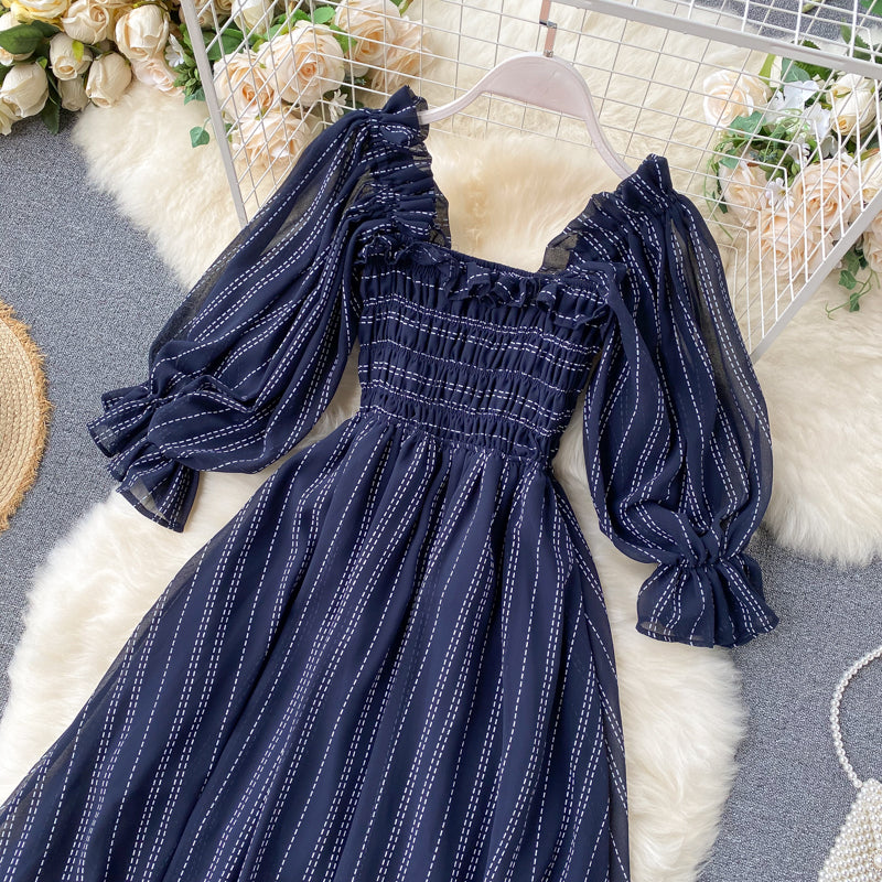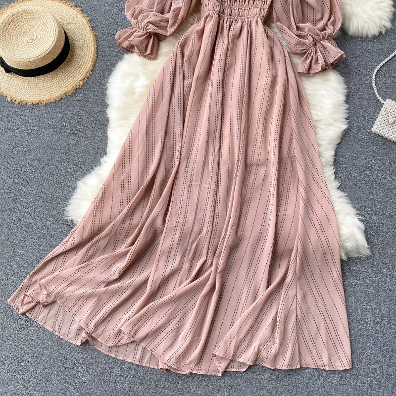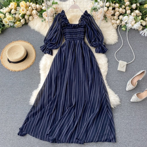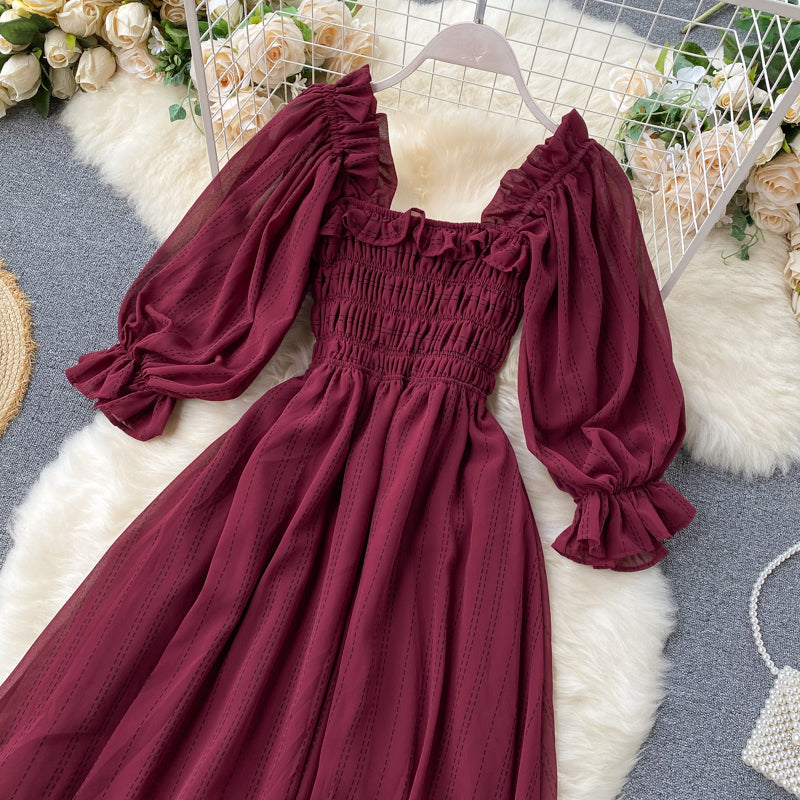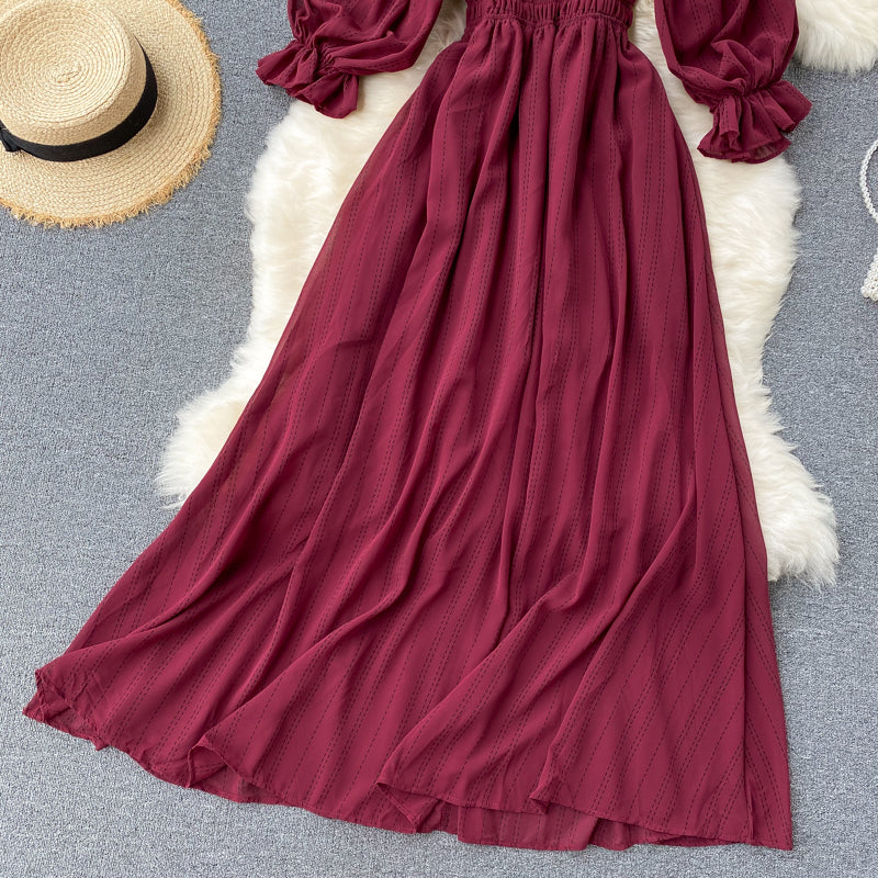 Sixsr Summer Beach Chiffon Long Dress Elegant Solid Lantern Sleeve High Waist Women Maxi Dress Party Club Ladies Vestidos New