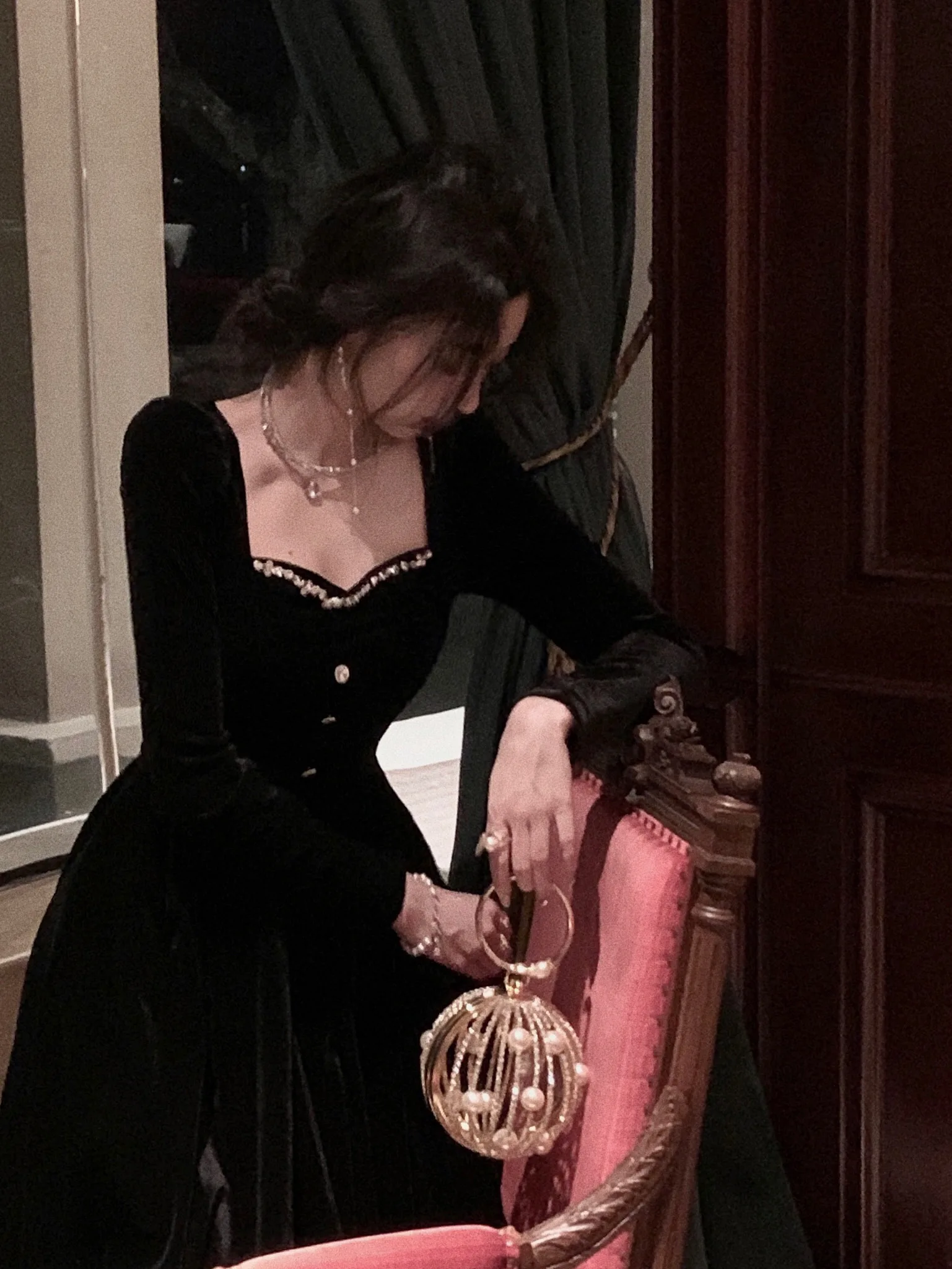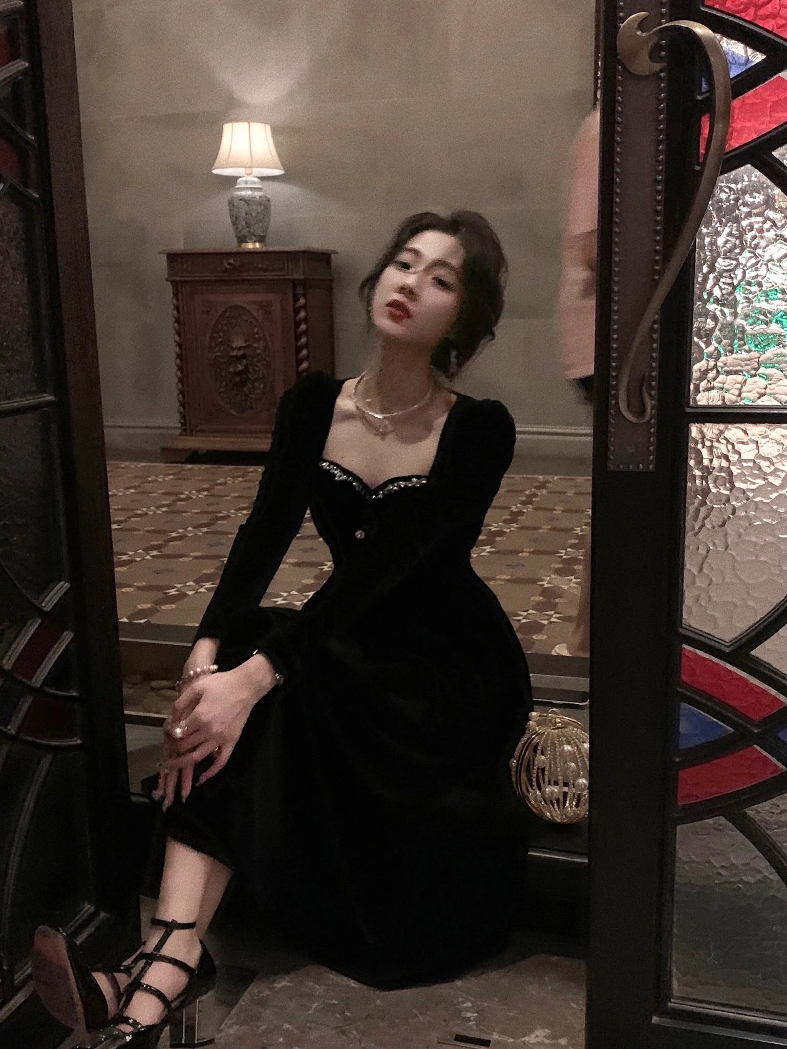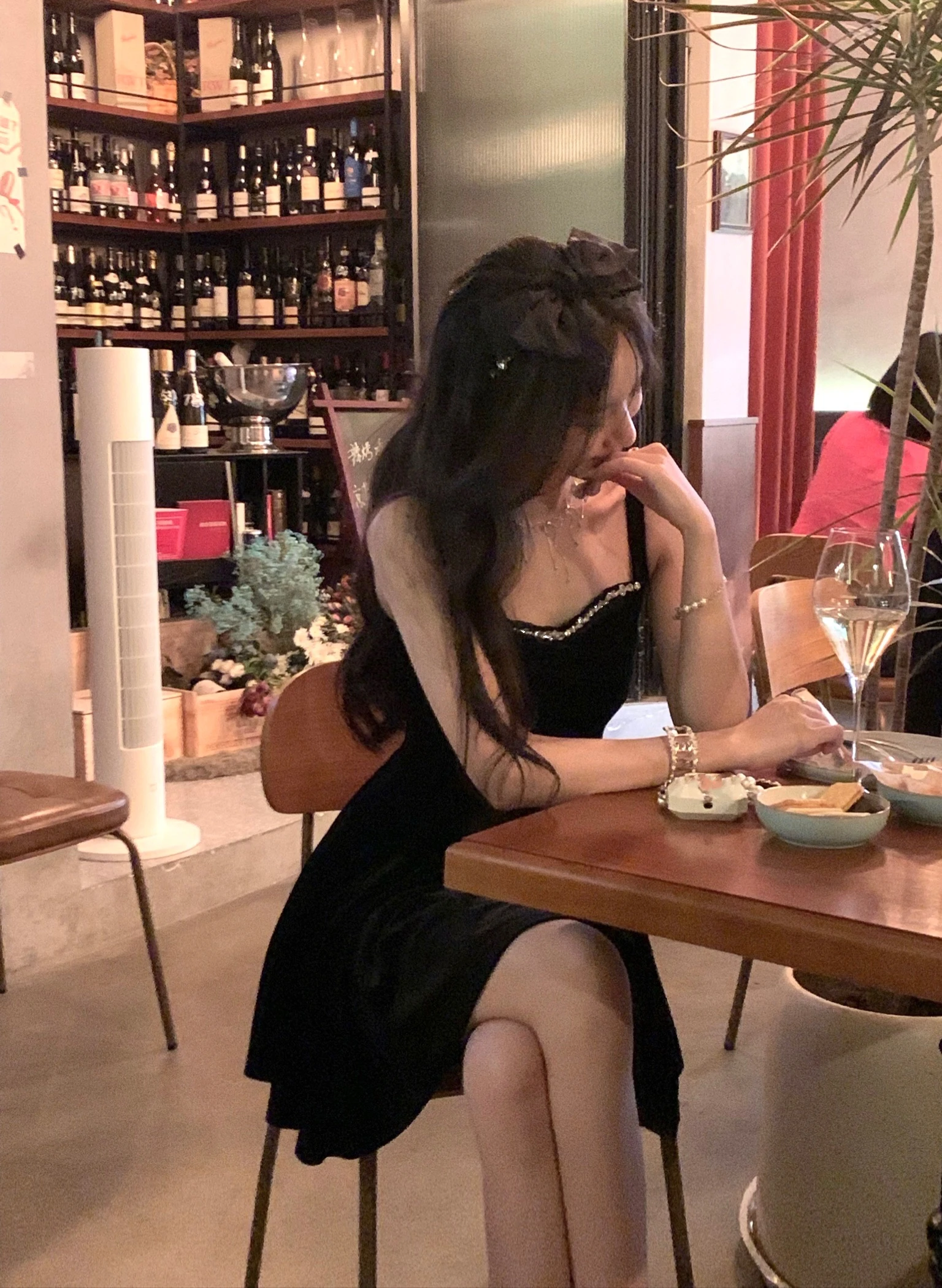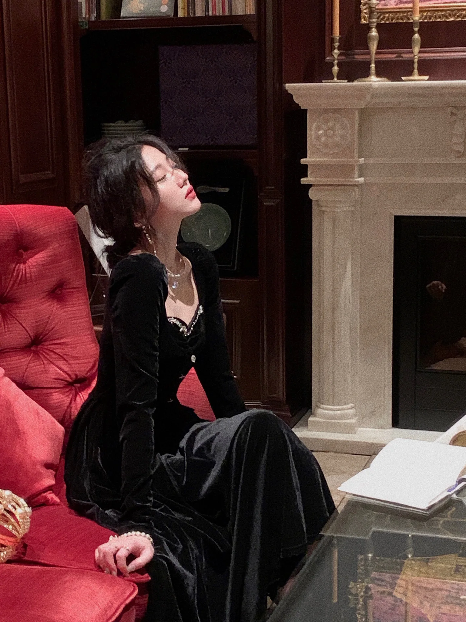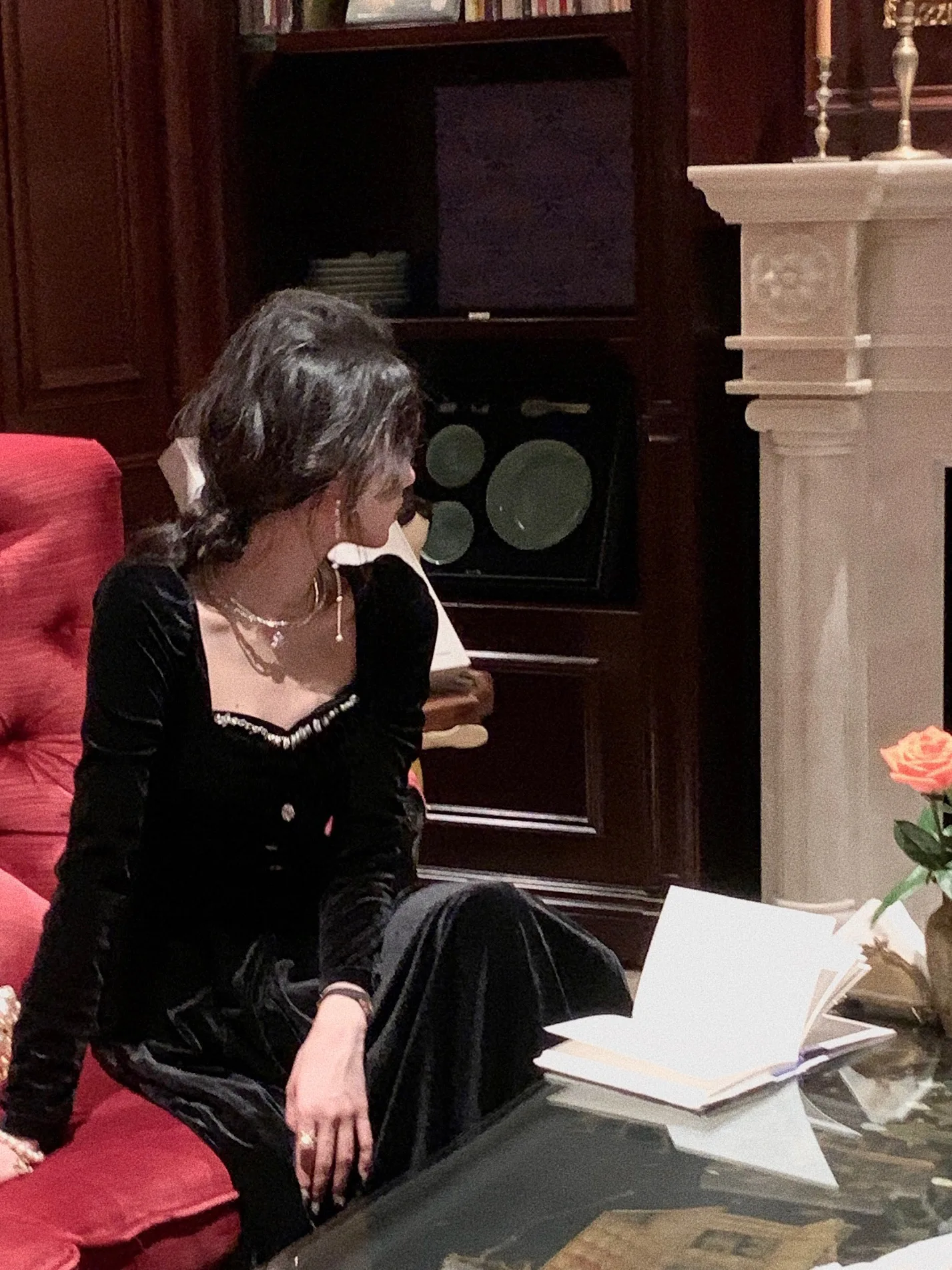 Summer New Elegant Spaghetti Strap Velvet Vintage Black Dress Women Sexy Prom Evening Party Fashion Clothing