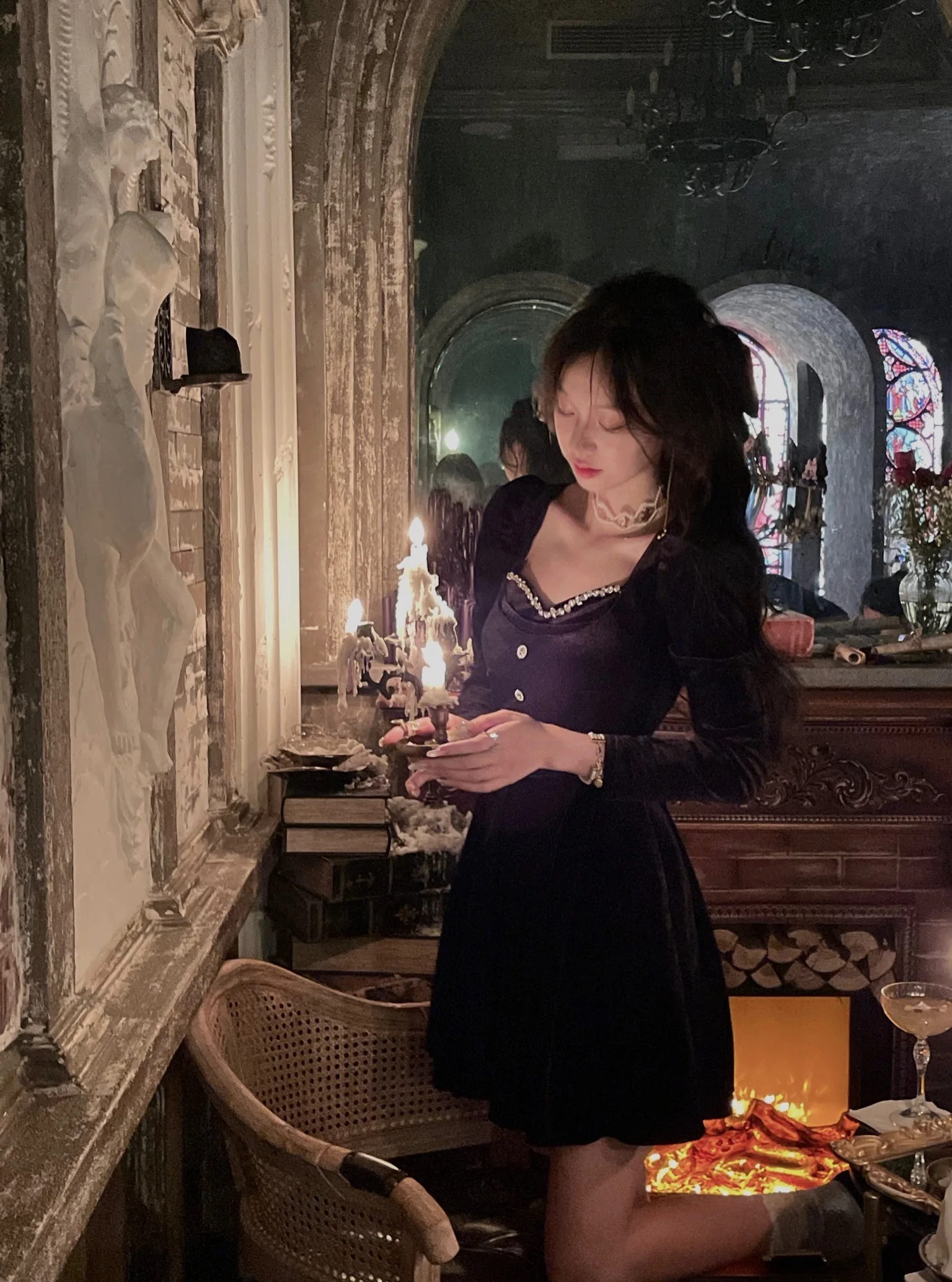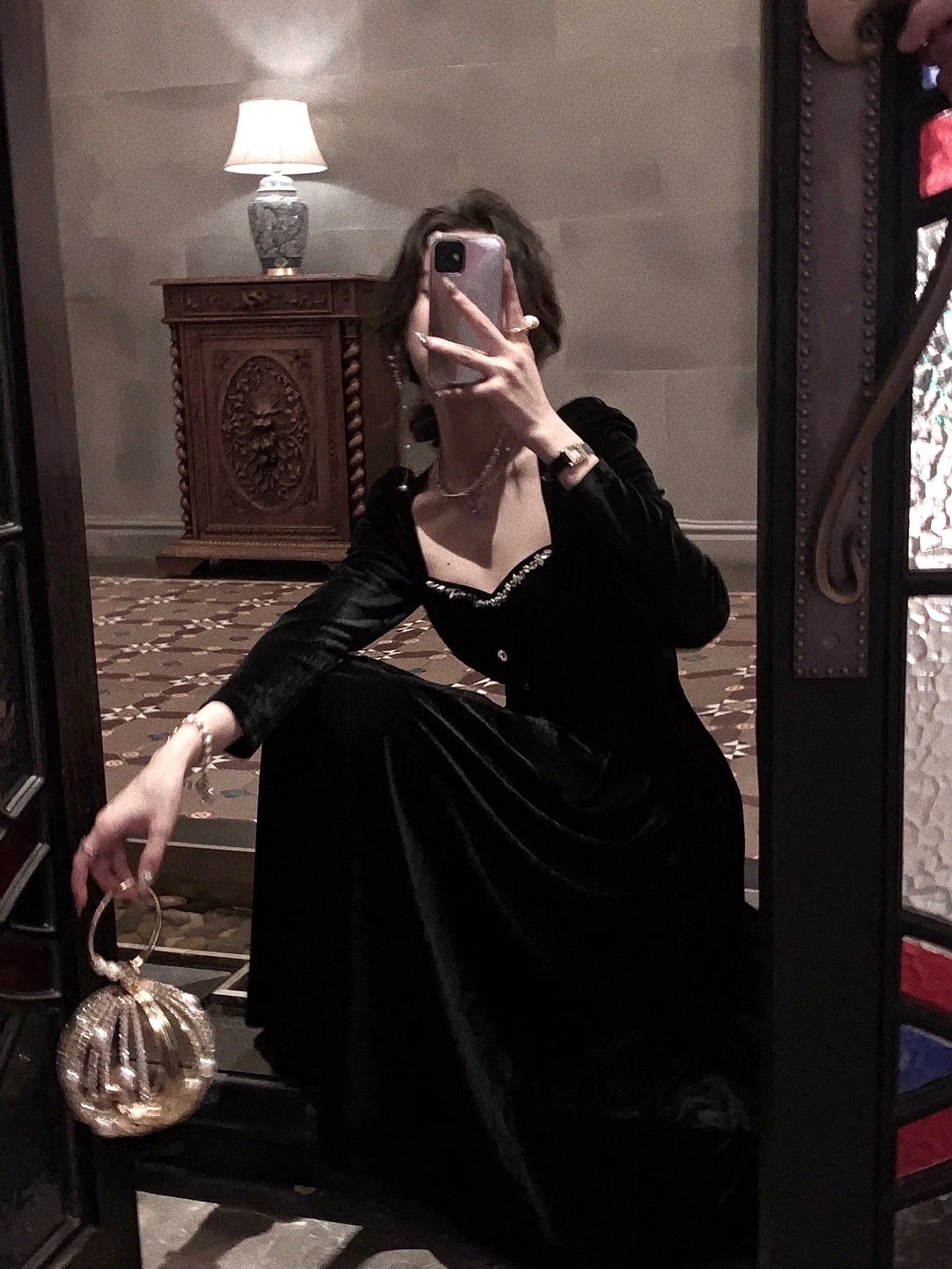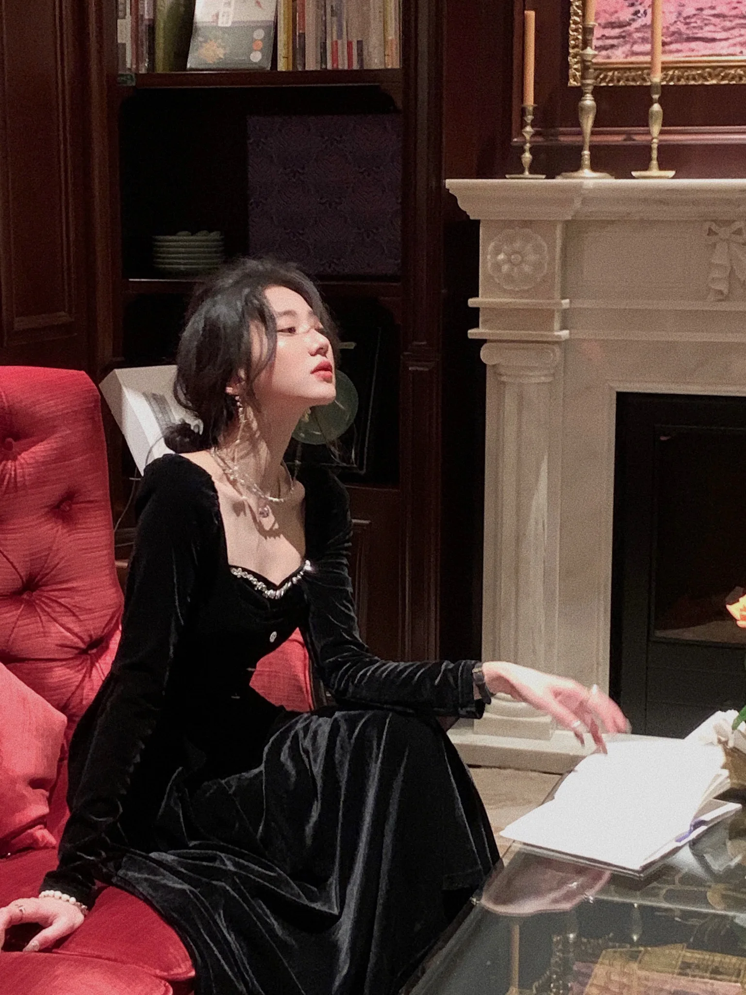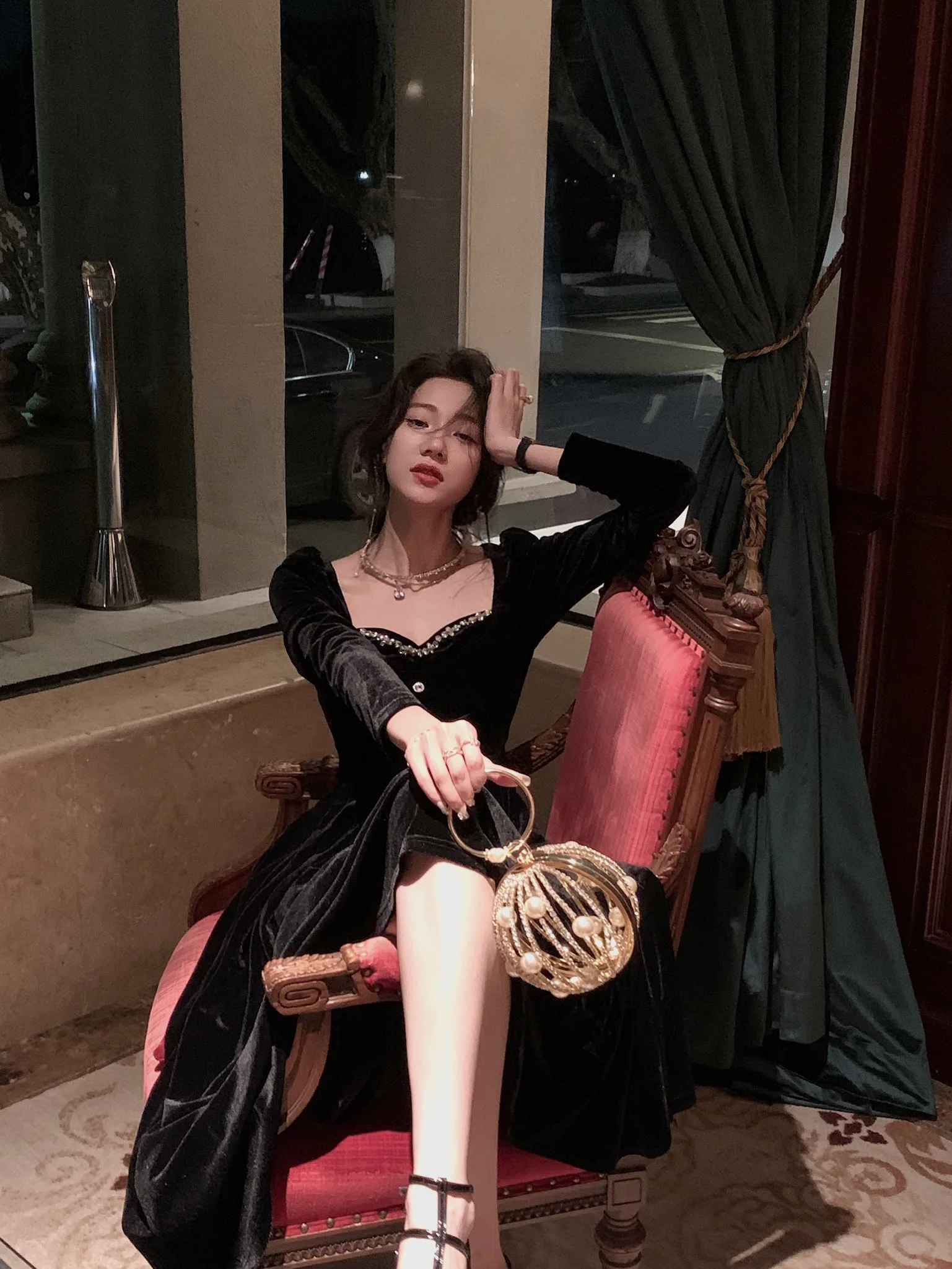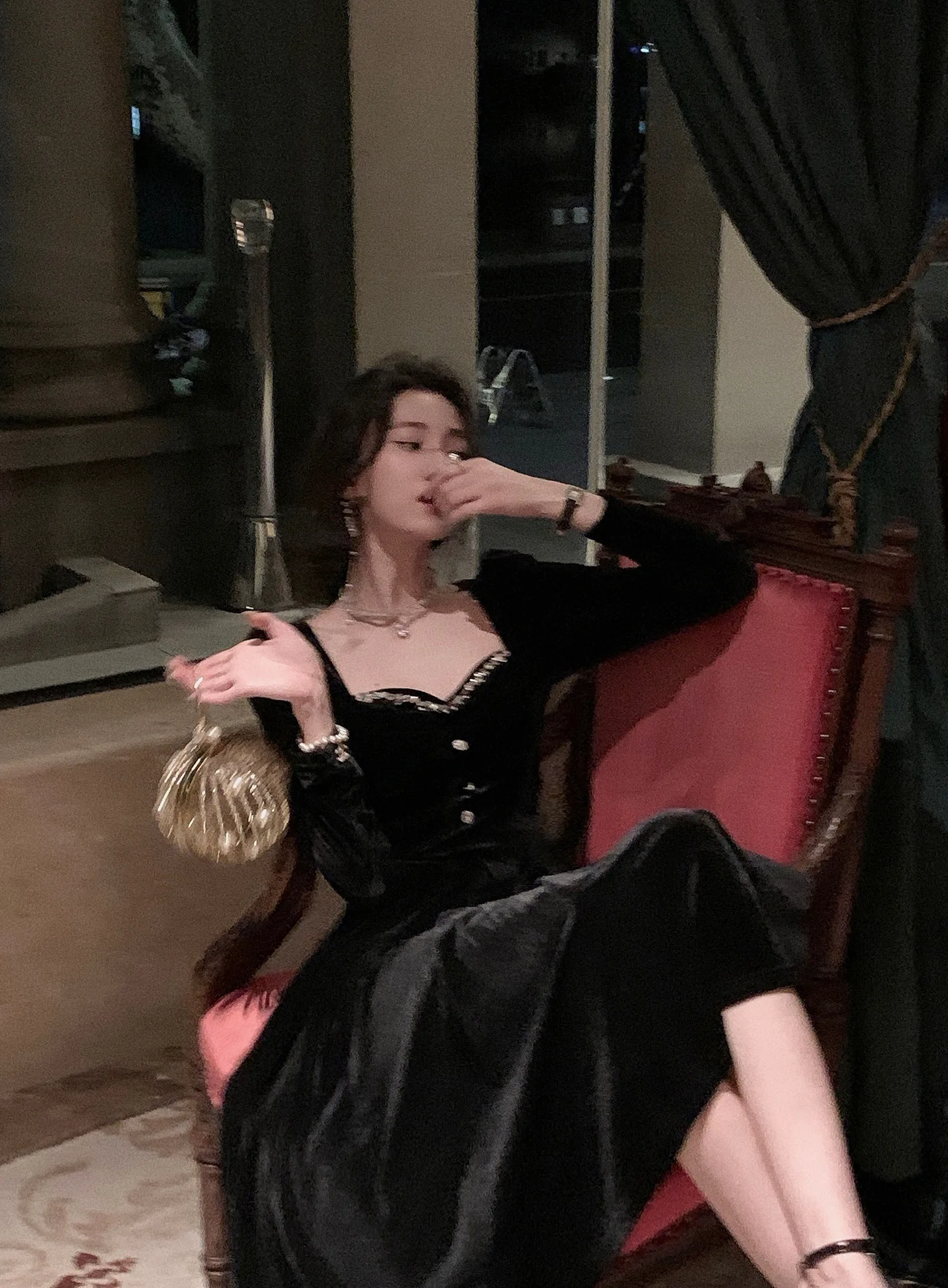 Summer New Elegant Spaghetti Strap Velvet Vintage Black Dress Women Sexy Prom Evening Party Fashion Clothing