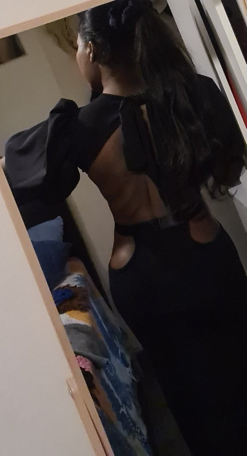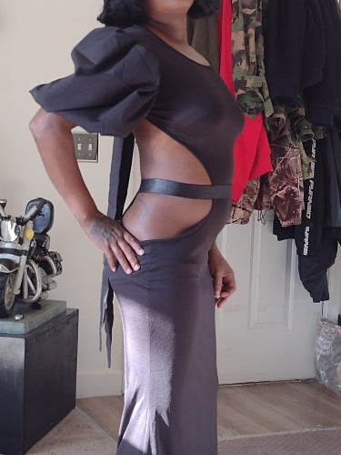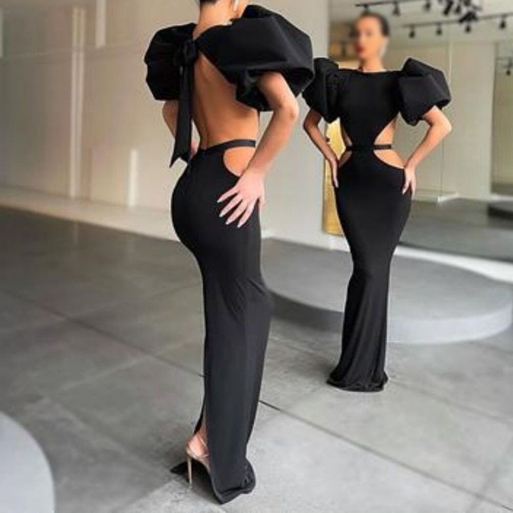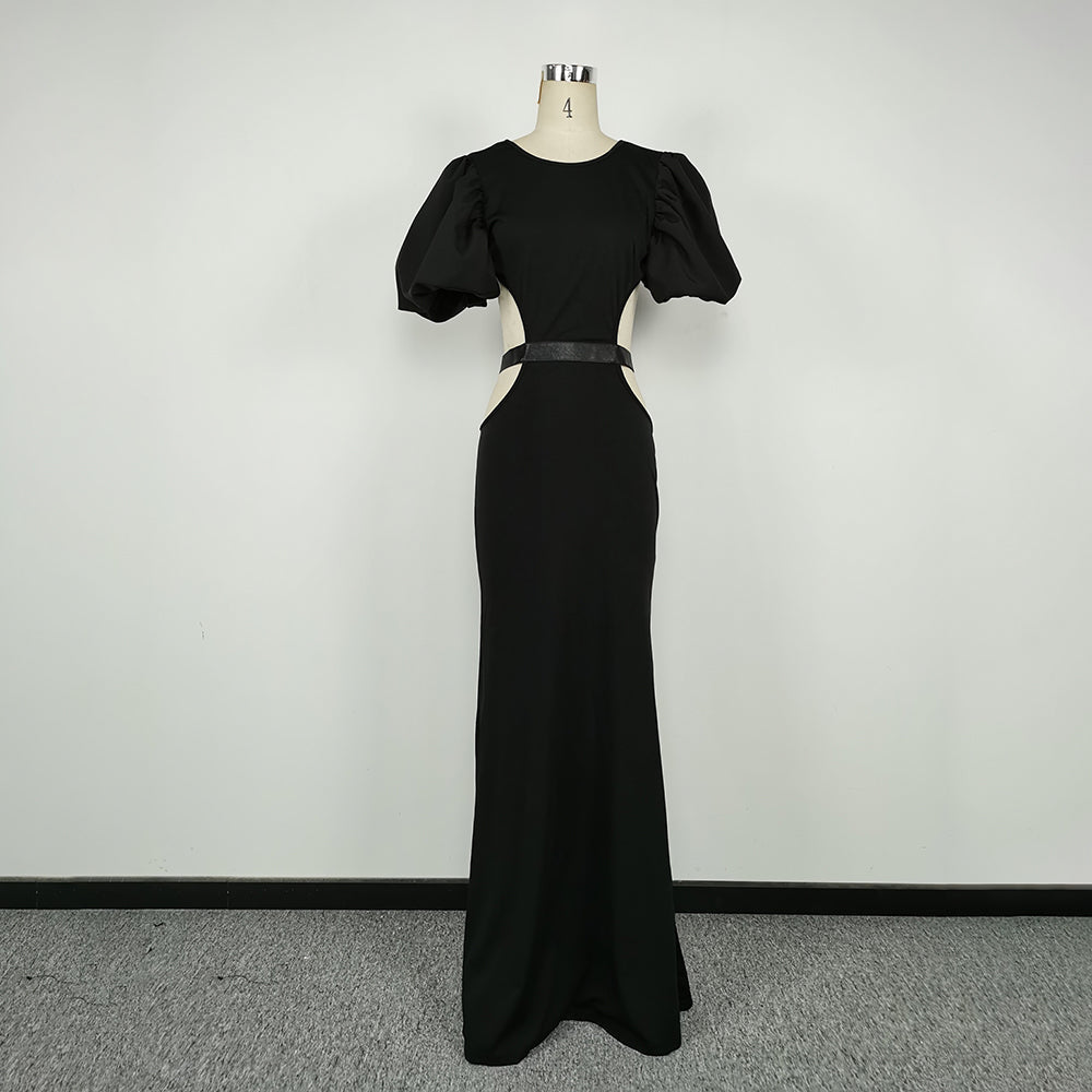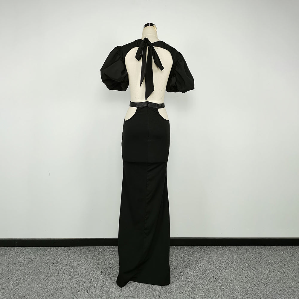Summer Women's Dress Fashion Cut Out Backless Evening Sexy Night Club Party Black Puff Sleeve Celebrity Long Formal Dress