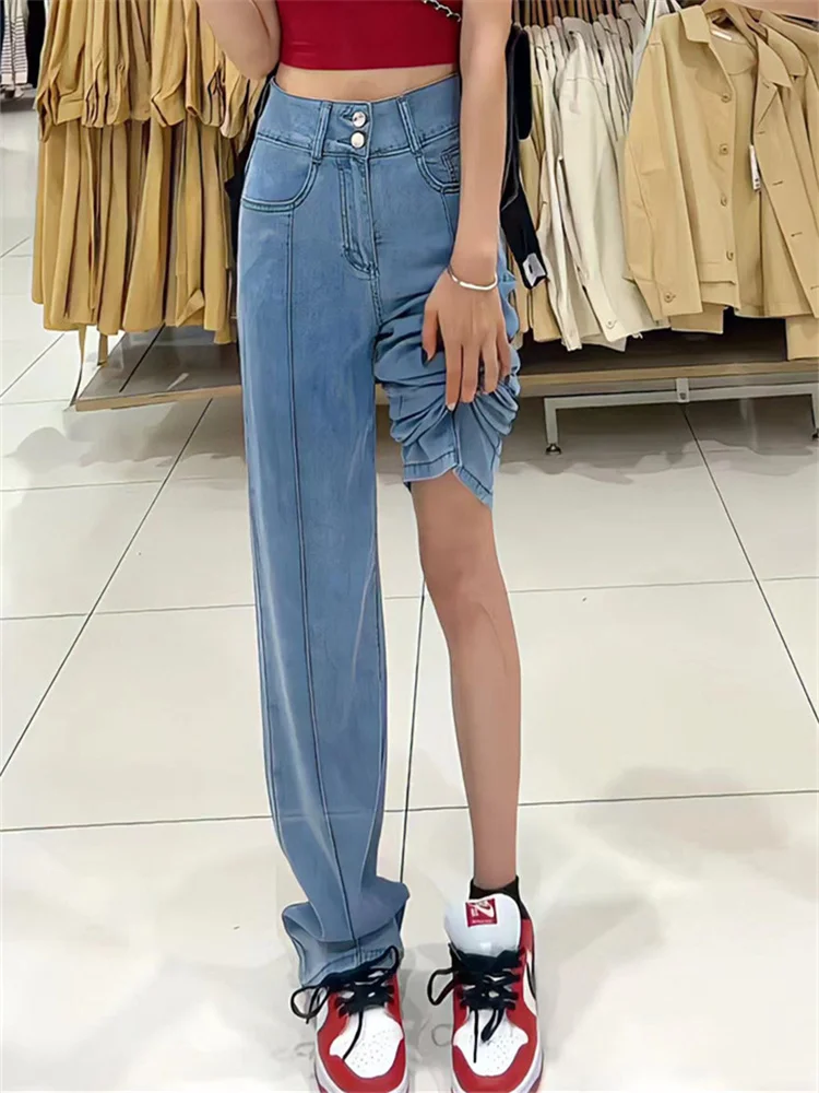 Vintage Jeans for Women 2023 New High Waisted Korean Fashion 2 Button Slim Straight Jeans Streetwear Chic Casual Jeans