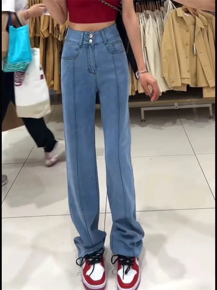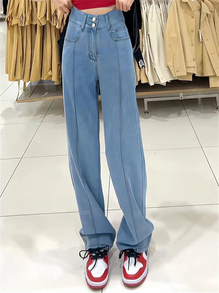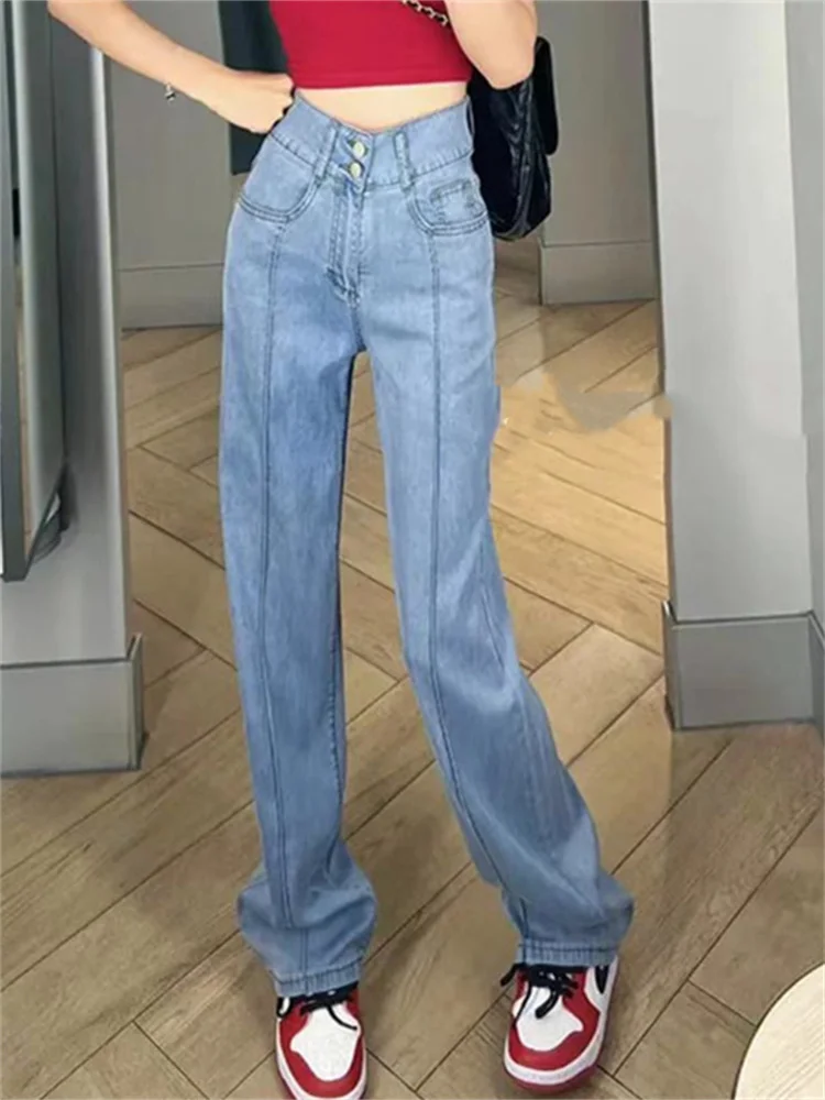 Vintage Jeans for Women New High Waisted Korean Fashion 2 Button Slim Straight Jeans Streetwear Chic Casual Jeans