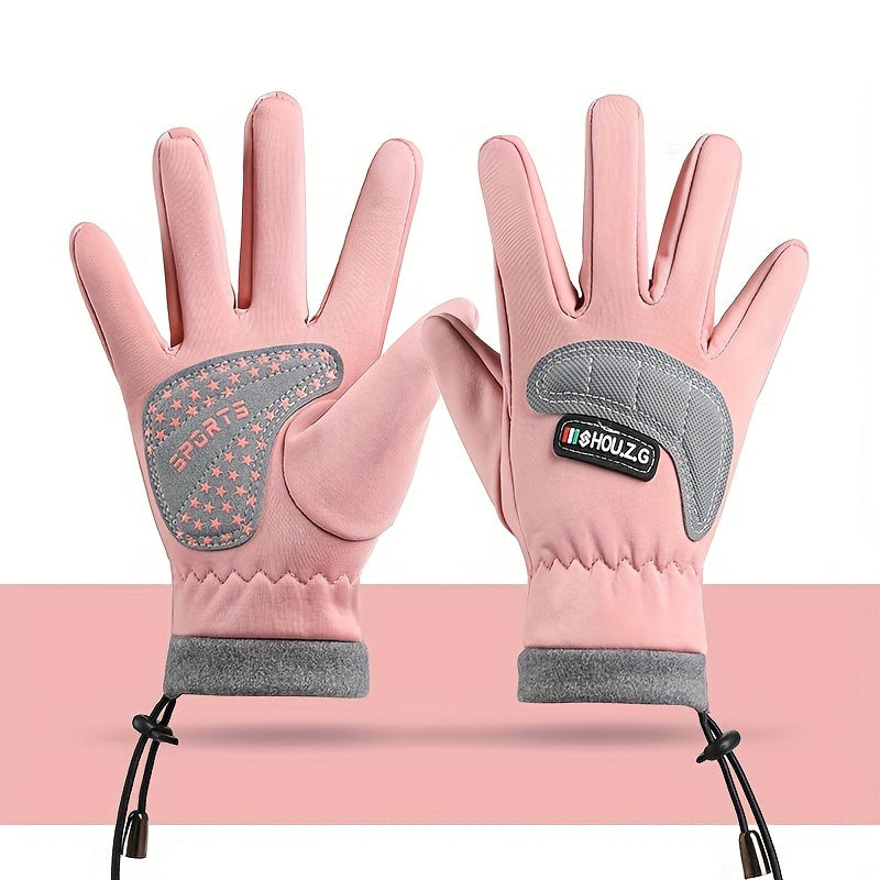 Water-Resistant Polyester Ski Gloves for Teens - Windproof, Warm, Non-Slip Grip | Woven Outdoor Sports Gloves for Ages 14+, Hand Washable