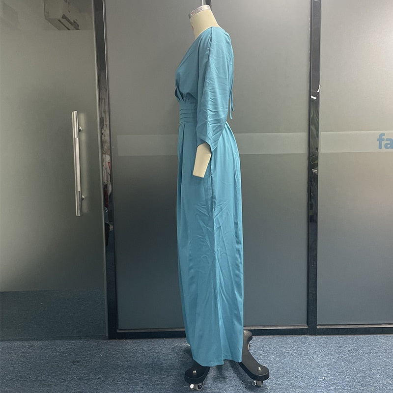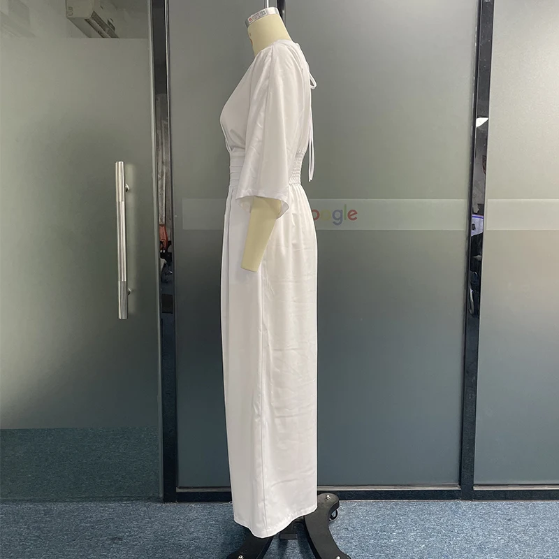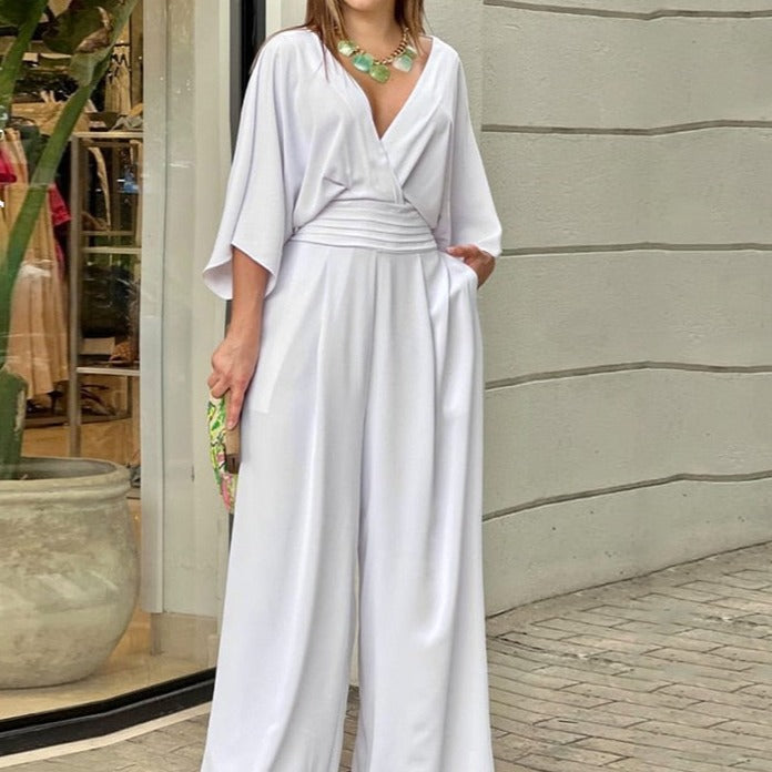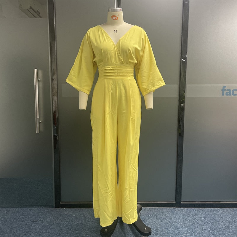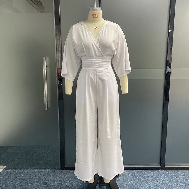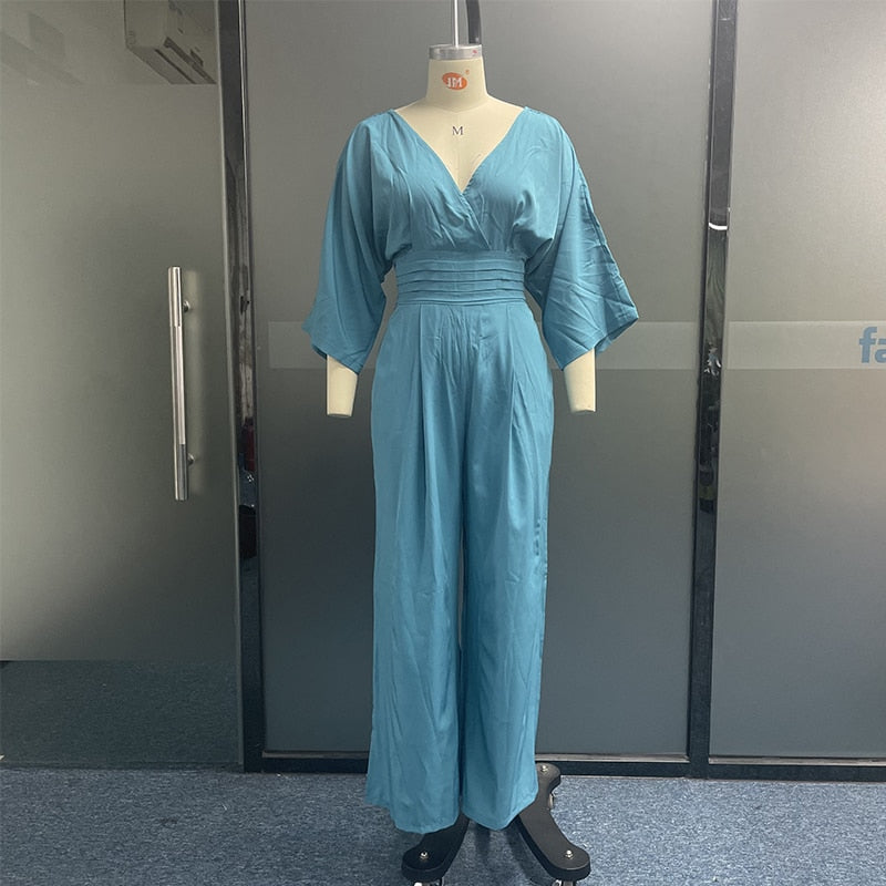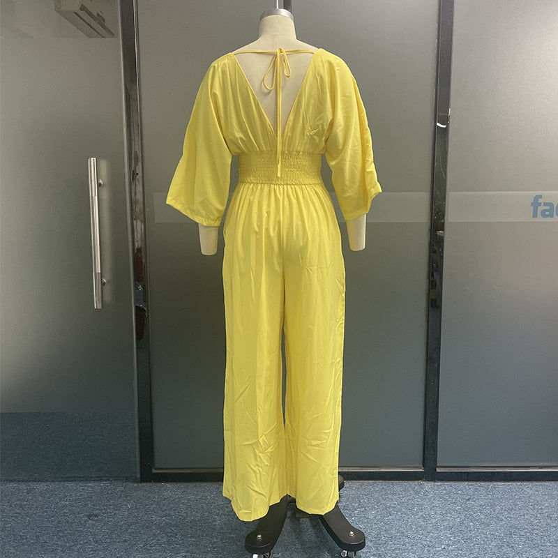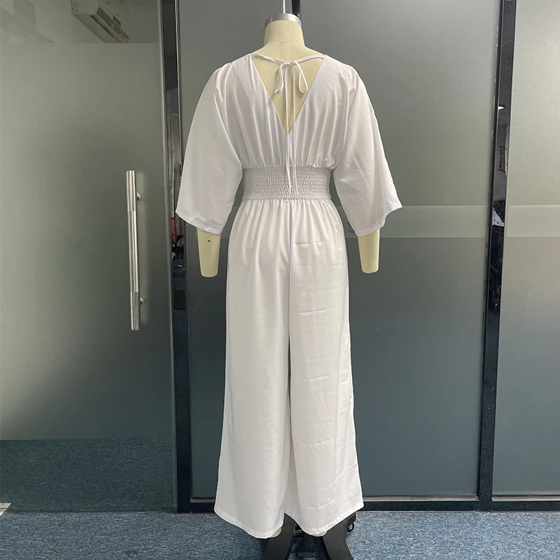 Women Jumpsuit Summer Short Bat Sleeve V Neck Backless Nipped Waist Loose Wide Legs Casual Pants Romper High Streetwear