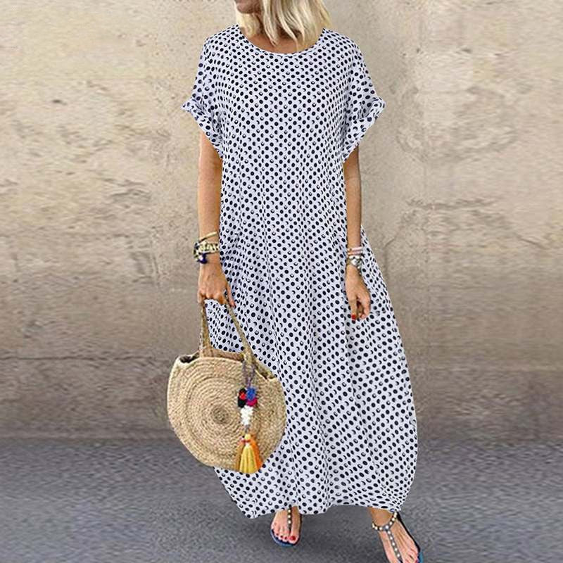 Sixsr Women Crew Neck Short Sleeve Long Dresses