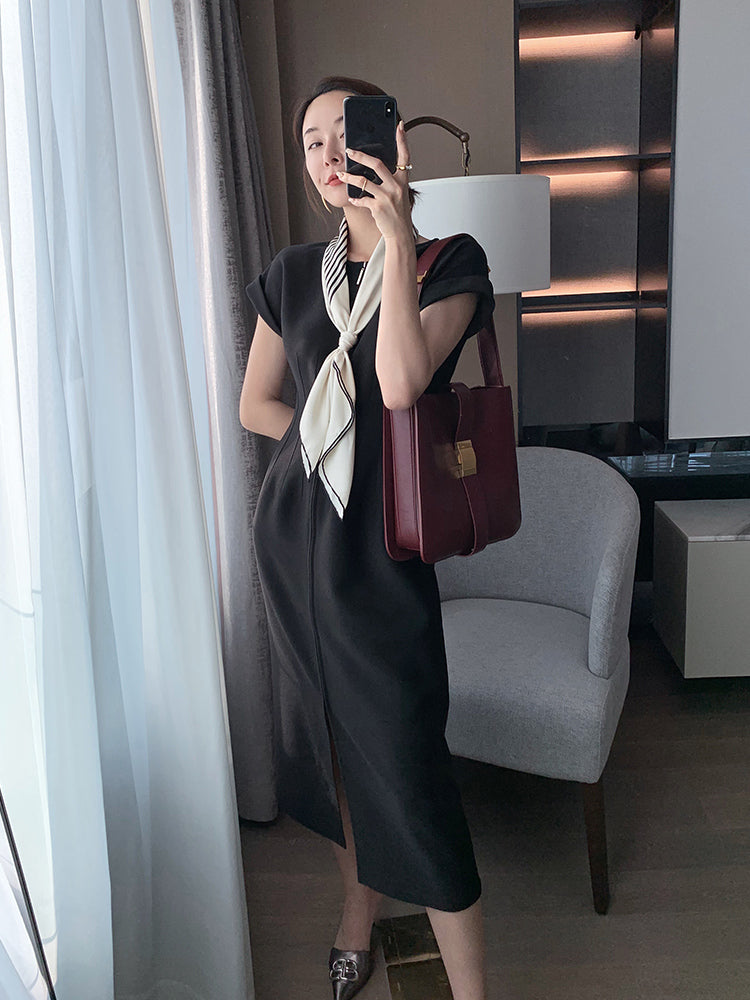 Sixsr Women Fashion White Short Sleeve Mid-calf Dress