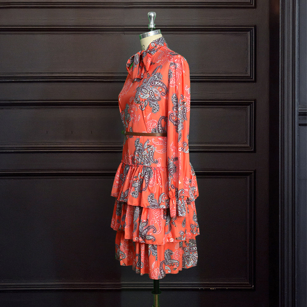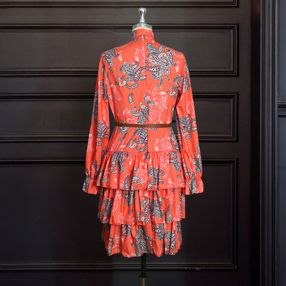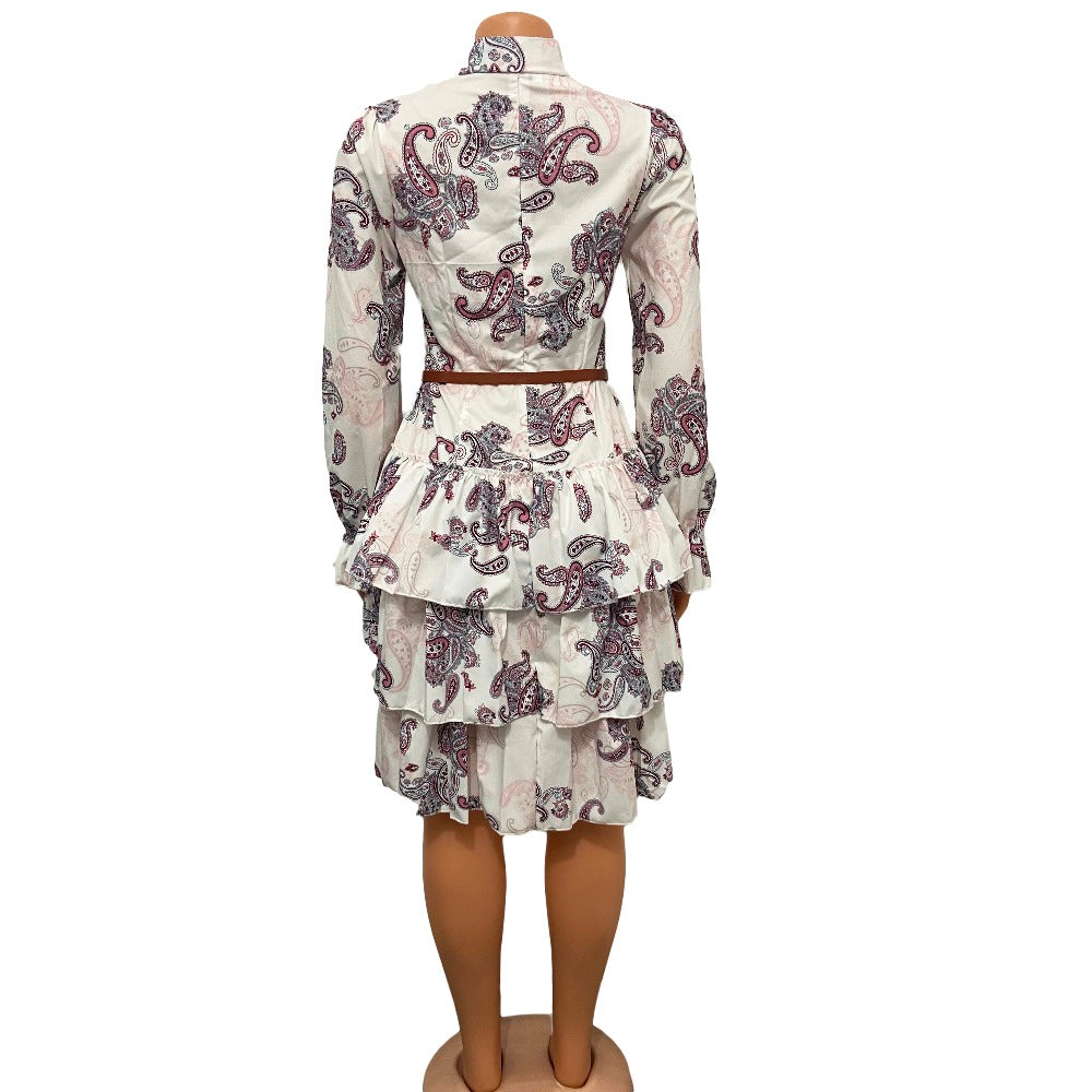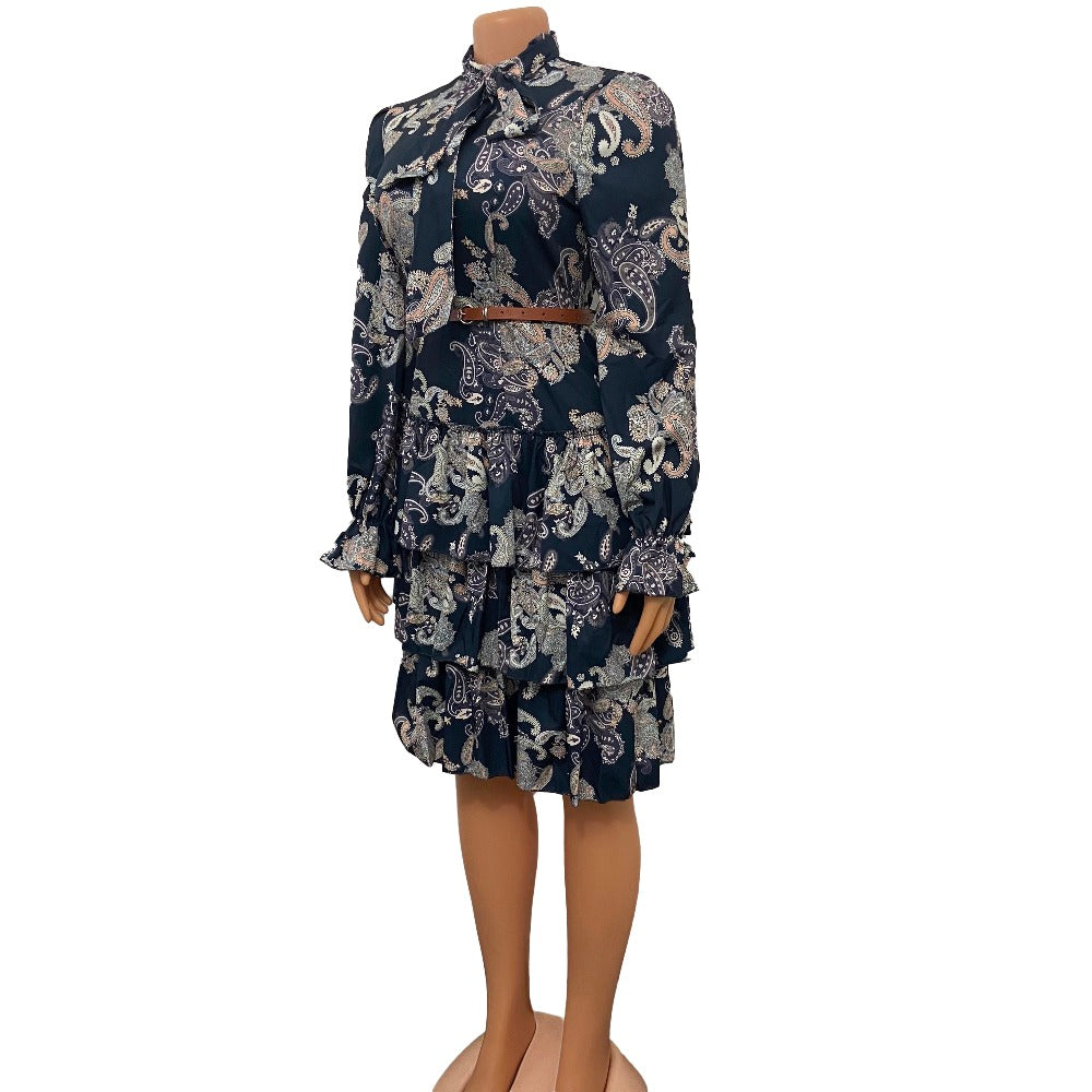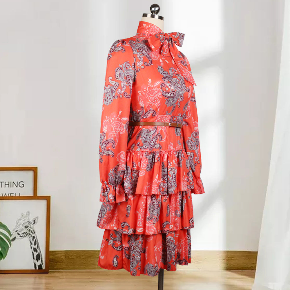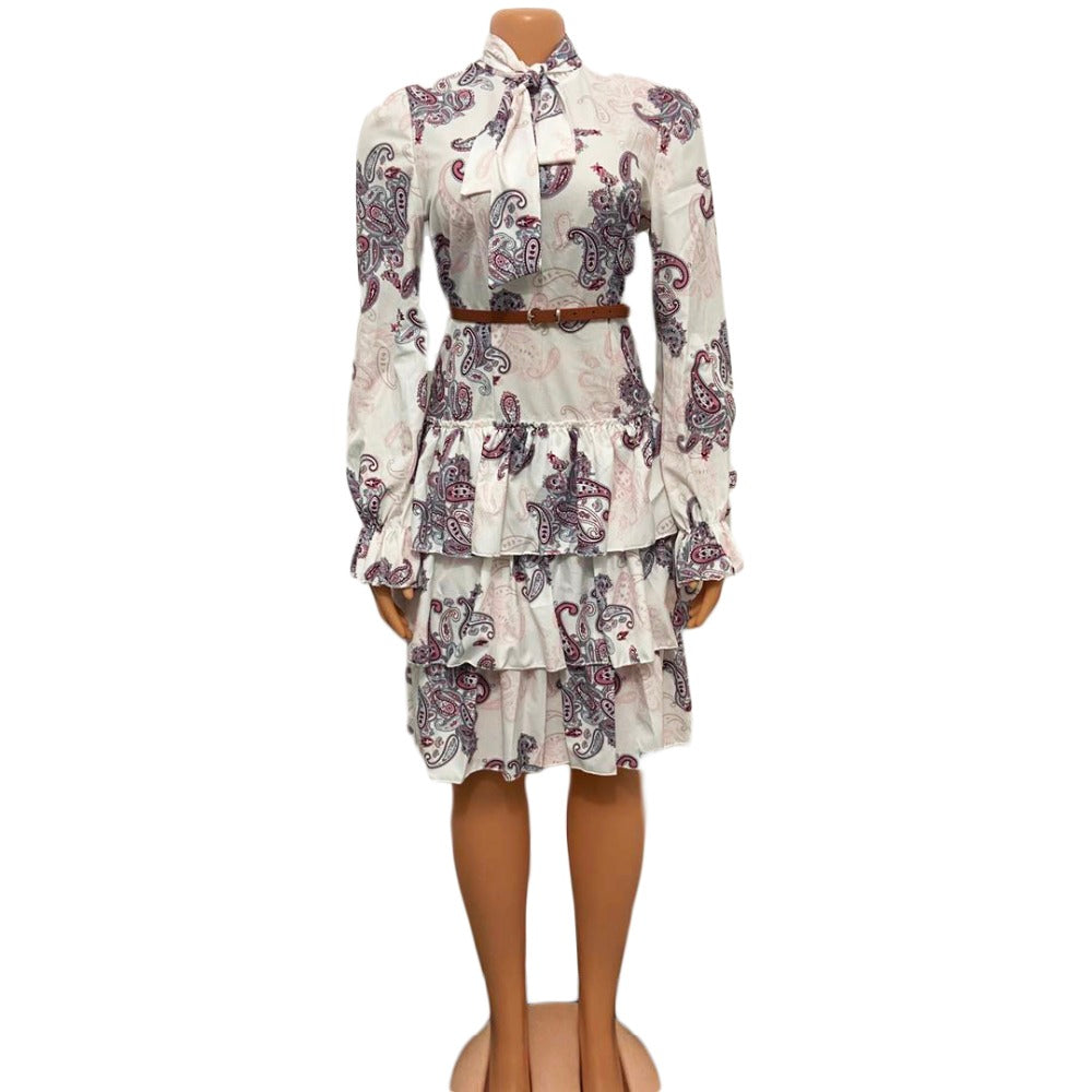 Sixsr Women Printed Dresses Long Sleeves Bowtie Cake Dress Female Ruffles Pleated Africn Fashion Lovely Date Sweet Vestidos Plus Size