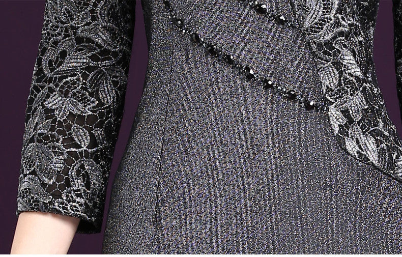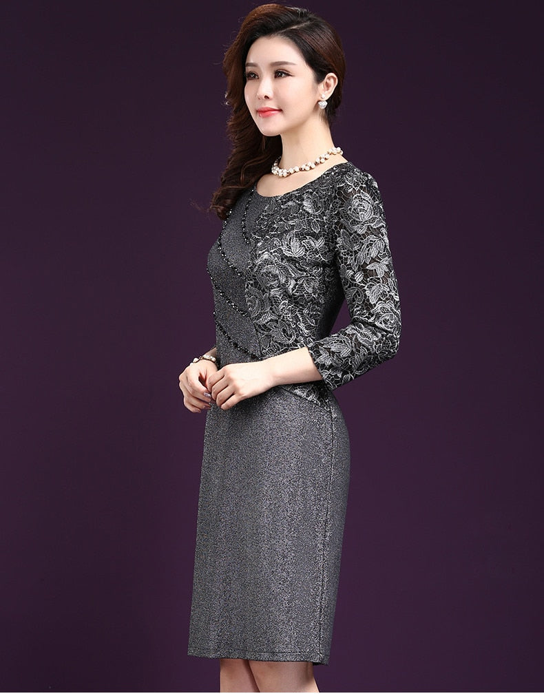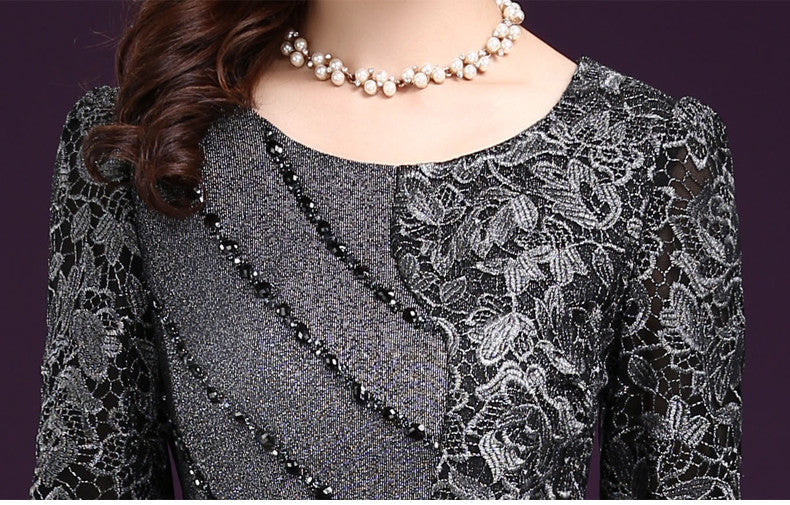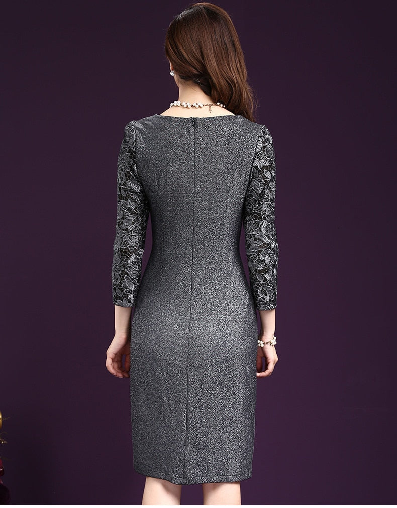 Sixsr Women Sexy Dress autumn Elegant Women Winter 3/4 Sleeve Knee Length Vintage Ol Work Wear Bodycon Lace Crochet Dresses 4XL