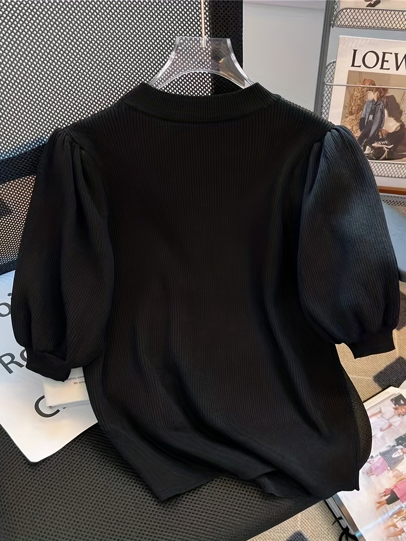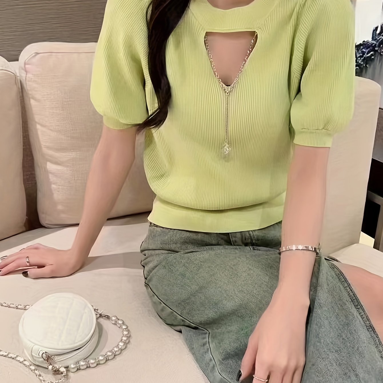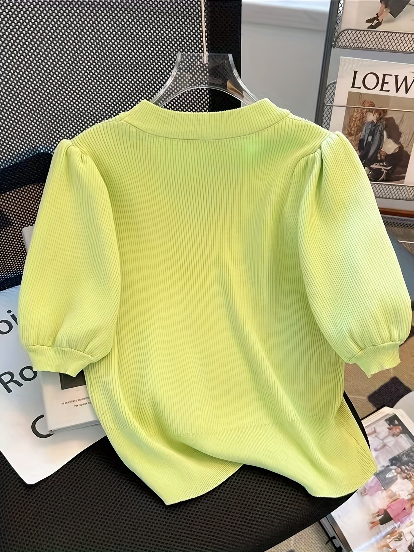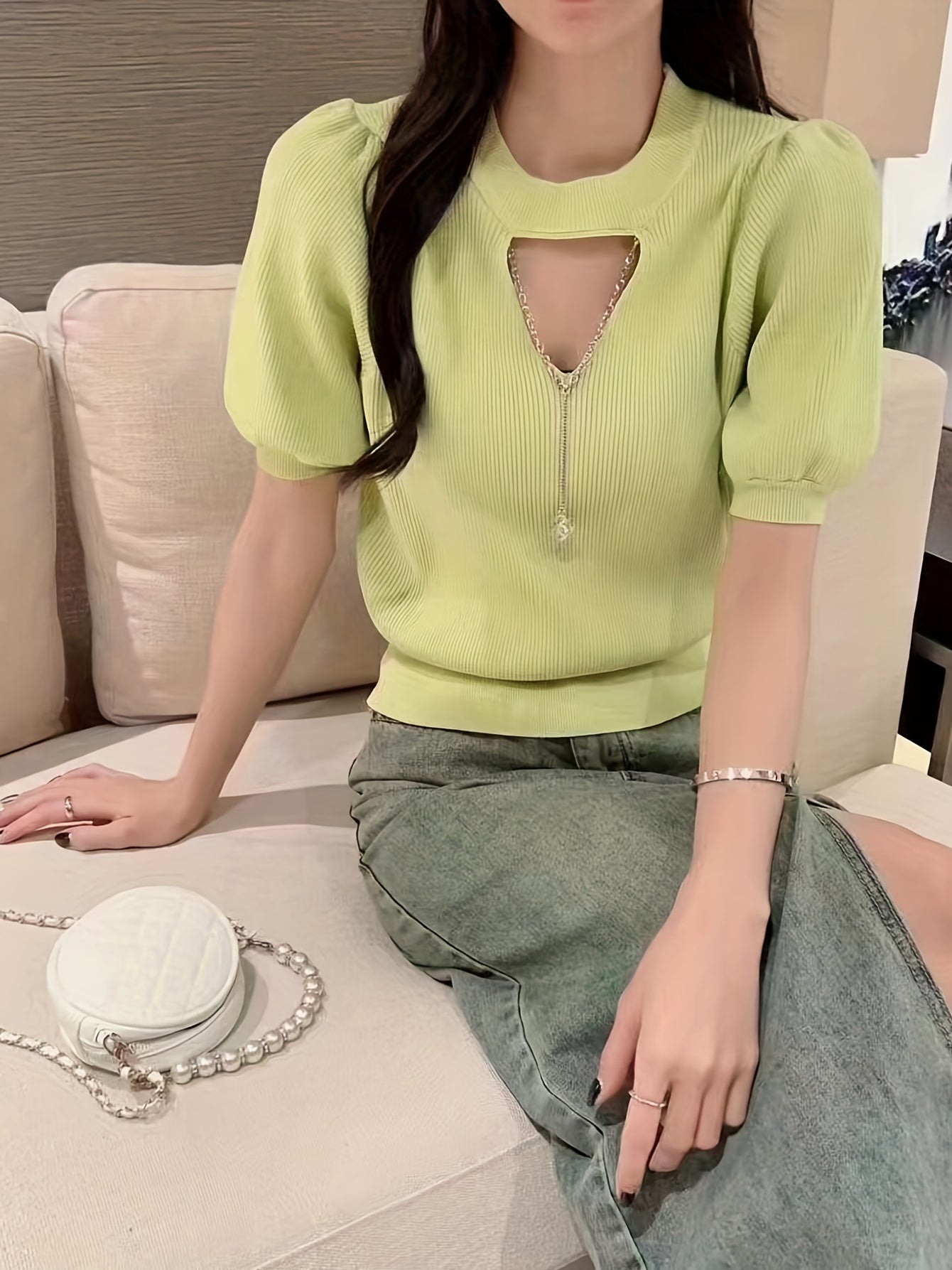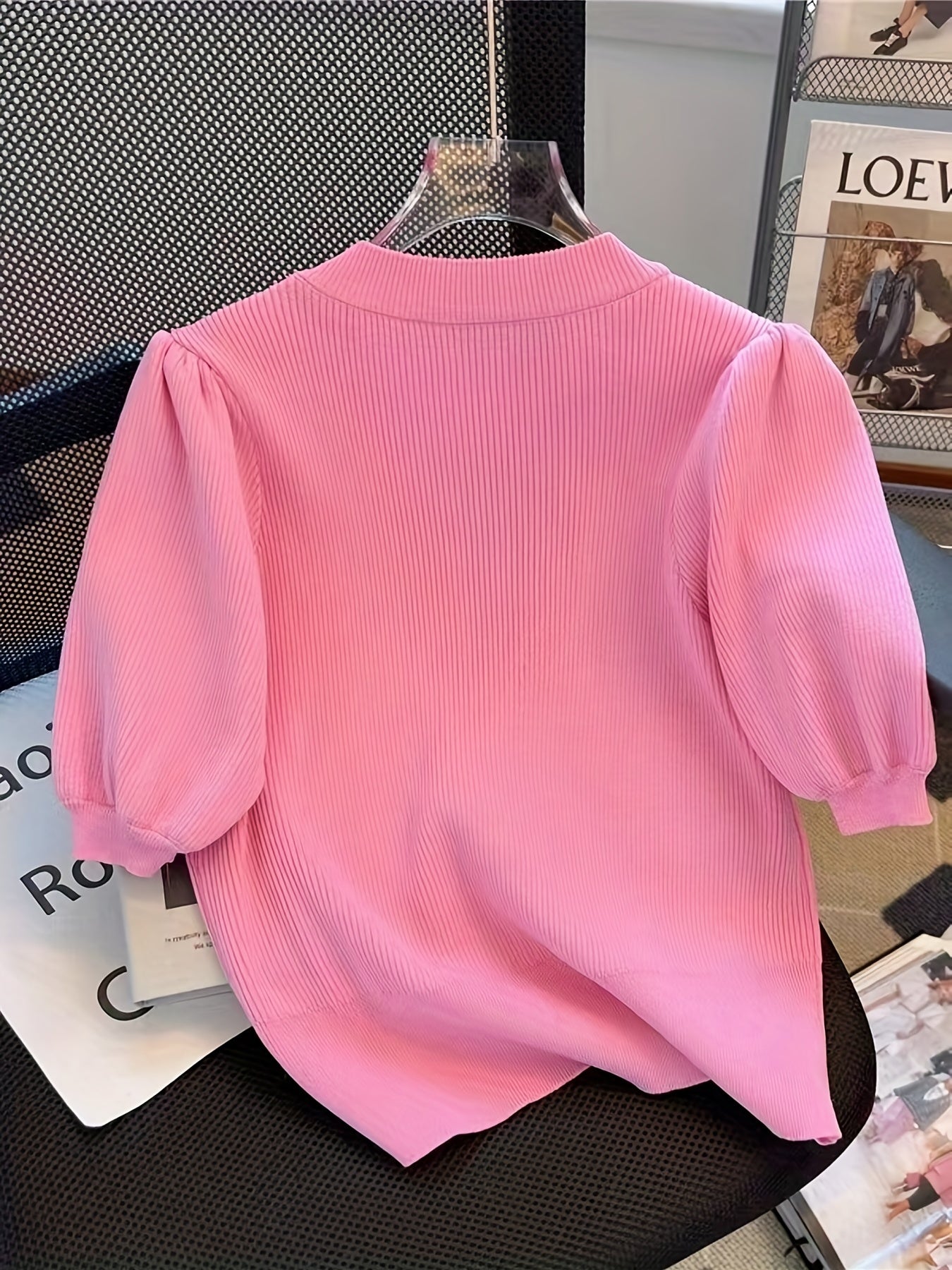 Women's Keyhole Puff Sleeve Knit Sweater - Casual and Stylish Crew Neck Sweater for Comfortable and Fashionable Look