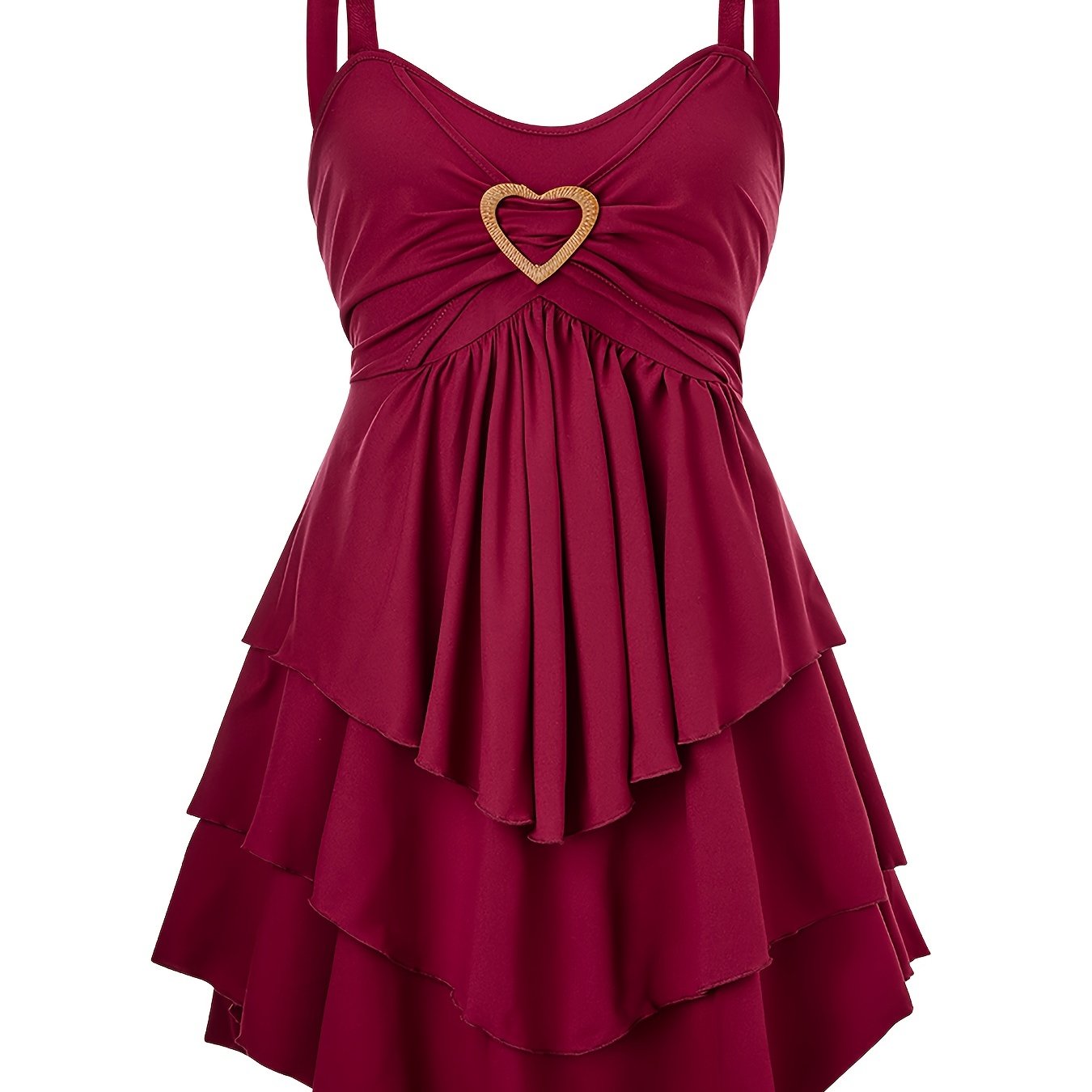 Women's Plus Size Elegant Dress with Sweetheart Neckline and Ruched Layered Hem - Perfect for Special Occasions