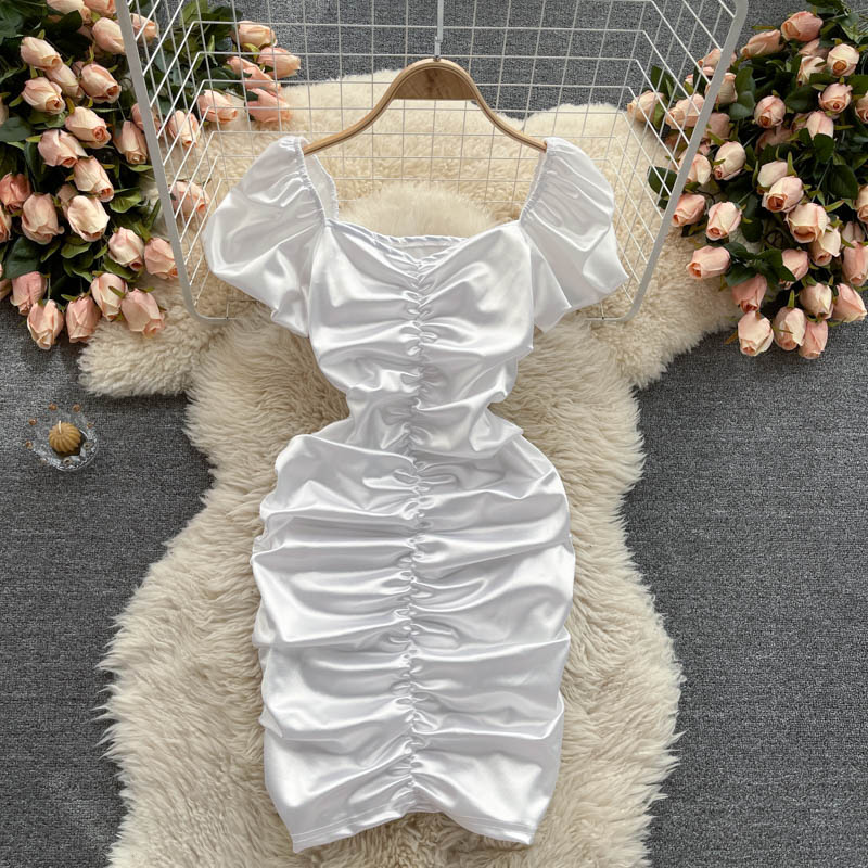 Sixsr Ins Fashion Sexy Mini Bandage Dress Women Summer Slim Ruched Club Dress Sheath Off Shoulder Pink White Dress